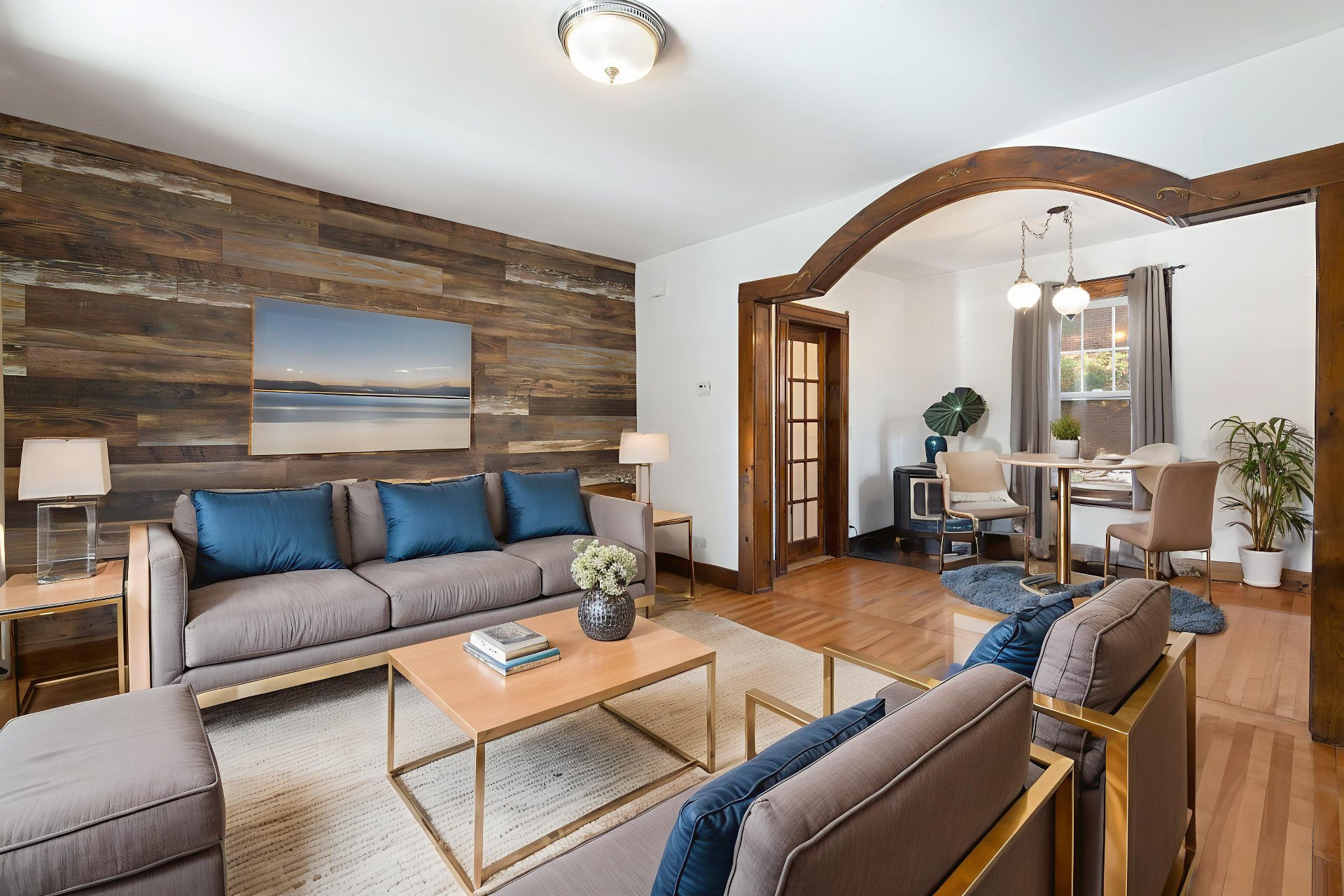 Évier double, îlo, porte patio