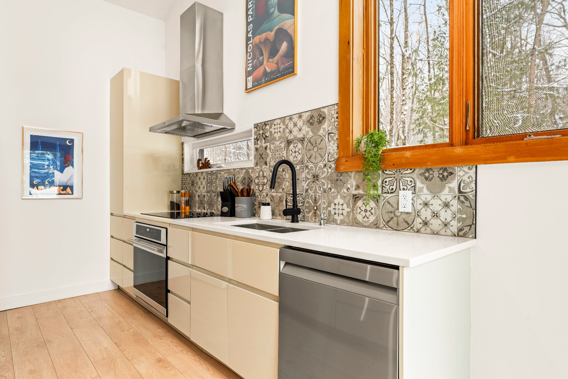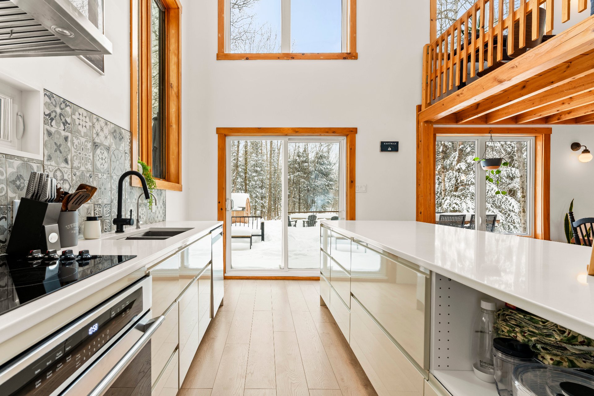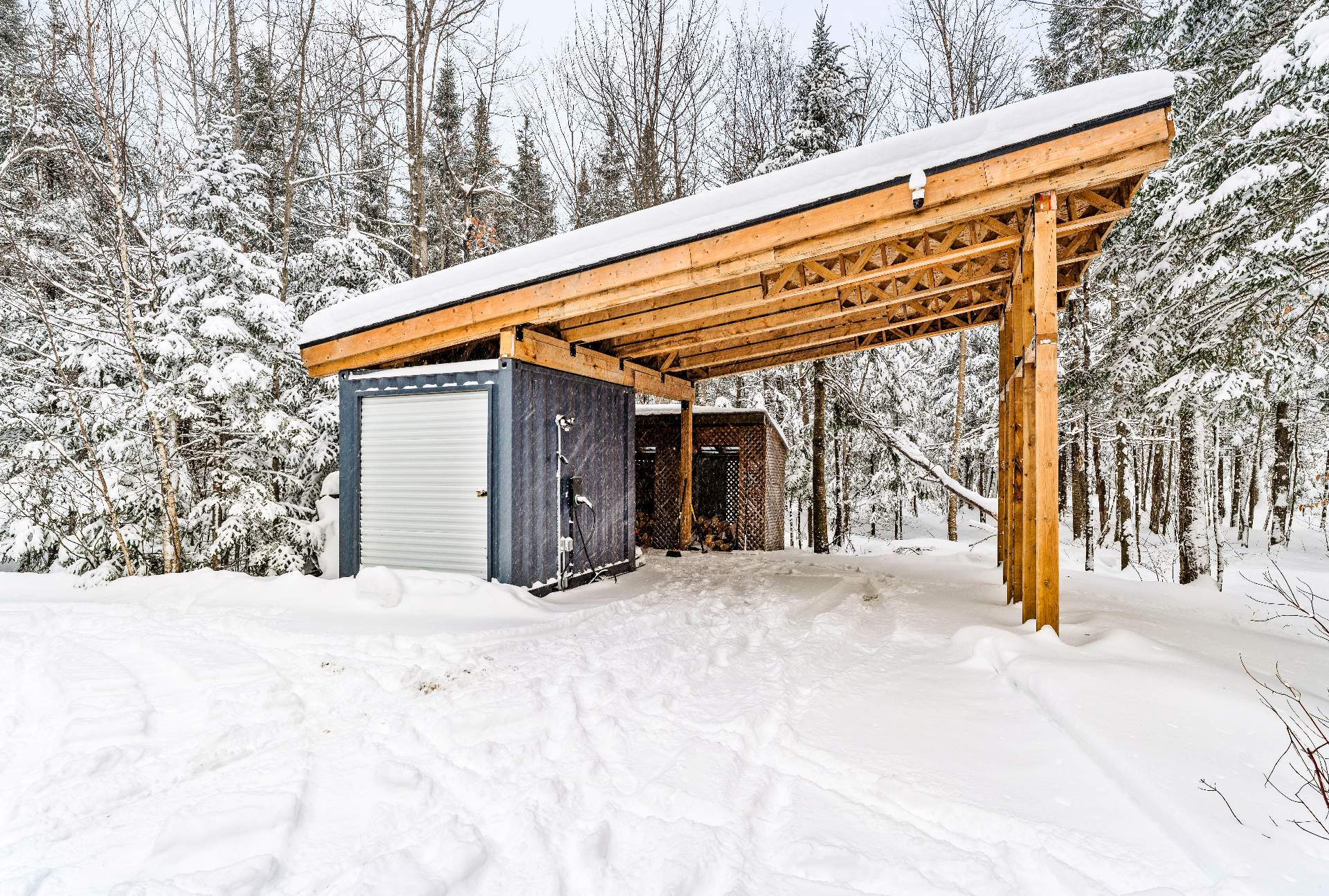 Laissez-vous séduire par ce superbe chalet dans les Cantons de l'Est, niché au coeur de la nature, sur un terrain boisé d'1 acre, offrant quiétude, intimité et bien-être à l'année. Situé à environ 1h15 du Pont Champlain, il représente une proximité idéale pour les gens de la région de Montréal. Dès l'entrée, la fenestration abondante inonde l'espace de lumière naturelle et crée une parfaite harmonie entre l'intérieur et l'extérieur. L'aire de vie ouverte et conviviale met en valeur un foyer au bois, idéal pour les soirées cocooning. La présence généreuse de bois confère à la propriété une ambiance chaleureuse, authentique et apaisante, en parfaite harmonie avec la nature environnante. Le décor, à la fois épuré et chaleureux, s'agence magnifiquement avec le revêtement extérieur, parfaitement intégré au paysage naturel. La cuisine, intemporelle et fonctionnelle, répondra aux besoins des amateurs de design et de praticité. La propriété comprend deux chambres à coucher, dont une avec un immense walk-in, ainsi qu'une mezzanine polyvalente pouvant servir de chambre, de salon ou de bureau. La salle de bain impeccable et le sauna ajoutent une touche de détente et de confort inégalée. À l'extérieur, profitez d'un chemin privé, d'un environnement paisible et d'une tranquillité absolue. La propriété se distingue par un grand abri d'auto polyvalent, comprenant une borne pour voiture électrique, un espace pour le rangement du bois, ainsi qu'un espace de rangement original de type conteneur, offrant de multiples possibilités. Un grand balcon vous permet un accès direct à la nature, avec un espace feu convivial et un emplacement pour cultiver vos fruits et légumes. Le toit en tôle assure durabilité et tranquillité d'esprit. Le chalet offre un excellent potentiel pour la location à court terme. En faisant l'acquisition de cette propriété, vous bénéficierez d'une mention Superhost sur Airbnb, avec une excellente visibilité déjà établie. Situé à proximité du village de Eastman, le chalet offre un accès facile aux commodités : épicerie, cafés, restaurants, et toutes les commodités quotidiennes. Pour les amateurs de plein air, la piste cyclable de la Route Verte se situe à seulement 500 mètres, et la région environnante possède plusieurs lacs accessibles pour les activités nautiques. De plus, plusieurs montagnes de ski alpin se trouvent à proximité, dont le Mont Orford, Bromont, Sutton, Owls Head et Jay Peak, offrant un éventail d'activités hivernales. Le tout est également à proximité du parc national du Mont-Orford, pour des activités de plein air variées à l'année. Ce chalet est un véritable havre de paix où la santé et le bien-être sont enveloppés par la nature, tout en restant proche des attraits du village et de la région. Que ce soit pour une résidence principale, secondaire ou même pour la location à court terme, ce chaleureux chalet a tout pour plaire. La présente vente est faite sans garantie légale au risque et périls de l'acheteur.