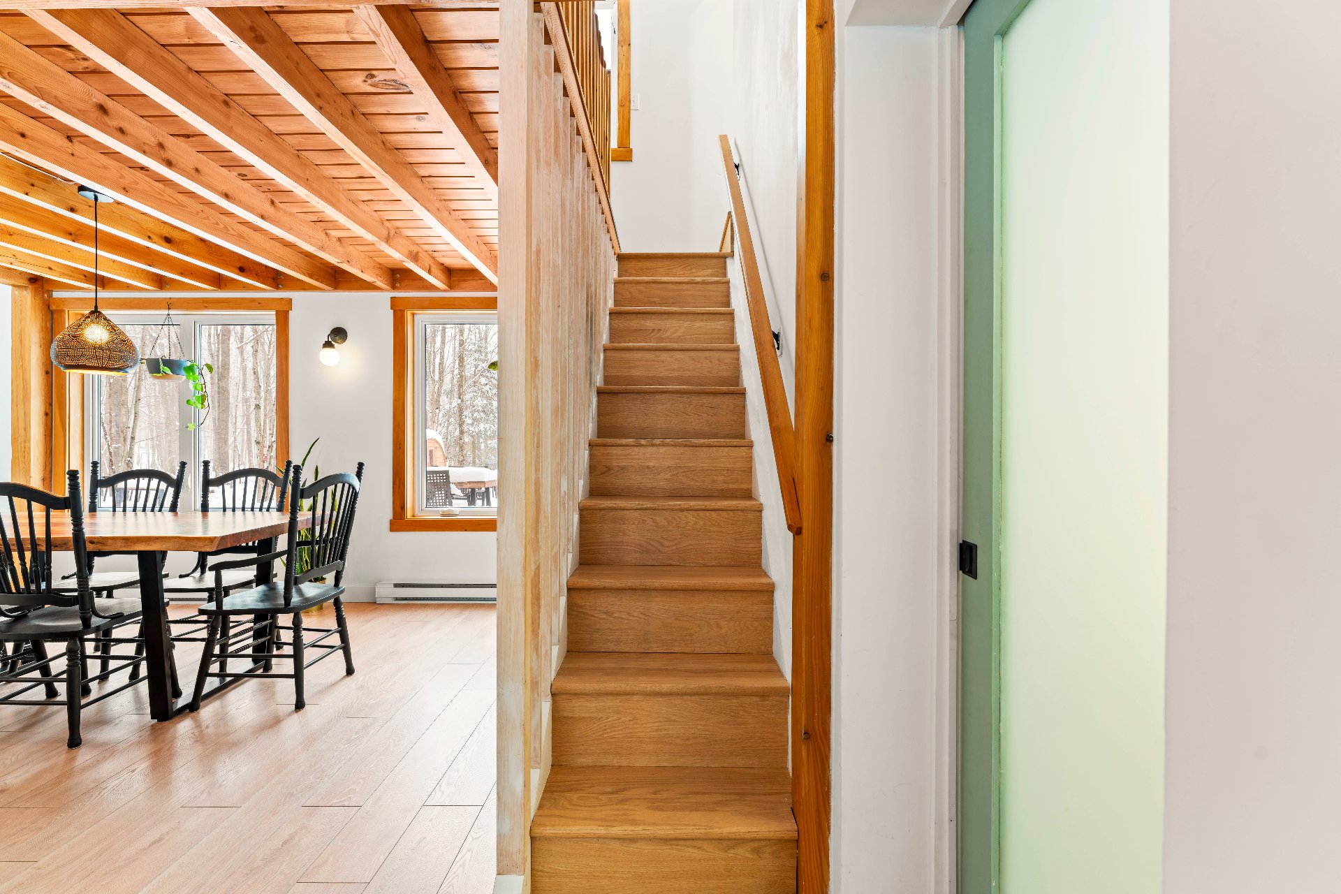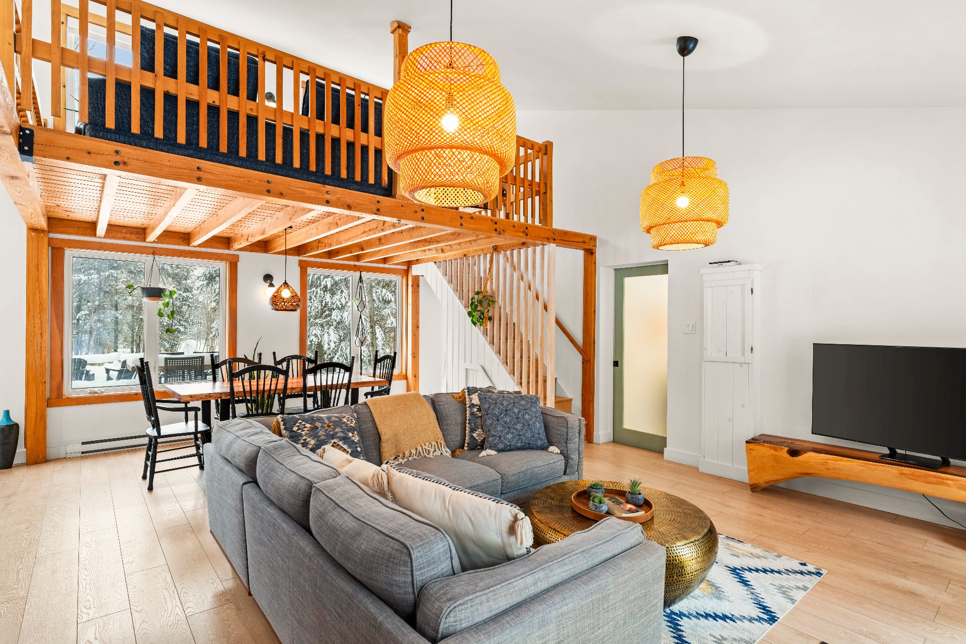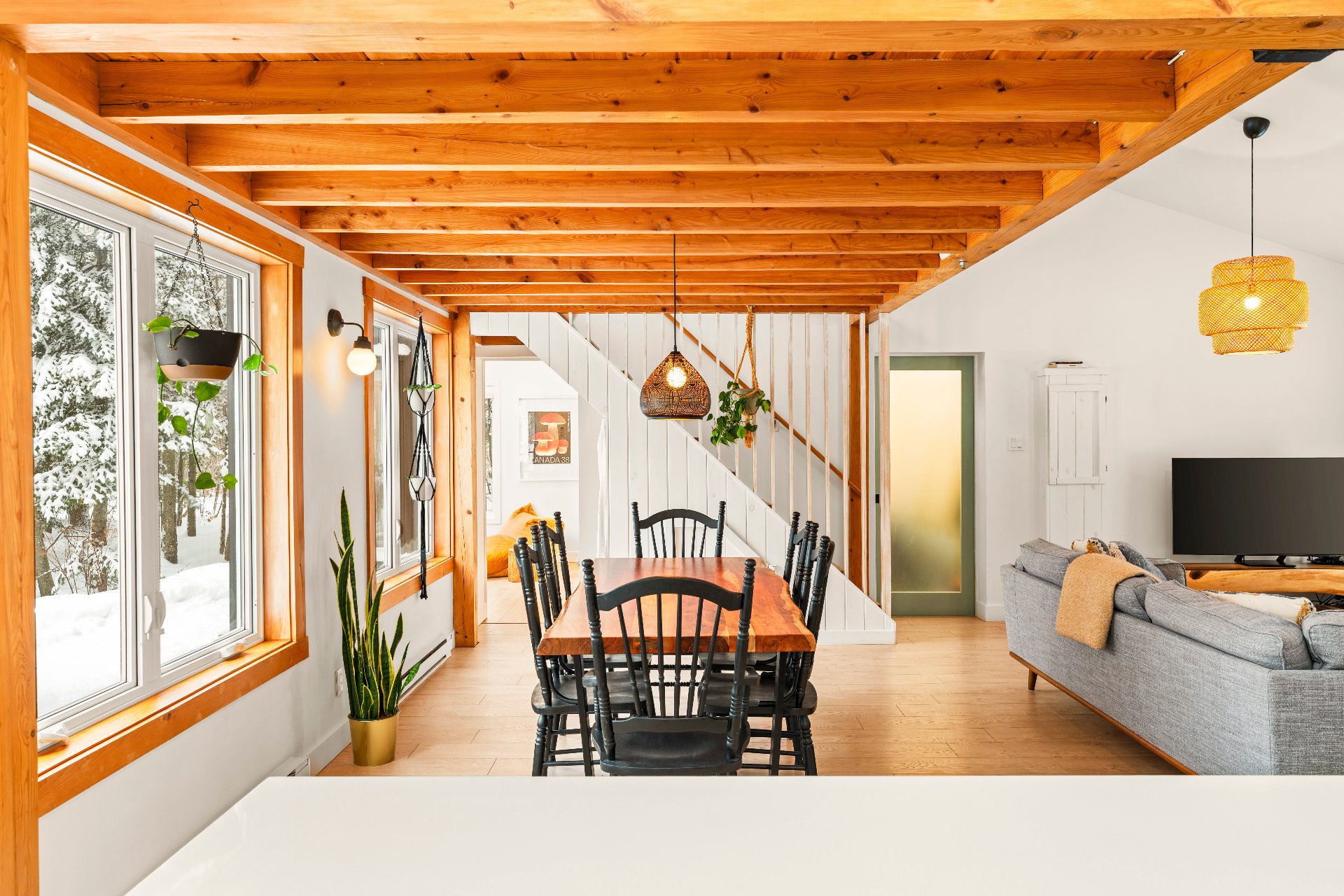 Découvrez ce chalet chaleureux dans les Cantons de l'Est, sur 1 acre de nature à 1h15 de Montréal. Lumineux avec fenestration abondante, foyer au bois, 2 chambres, mezzanine et sauna, il offre également un grand balcon avec espace feu, un abri d'auto avec borne pour voiture électrique et rangement pratique. À proximité du village d'Eastman, des lacs, de la Route Verte et de stations de ski renommées. Idéal pour résidence principale, secondaire ou location court terme avec statut de Super Host sur Airbnb.