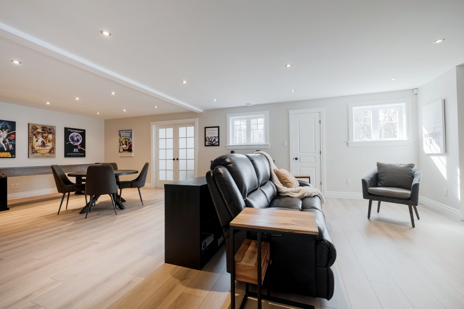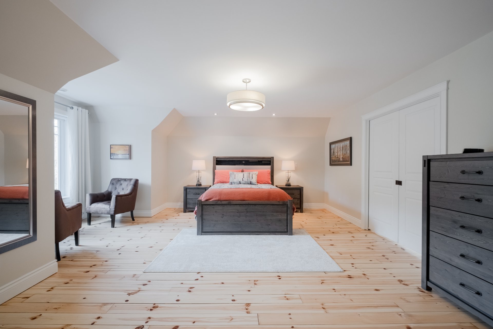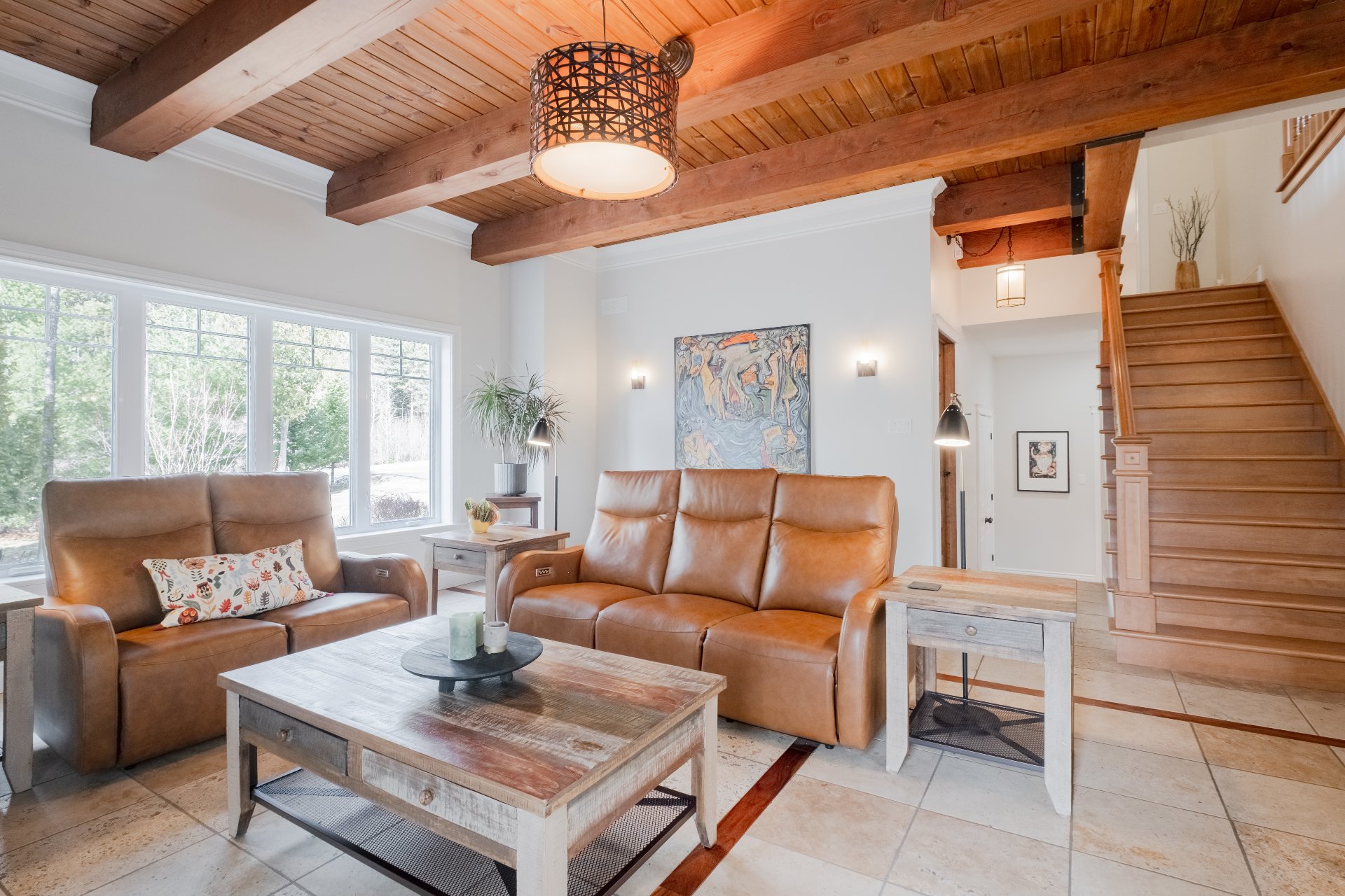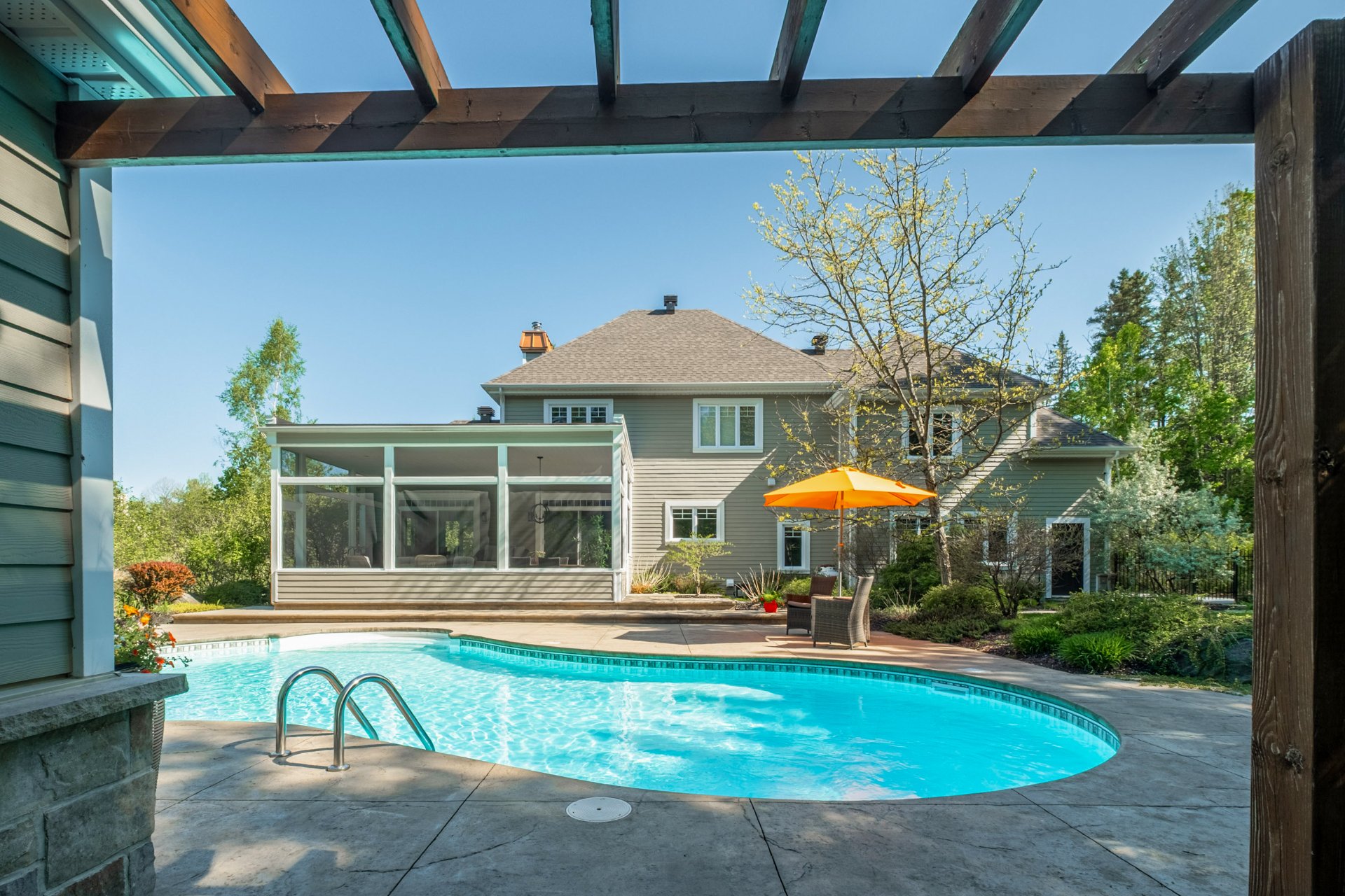 L'équipe est fière de présenter cette propriété d'exception située à Orford, dans un secteur tranquille en pleine nature. Érigée sur un vaste terrain de 42 921 pieds carrés, cette construction intemporelle offre des éléments uniques, dont une piscine creusée et un garage triple. À seulement 10 minutes du Mont Orford, 5 minutes de Magog et près de tous les services, l'emplacement est idéal pour une famille en quête de nature sans renoncer au confort urbain. Dès l'arrivée, une grande cour pouvant accueillir plusieurs véhicules mène vers le garage et l'entrée principale. Un vestibule avec garde-robe walk-in donne accès à une aire de vie ouverte, où l'on découvre une cuisine moderne avec îlot, comptoirs en granit et de nombreux rangements. À proximité : salle à manger, salon au style classique et une pièce lumineuse orientée vers la cour arrière, parfaite comme coin lecture ou salle de jeux. Un grand solarium 3 saisons s'y ajoute. Le rez-de-chaussée comprend aussi une salle d'eau avec salle de lavage, ainsi qu'un accès au garage où un bureau aménagé occupe l'un des trois espaces. À l'étage, un second salon plus intime précède la suite des maîtres, spacieuse et baignée de lumière. Son walk-in mène à une salle de bains attenante avec douche indépendante, évier double et baignoire au design épuré. Une deuxième salle de bains complète, au style similaire, dessert trois chambres secondaires avec de spacieux rangements. Au sous-sol, un espace polyvalent permet l'aménagement d'un cinéma maison, d'une salle de billard ou d'une salle de jeux pour adultes. Une chambre idéale pour un ado, avec deux garde-robes, et un espace bureau complètent ce niveau. À l'arrière, la cour offre un cadre parfait pour recevoir et profiter des beaux jours. Piscine creusée, terrain aménagé, rangement extérieur et espace additionnel à personnaliser s'intègrent dans un environnement discret, enveloppé par la nature, garantissant une intimité constante. Mesures du bâtiment selon le certificat de localisation.