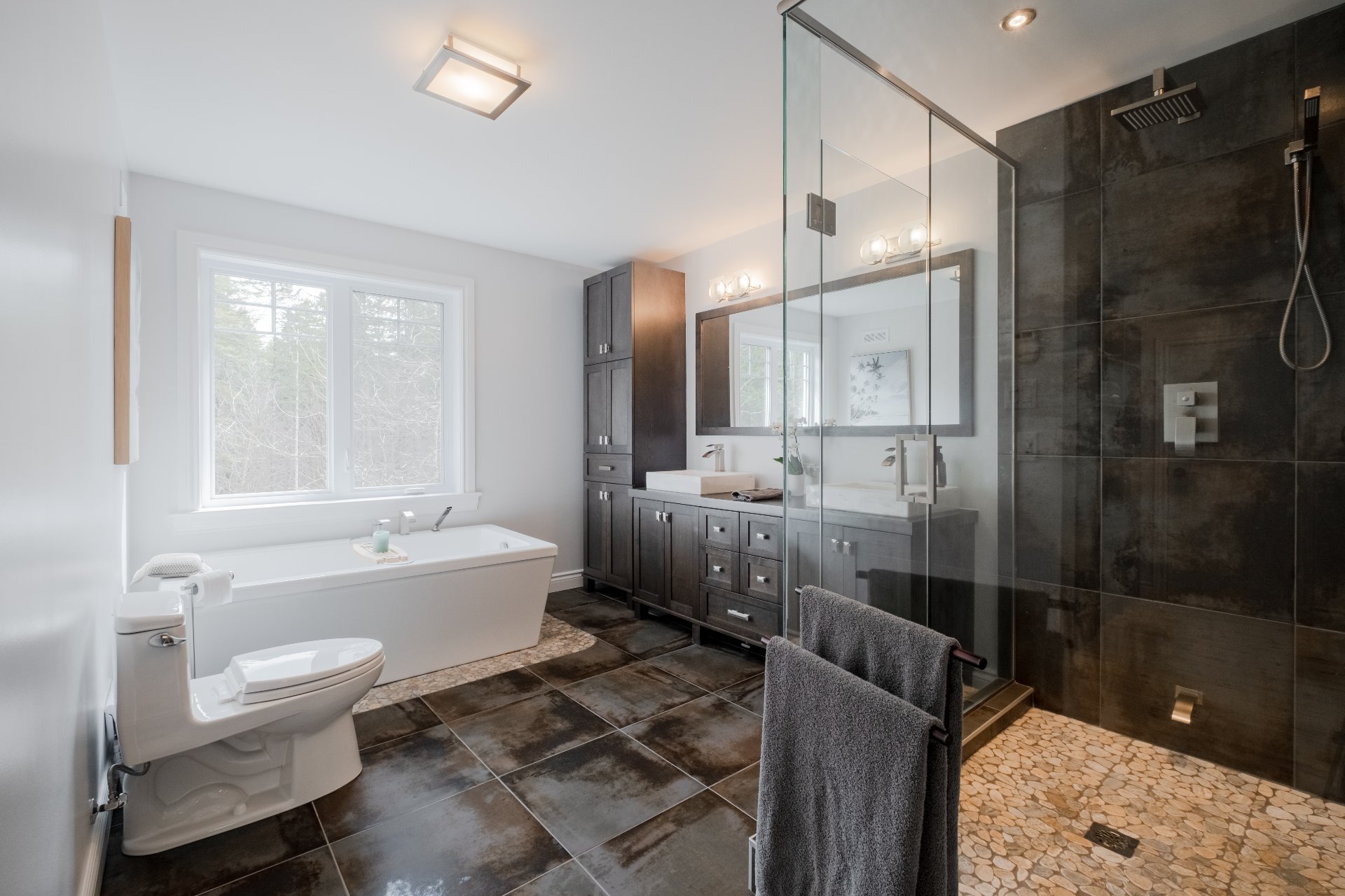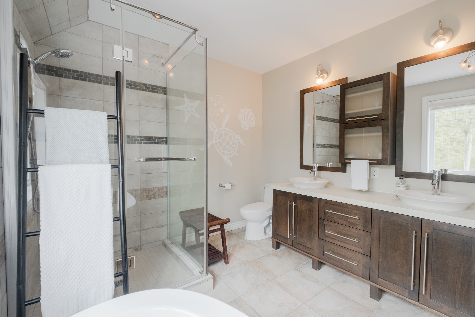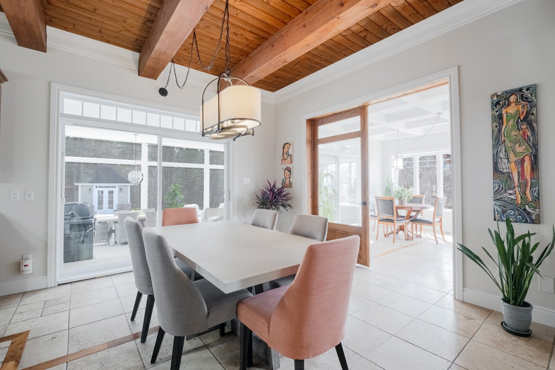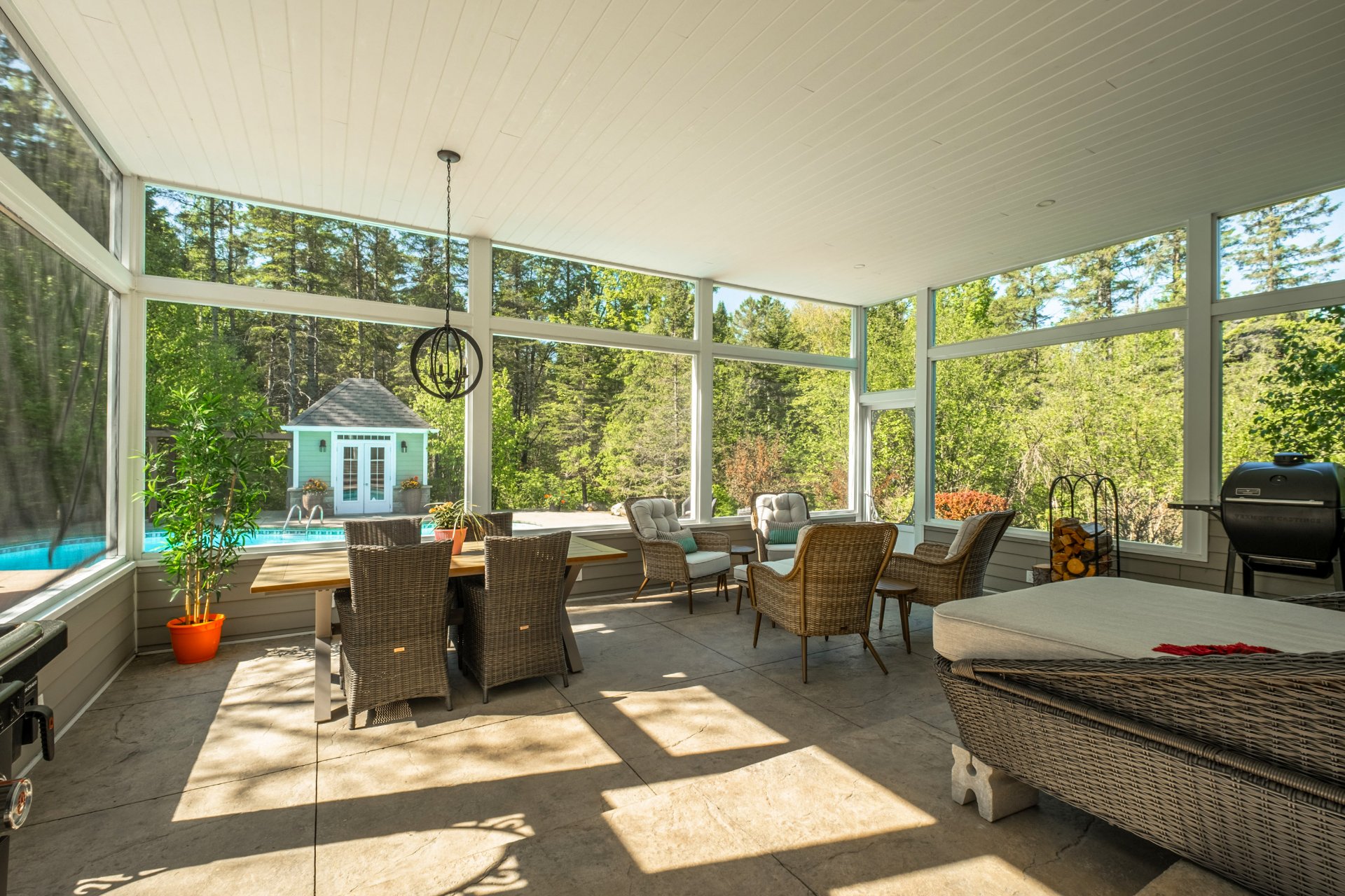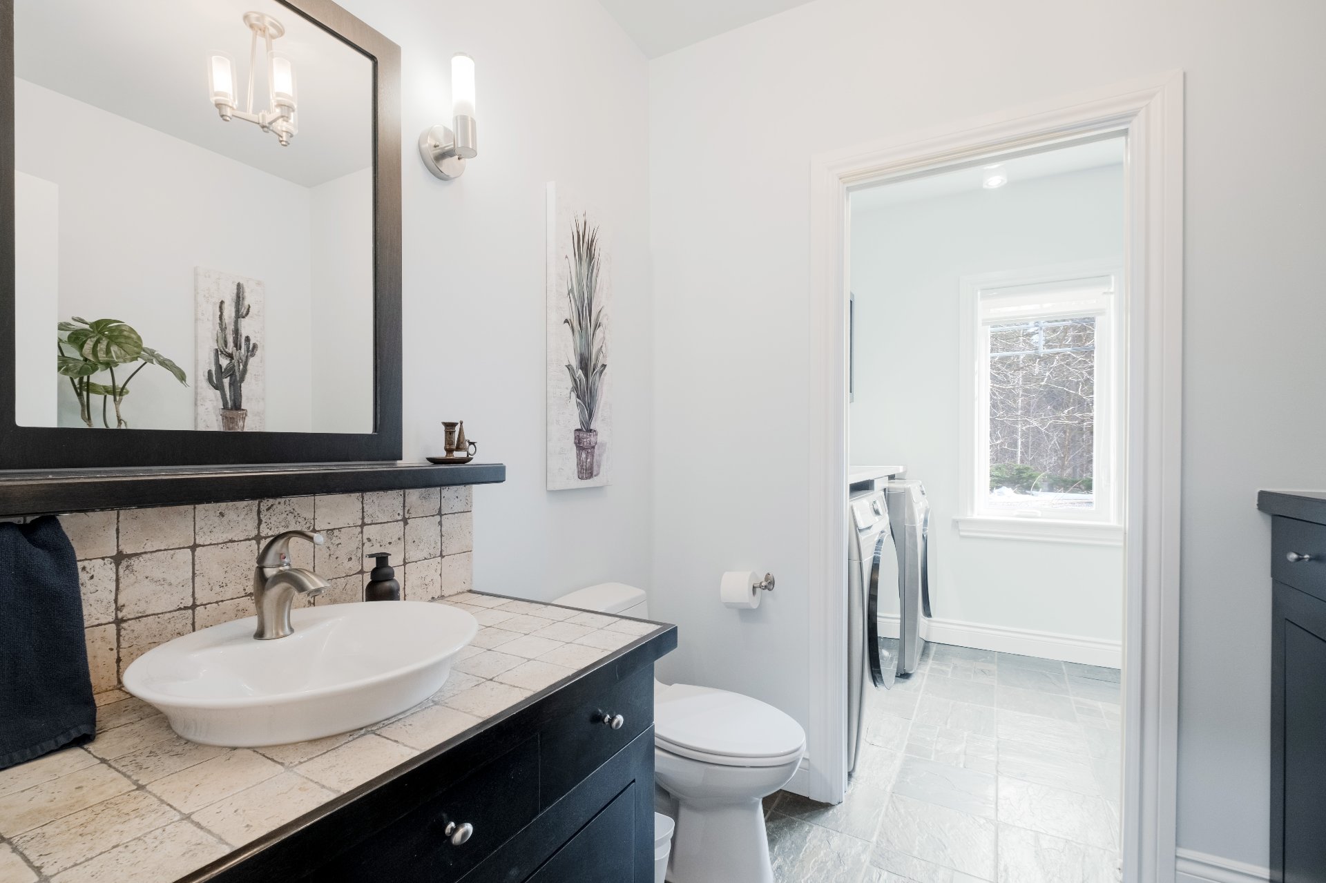 L'équipe est fière de présenter cette propriété d'exception située à Orford, dans un secteur tranquille en pleine nature. Érigée sur un vaste terrain de 42 921 pieds carrés, cette construction intemporelle offre des éléments uniques, dont une piscine creusée et un garage triple. À seulement 10 minutes du Mont Orford, 5 minutes de Magog et près de tous les services, l'emplacement est idéal pour une famille en quête de nature sans renoncer au confort urbain. Dès l'arrivée, une grande cour pouvant accueillir plusieurs véhicules mène vers le garage et l'entrée principale. Un vestibule avec garde-robe walk-in donne accès à une aire de vie ouverte, où l'on découvre une cuisine moderne avec îlot, comptoirs en granit et de nombreux rangements. À proximité : salle à manger, salon au style classique et une pièce lumineuse orientée vers la cour arrière, parfaite comme coin lecture ou salle de jeux. Un grand solarium 3 saisons s'y ajoute. Le rez-de-chaussée comprend aussi une salle d'eau avec salle de lavage, ainsi qu'un accès au garage où un bureau aménagé occupe l'un des trois espaces. À l'étage, un second salon plus intime précède la suite des maîtres, spacieuse et baignée de lumière. Son walk-in mène à une salle de bains attenante avec douche indépendante, évier double et baignoire au design épuré. Une deuxième salle de bains complète, au style similaire, dessert trois chambres secondaires avec de spacieux rangements. Au sous-sol, un espace polyvalent permet l'aménagement d'un cinéma maison, d'une salle de billard ou d'une salle de jeux pour adultes. Une chambre idéale pour un ado, avec deux garde-robes, et un espace bureau complètent ce niveau. À l'arrière, la cour offre un cadre parfait pour recevoir et profiter des beaux jours. Piscine creusée, terrain aménagé, rangement extérieur et espace additionnel à personnaliser s'intègrent dans un environnement discret, enveloppé par la nature, garantissant une intimité constante. Mesures du bâtiment selon le certificat de localisation.