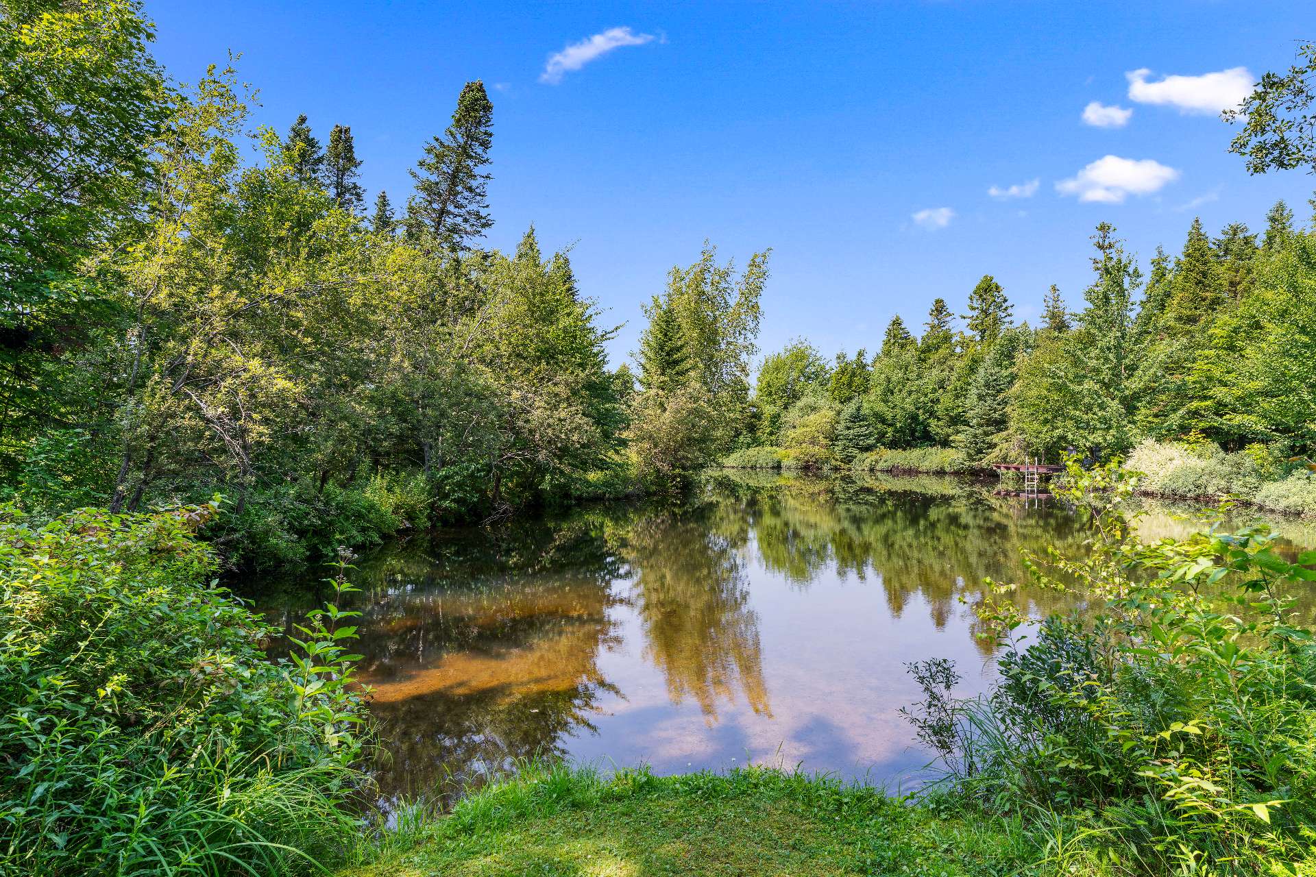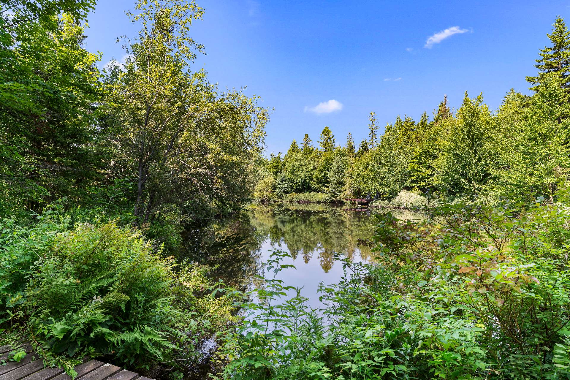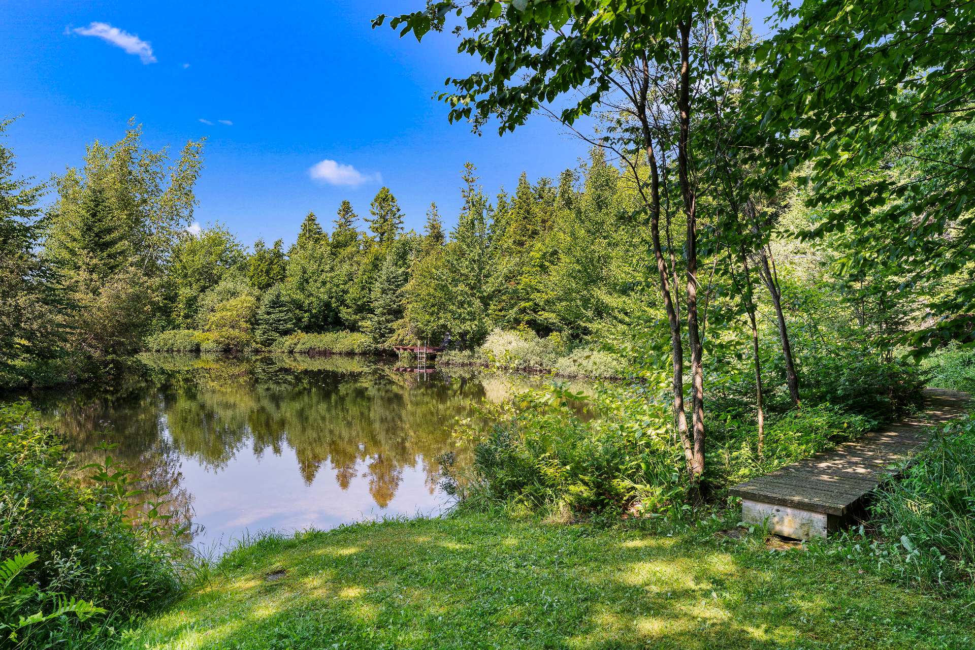 Au bout du sentier principal, un magnifique lac naturalisé privé vous attend, avec terrasse aménagée et passerelles. Deux espèces de truites complètent cet écosystème remarquable.