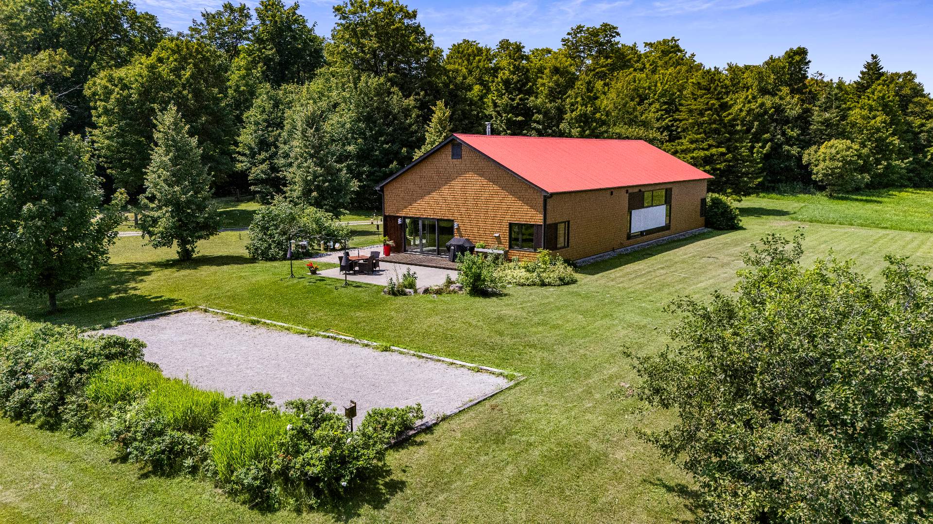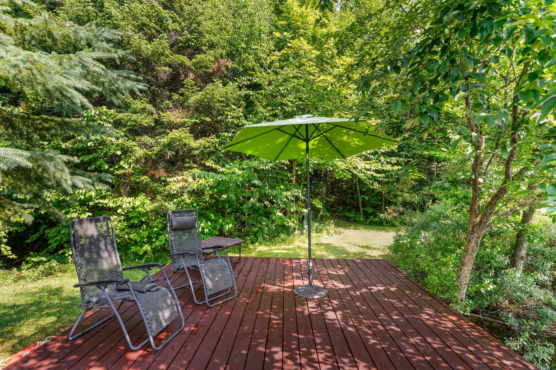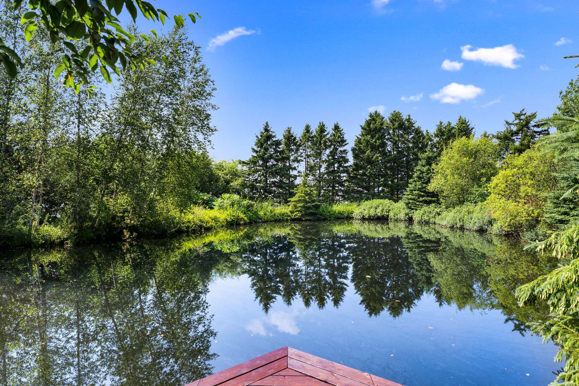 Au bout du sentier principal, un magnifique lac naturalisé privé vous attend, avec terrasse aménagée et passerelles. Deux espèces de truites complètent cet écosystème remarquable.