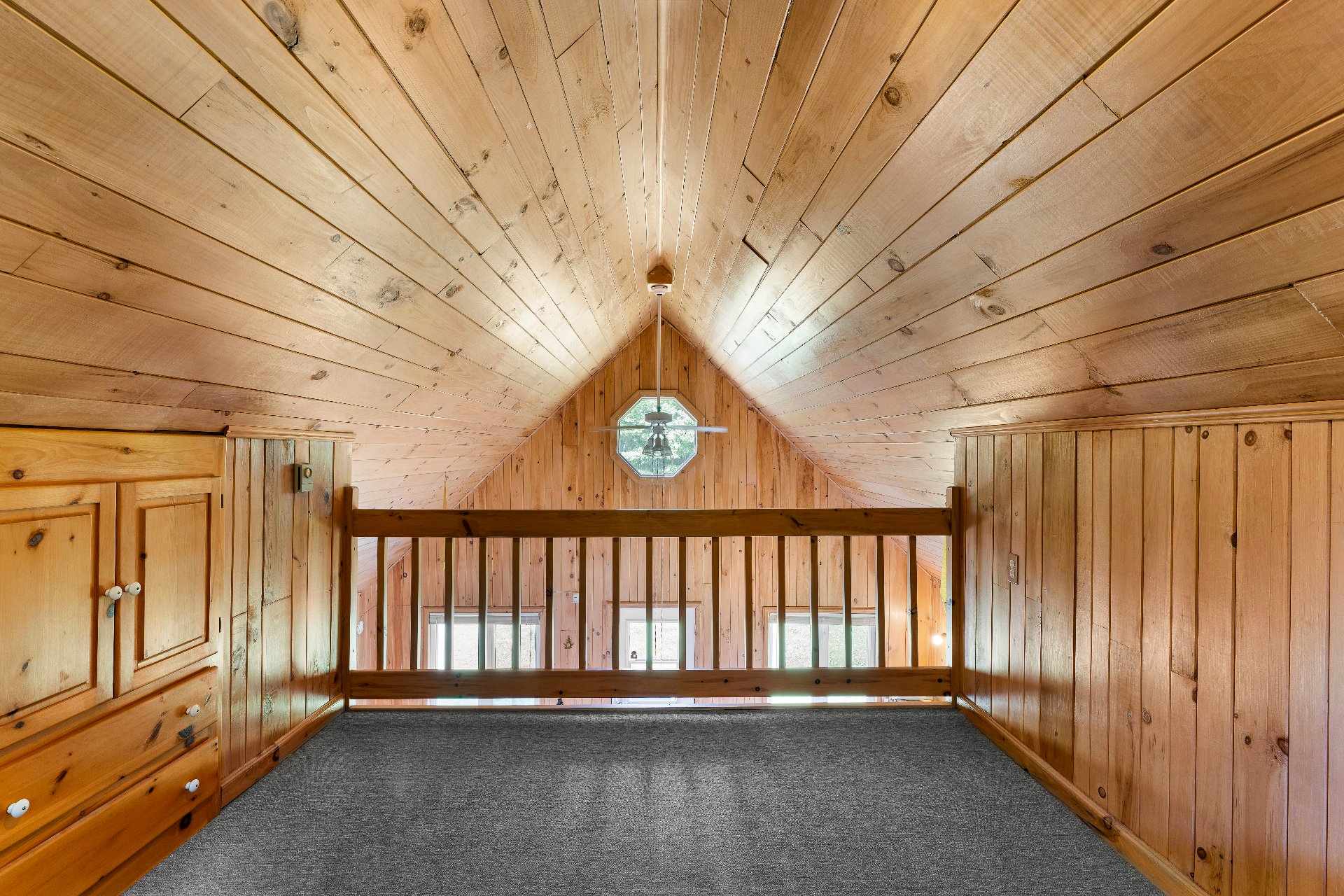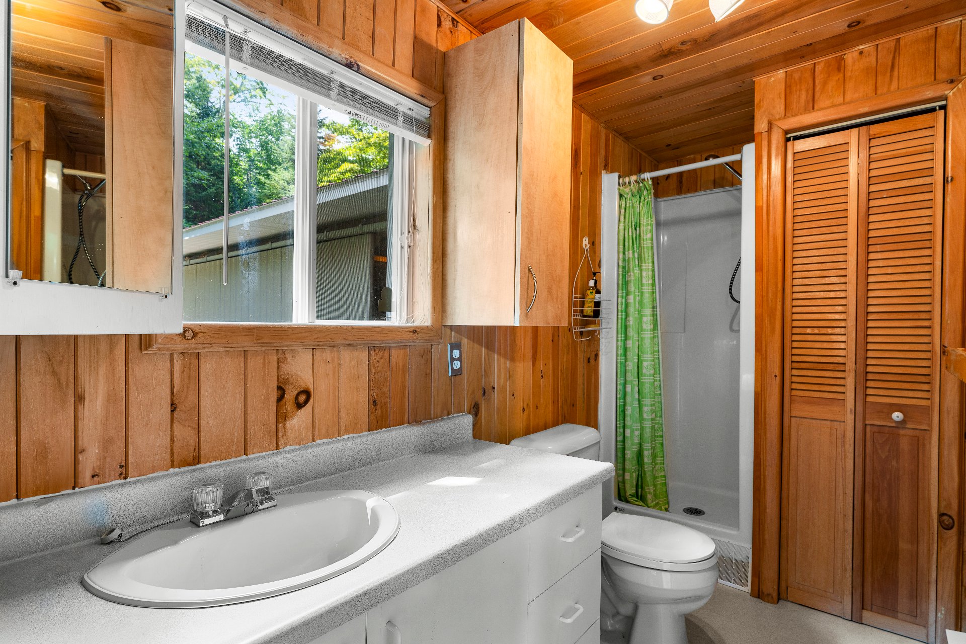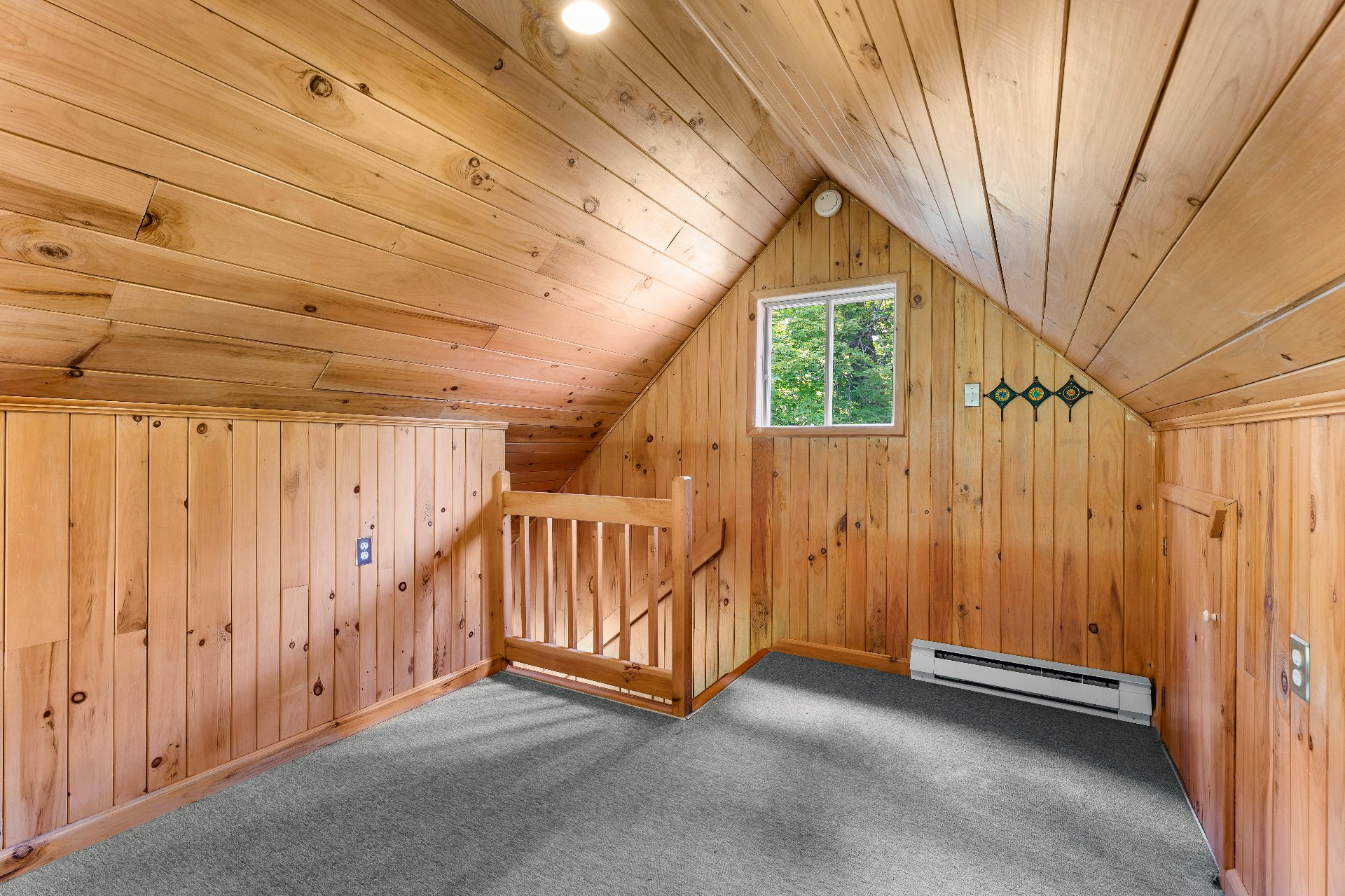 À quelques pas, un charmant chalet d'invités s'ajoute à l'ensemble : toit cathédrale en lambris de bois, aire ouverte de 21x19pi. incluant salon muni d'un foyer à combustion lente, s. à manger, cuisine complète et d'une s. de bain comprenant une douche et une lingerie. Une mezzanine avec meubles encastrés permet d'y aménager une belle chambre. Ce chalet pourrait aisément être offert en location.