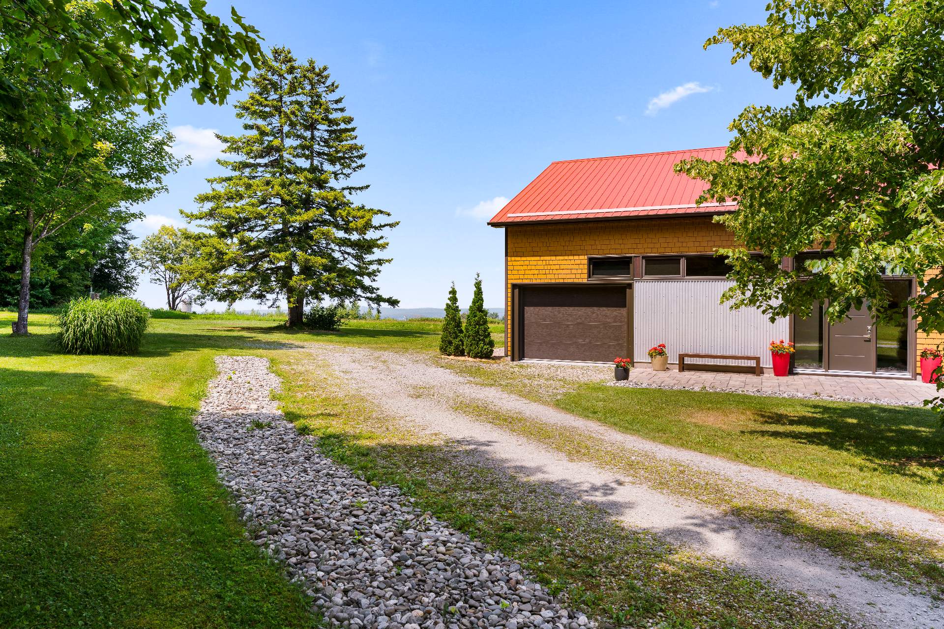 Bienvenue sur cette propriété d'exception située sur la route du 1er-Rang à Racine. Nichée au coeur de 25 acres de nature préservée, cette propriété allie design et beauté naturelle.