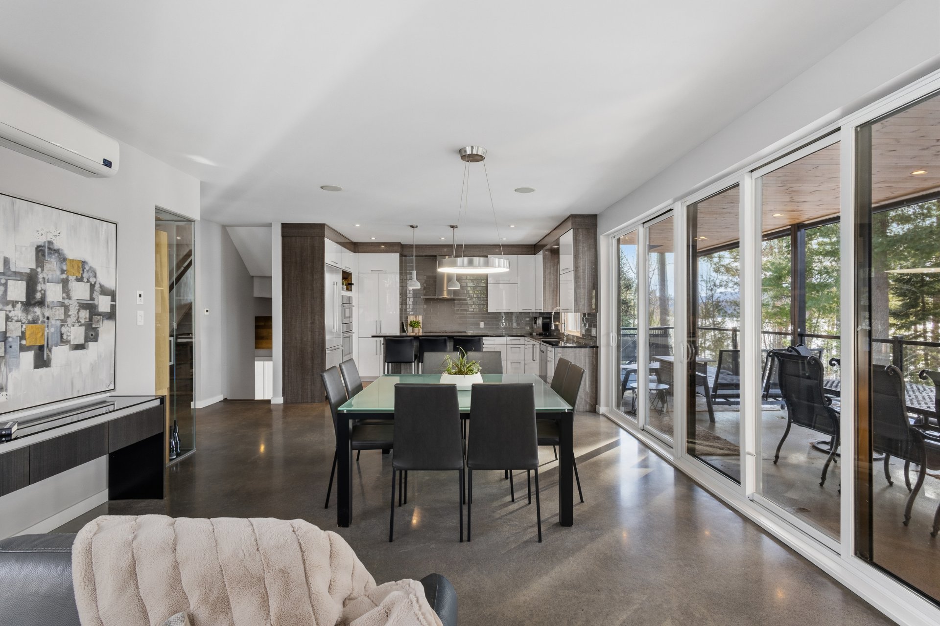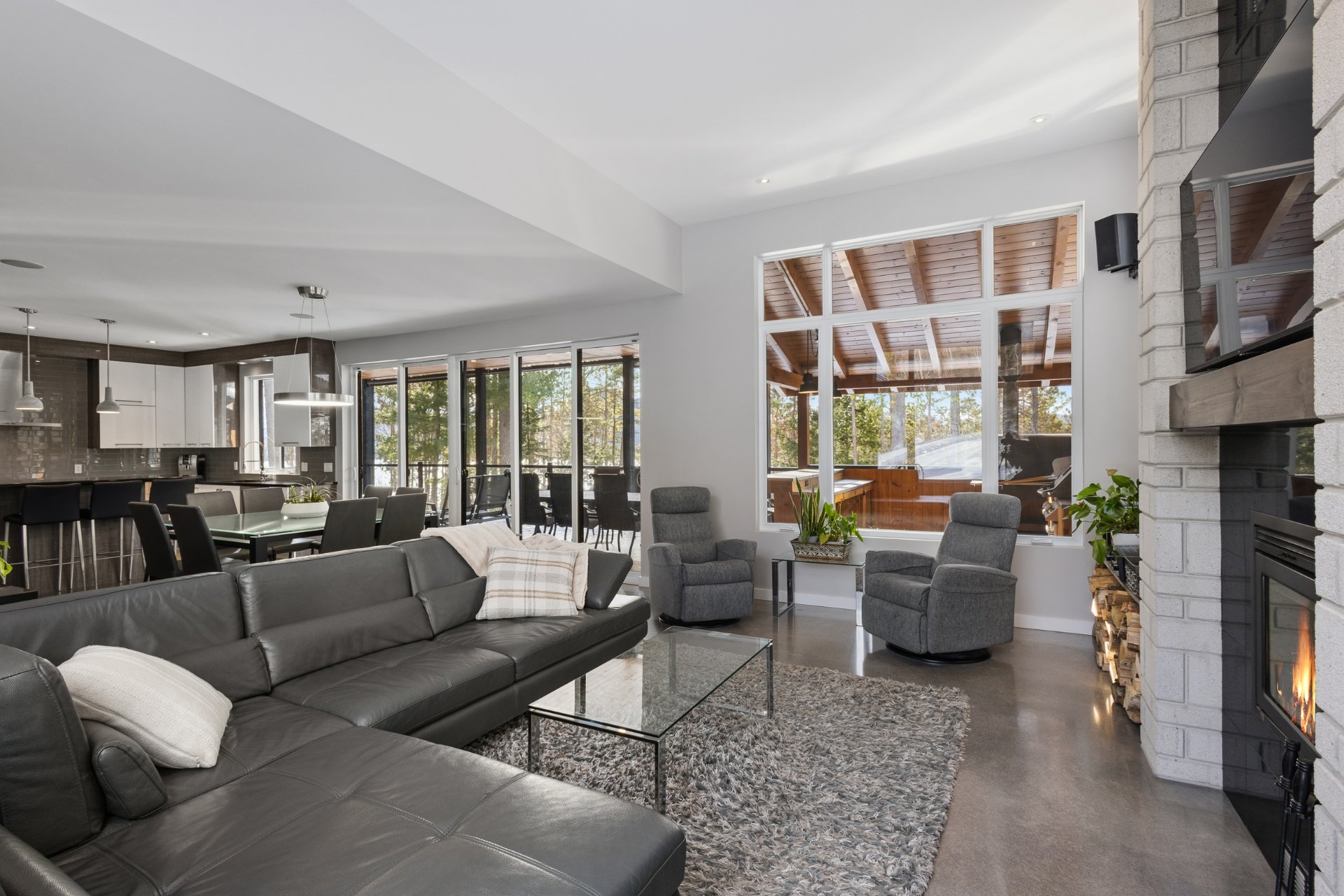 Propriété d'exception en bordure du grand lac Brompton, érigée en 2015 sur un terrain boisé offrant intimité et panorama remarquable. Cette résidence à l'architecture moderne séduit par ses volumes impressionnants, sa fenestration abondante et ses planchers chauffants au rez-de-chaussée et au garage. Elle propose 4 chambres, dont deux somptueuses suites à l'étage, 3 salles de bains complètes, 2 salles d'eau ainsi que des espaces de vie lumineux et raffinés. Cuisine extérieure avec four à pizza, spa, garage triple avec espace lounge et golf virtuel : un milieu de vie exclusif où confort, design et nature s'harmonisent parfaitement.
