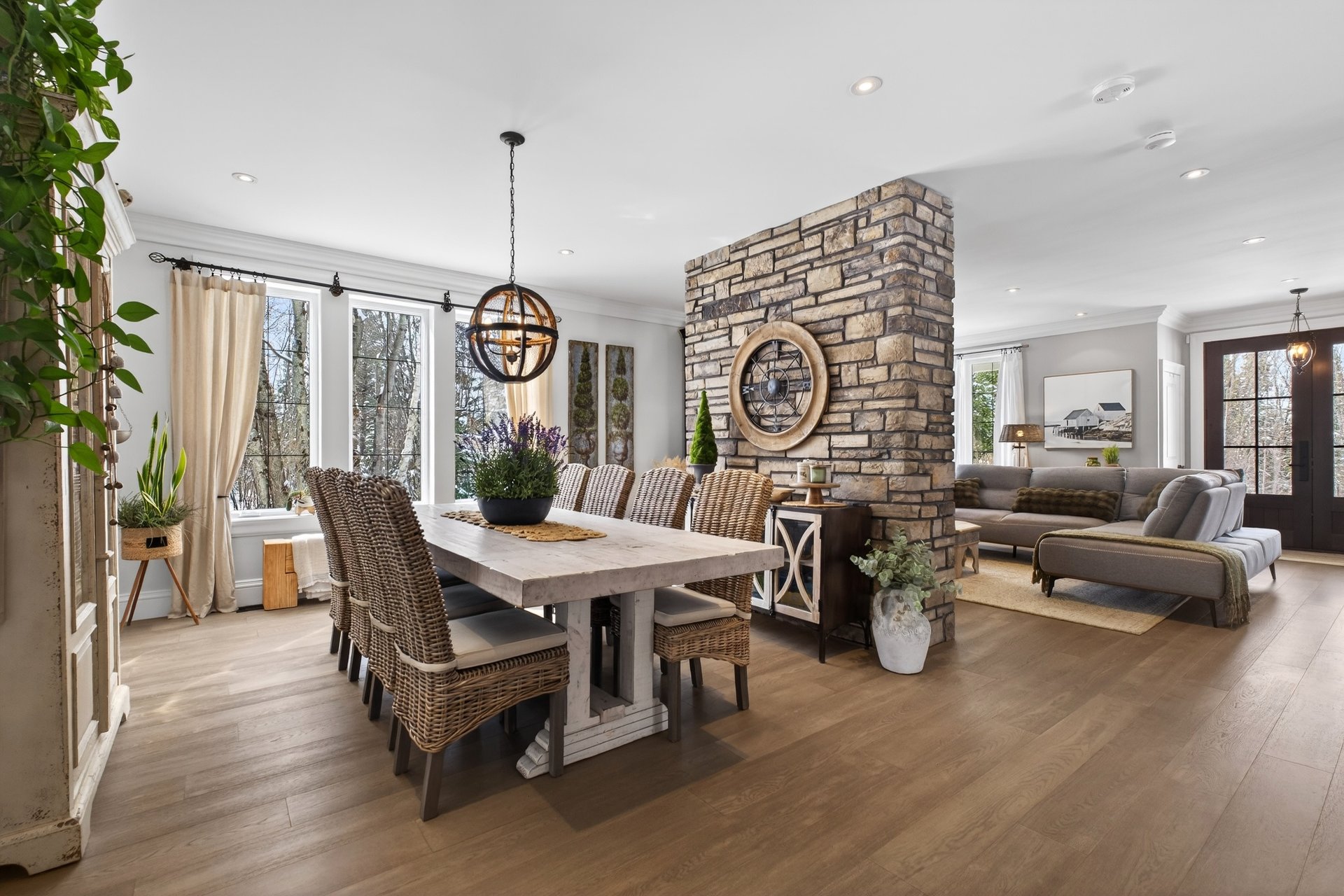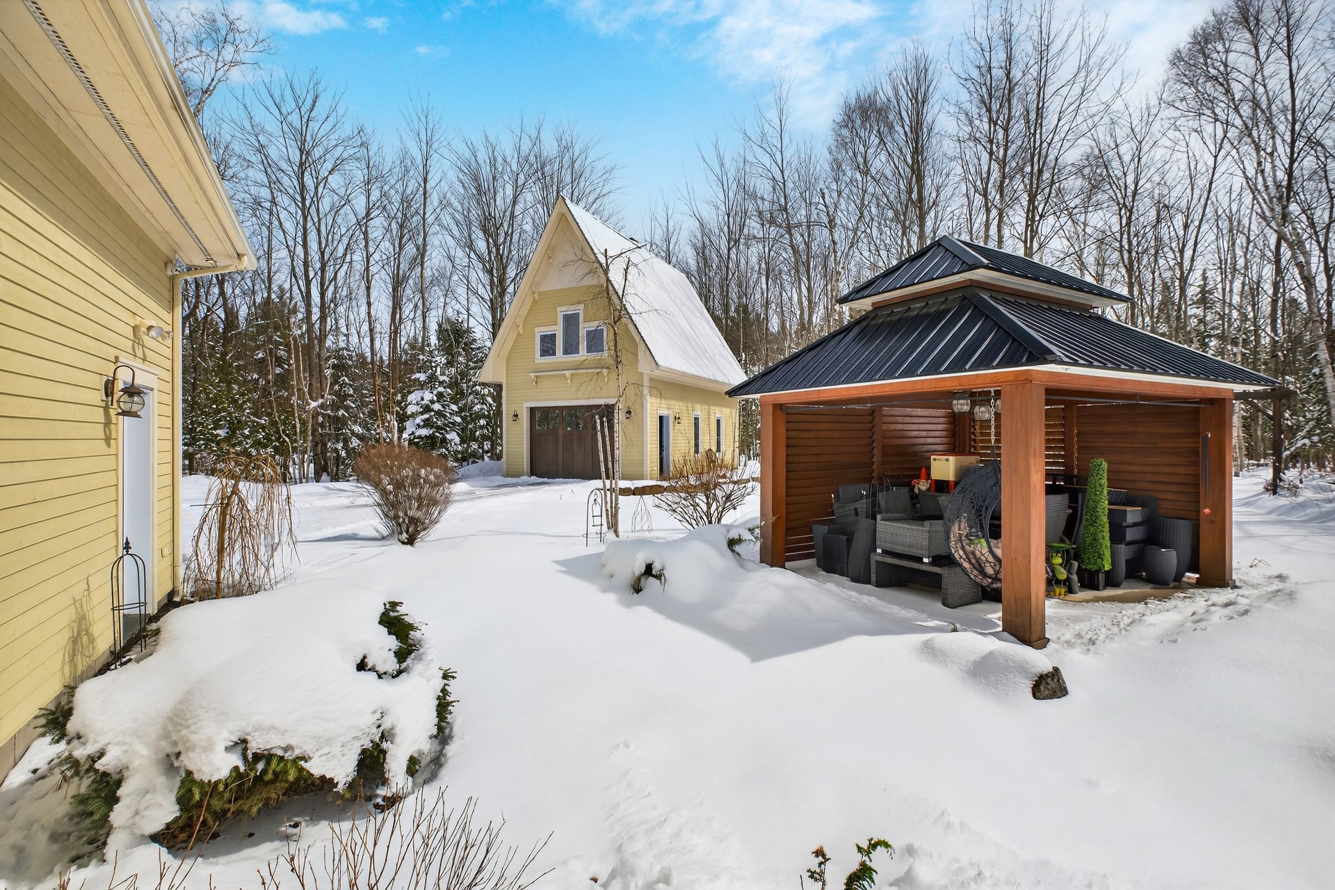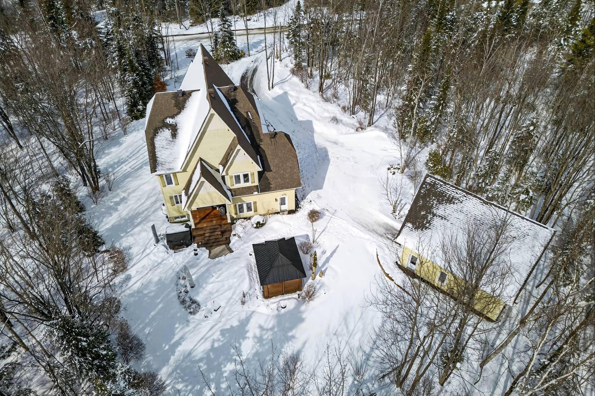 Au coeur du Domaine Forest, à Saint-Denis-de-Brompton, à quelques pas du majestueux grand Lac Brompton, cette propriété d'exception incarne l'alliance parfaite entre raffinement, intimité et art de vivre.Implantée sur un vaste terrain boisé, elle séduit dès l'arrivée par sa galerie enveloppante et ses imposantes portes en bois massif, annonçant une résidence conçue avec un souci du détail remarquable et des matériaux nobles soigneusement sélectionnés.Le rez-de-chaussée dévoile une aire de vie ouverte, baignée de lumière, où chaque espace est harmonieusement défini. L'escalier central, au design intemporel, agit comme une véritable pièce maîtresse architecturale, conférant caractère et élégance à l'ensemble. La salle à manger, lumineuse et accueillante, propose un cadre idéal pour recevoir avec distinction.Un majestueux mur de pierre structure les volumes et mène vers un salon chaleureux, où foyer central et bibliothèque sur mesure créent une atmosphère à la fois feutrée et sophistiquée. Une véranda lumineuse vient compléter cet espace, offrant un lieu intime propice à la détente, à la lecture ou au télétravail.La cuisine, à la fois élégante et hautement fonctionnelle, se distingue par son vaste îlot central et la qualité irréprochable de ses matériaux. Elle s'accompagne d'un espace de services pratique et d'un accès direct au garage double, alliant esthétisme et efficacité au quotidien.À l'étage, un charmant coin boudoir prolonge l'ambiance raffinée des lieux. On y retrouve trois chambres spacieuses, toutes baignées de lumière naturelle. Les chambres secondaires se démarquent par leurs murs d'accent distinctifs et leurs walk-ins. La suite principale offre un véritable sanctuaire privé avec deux walk-ins et une somptueuse salle de bain attenante, dotée d'une baignoire autoportante. Une seconde salle de bain avec douche en céramique complète cet étage.Le sous-sol entièrement aménagé propose une ambiance chaleureuse avec ses planchers de bois et son mur d'accent en pierre. Polyvalent, cet espace comprend une chambre supplémentaire, une salle de bain avec douche ainsi que deux espaces de rangement, répondant parfaitement aux besoins d'une vie familiale ou d'accueil.À l'extérieur, un magnifique patio en bois s'ouvre sur un environnement naturel intime et apaisant. Le gazebo s'intègre harmonieusement au paysage, tandis qu'un coin feu aménagé en retrait dans le boisé invite à des soirées conviviales. La propriété comprend également un garage détaché avec étage de rangement ainsi qu'un vaste espace de stationnement.En tant que résident du Domaine Forest, vous bénéficiez d'un accès privilégié au Lac Brompton avec quai privé, ainsi qu'aux installations communes : piscine creusée chauffée, terrain de tennis, aire de jeux et descente de bateaux.Une propriété unique où luxe, nature et qualité de vie se rencontrent avec élégance.