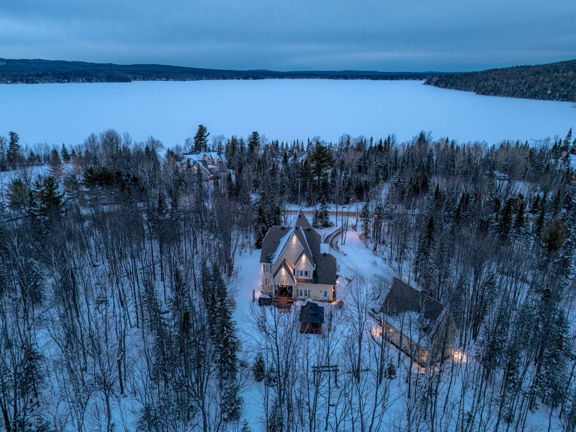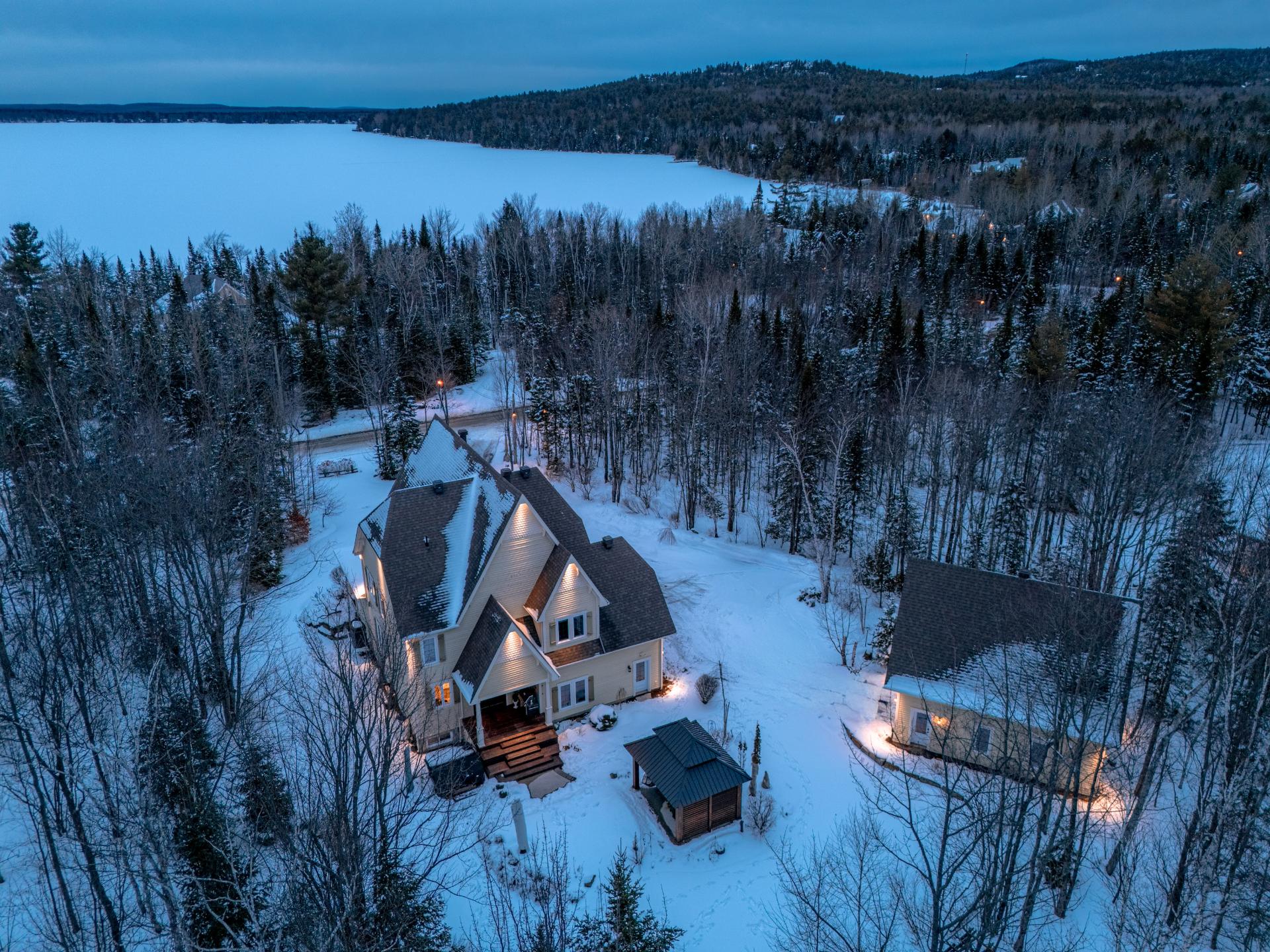 Propriété d'exception située au Domaine Forest, avec accès au grand Lac Brompton. Résidence haut de gamme offrant 4 chambres, 3 salles de bain et une salle d'eau, avec garage double et garage détaché avec étage. Terrain boisé intime, aménagement extérieur soigné avec patio, gazebo et coin feu. Accès au lac avec quai privé ainsi qu'aux installations du domaine : piscine creusée chauffée, tennis, aire de jeux et descente de bateaux.
