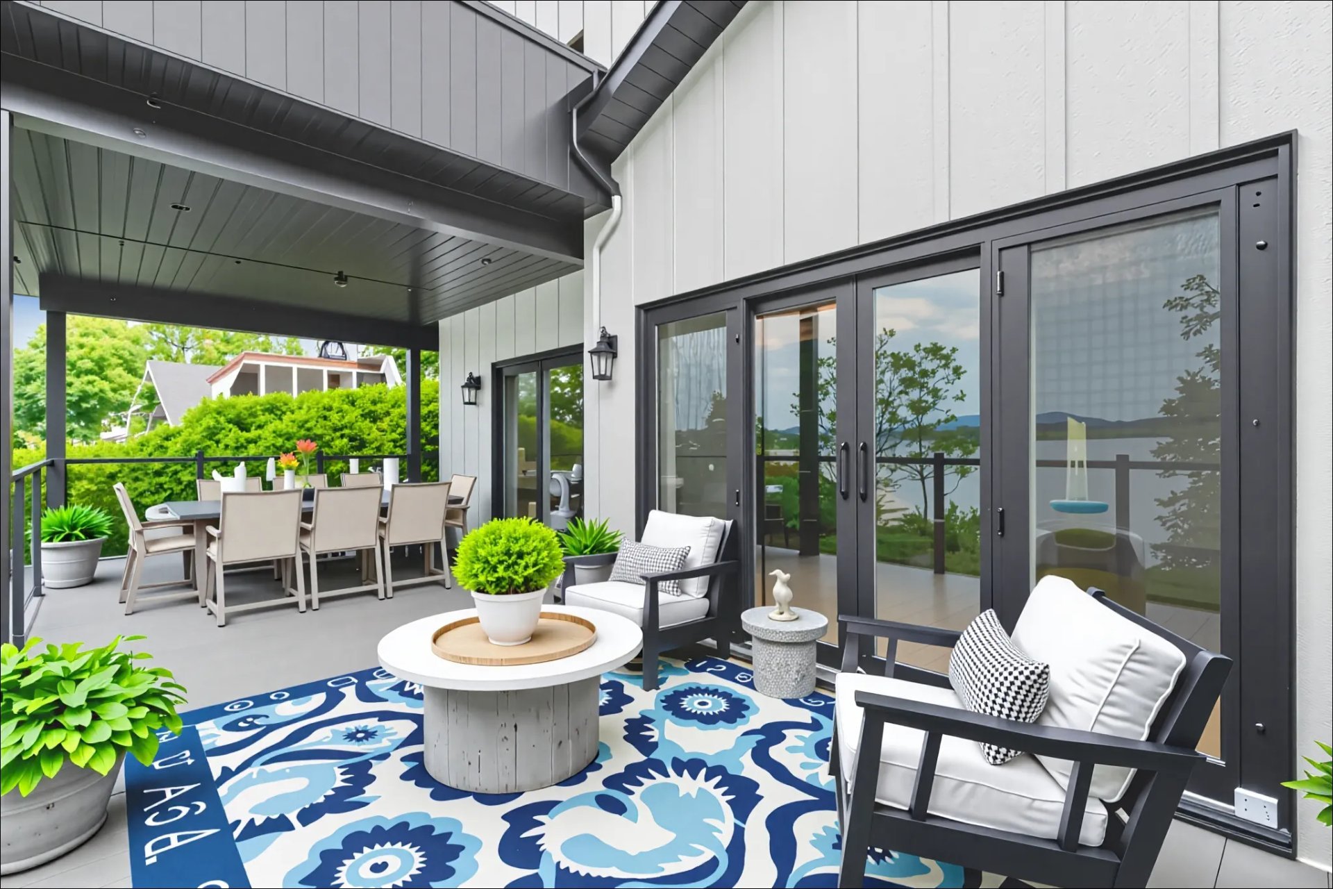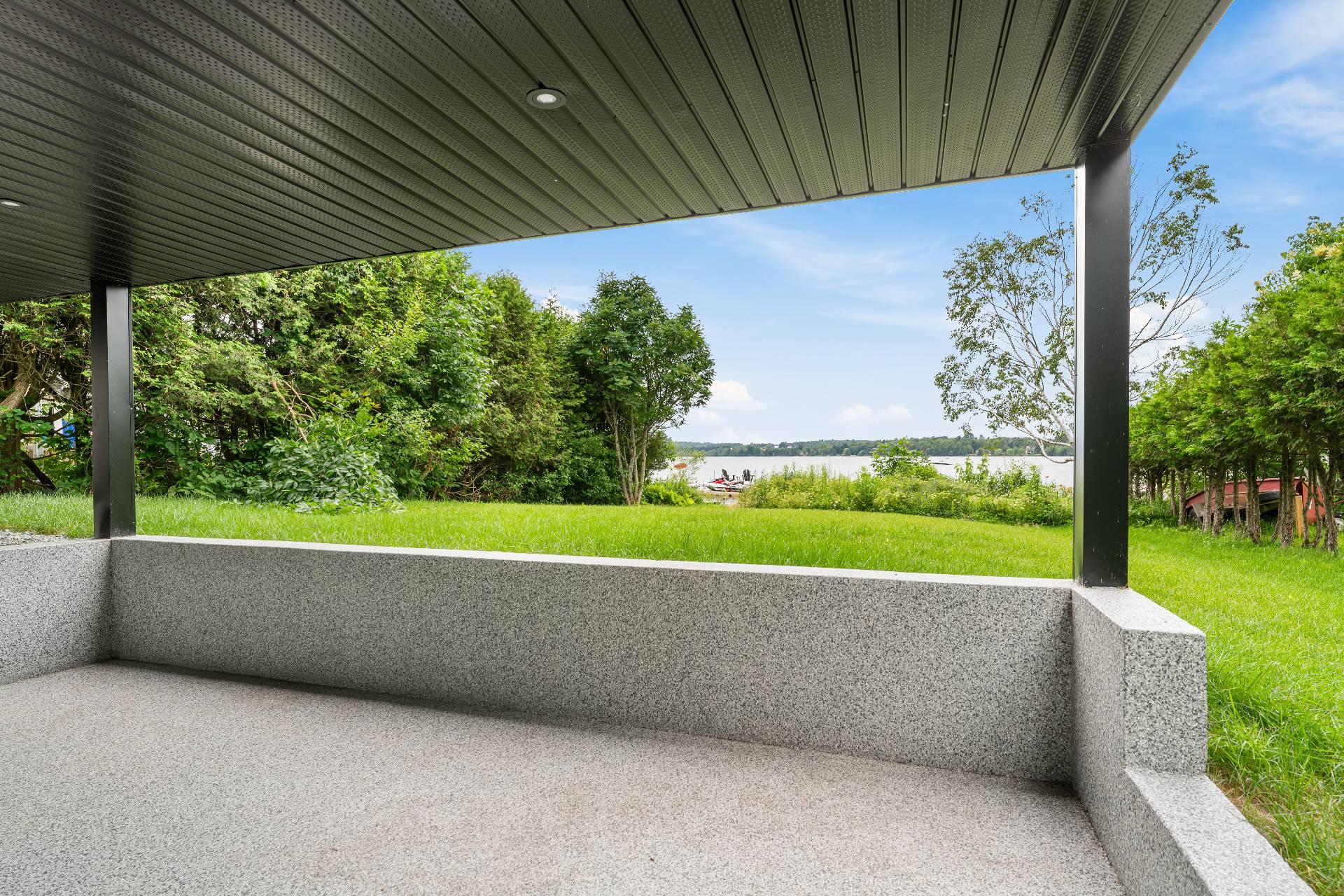 Le terrain paysager, vaste et soigné, vous permet de profiter pleinement de l'extérieur, que ce soit pour relaxer, jouer ou admirer la vue sur le lac. Le tout dans un secteur convoité, où nature et confort s'unissent.