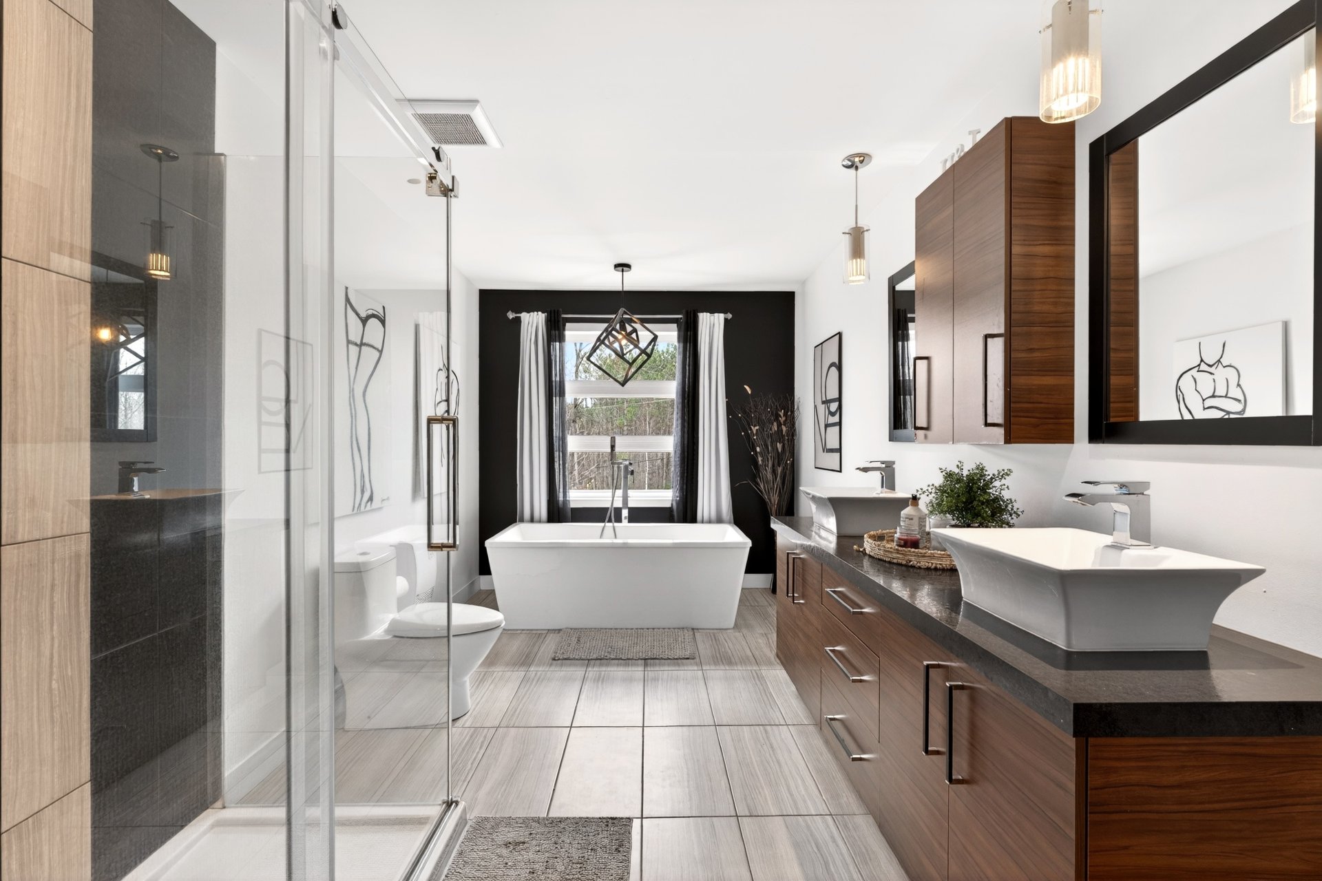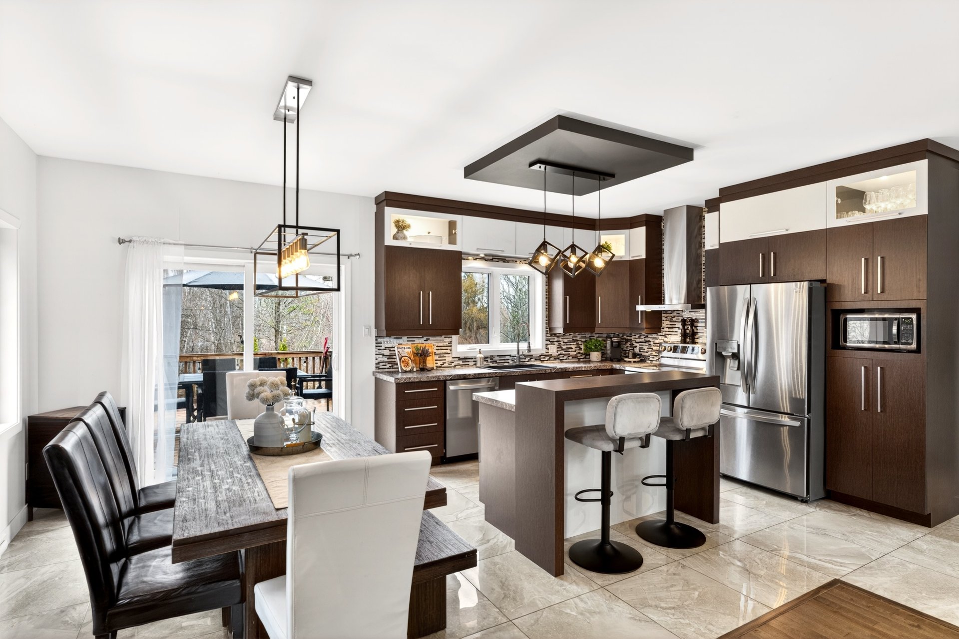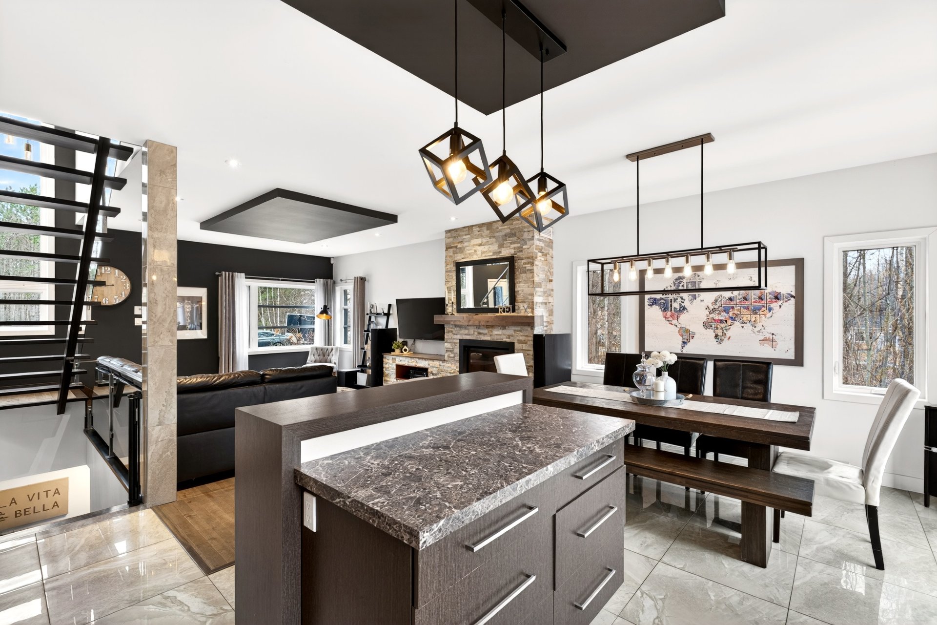Le rez-de-chaussée à aire ouverte procure une belle luminosité et une fluidité entre les espaces de vie, créant un cadre idéal autant pour le quotidien que pour recevoir.