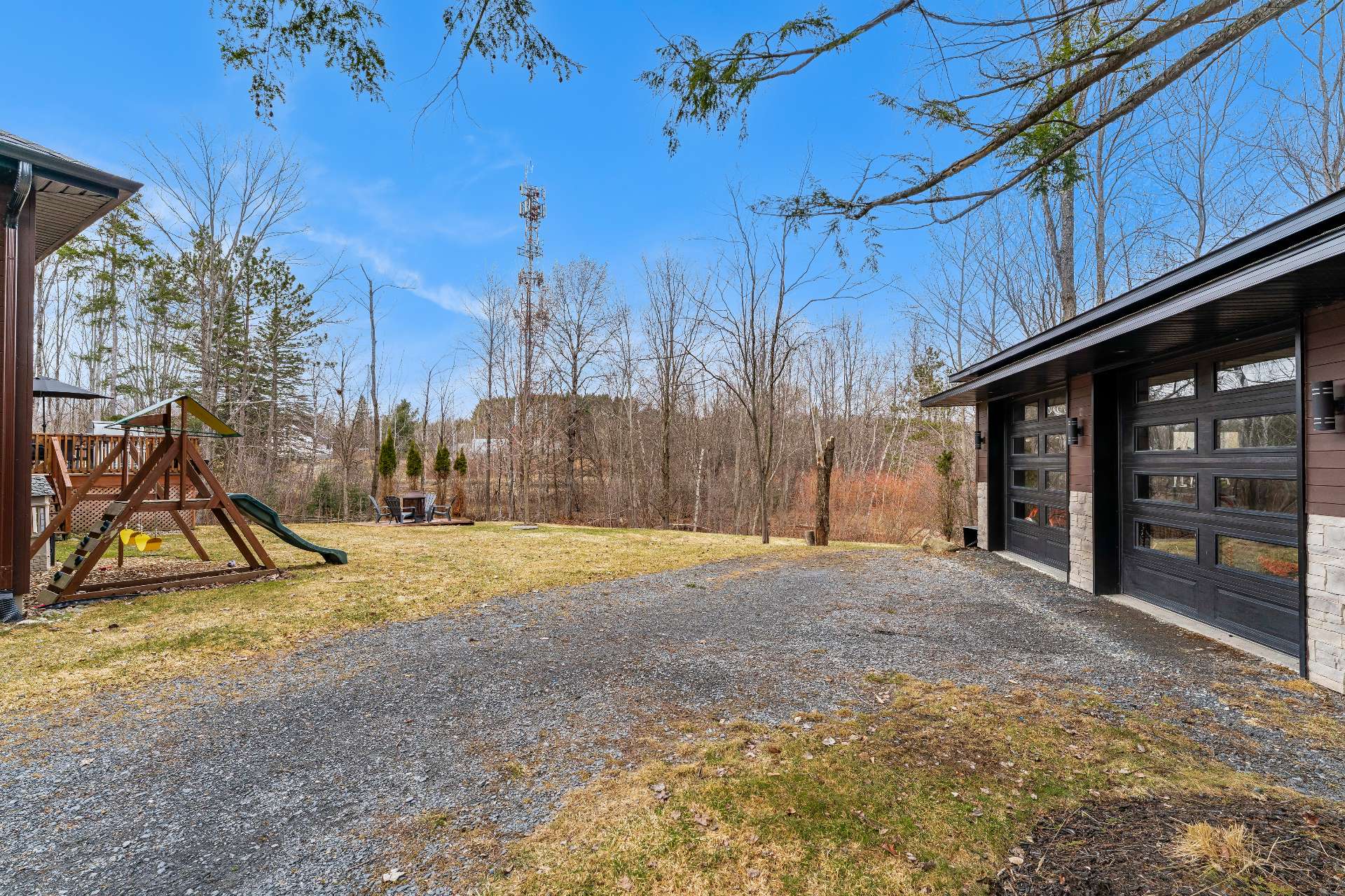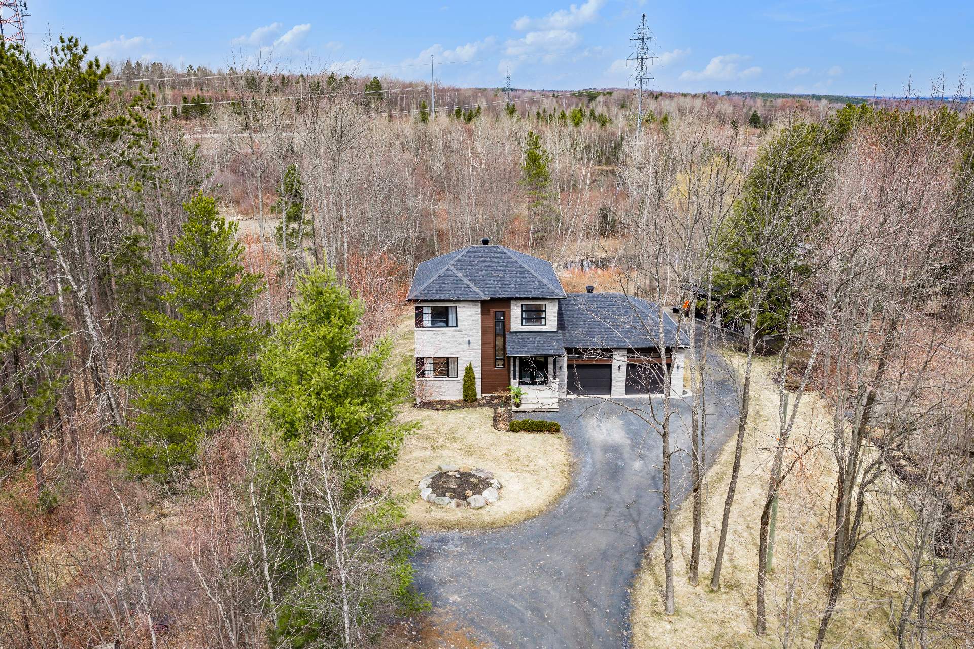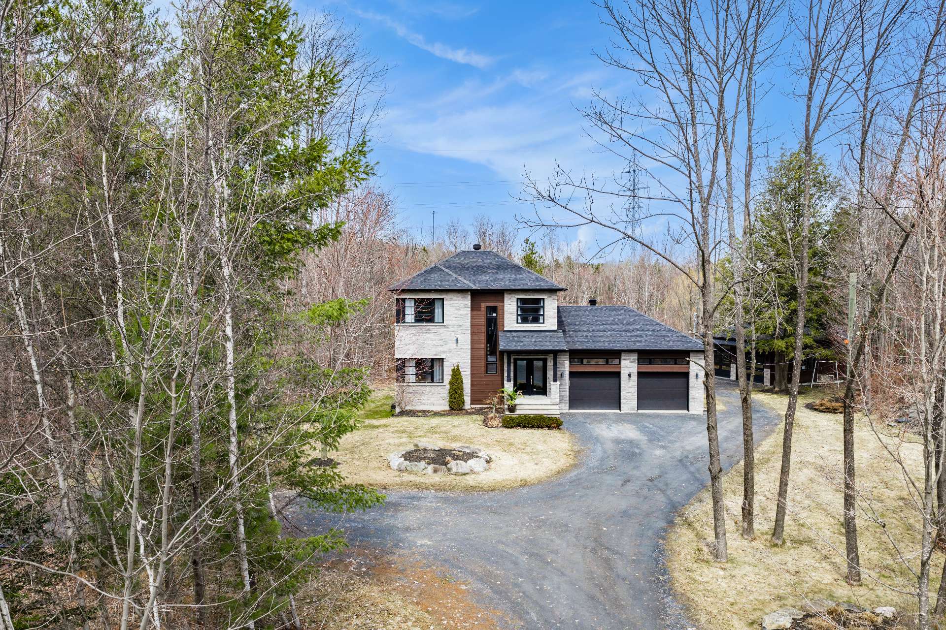 Implantée sur un vaste terrain boisé d'environ 38 900 pi², elle assure intimité et tranquillité dans un décor naturel attrayant. L'emplacement est particulièrement avantageux, à proximité des principaux axes routiers, facilitant les déplacements tout en conservant un cadre de vie paisible.