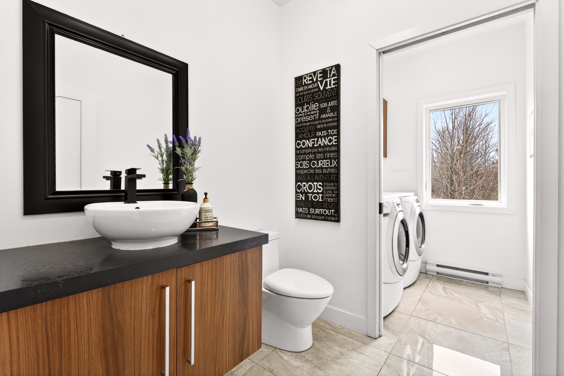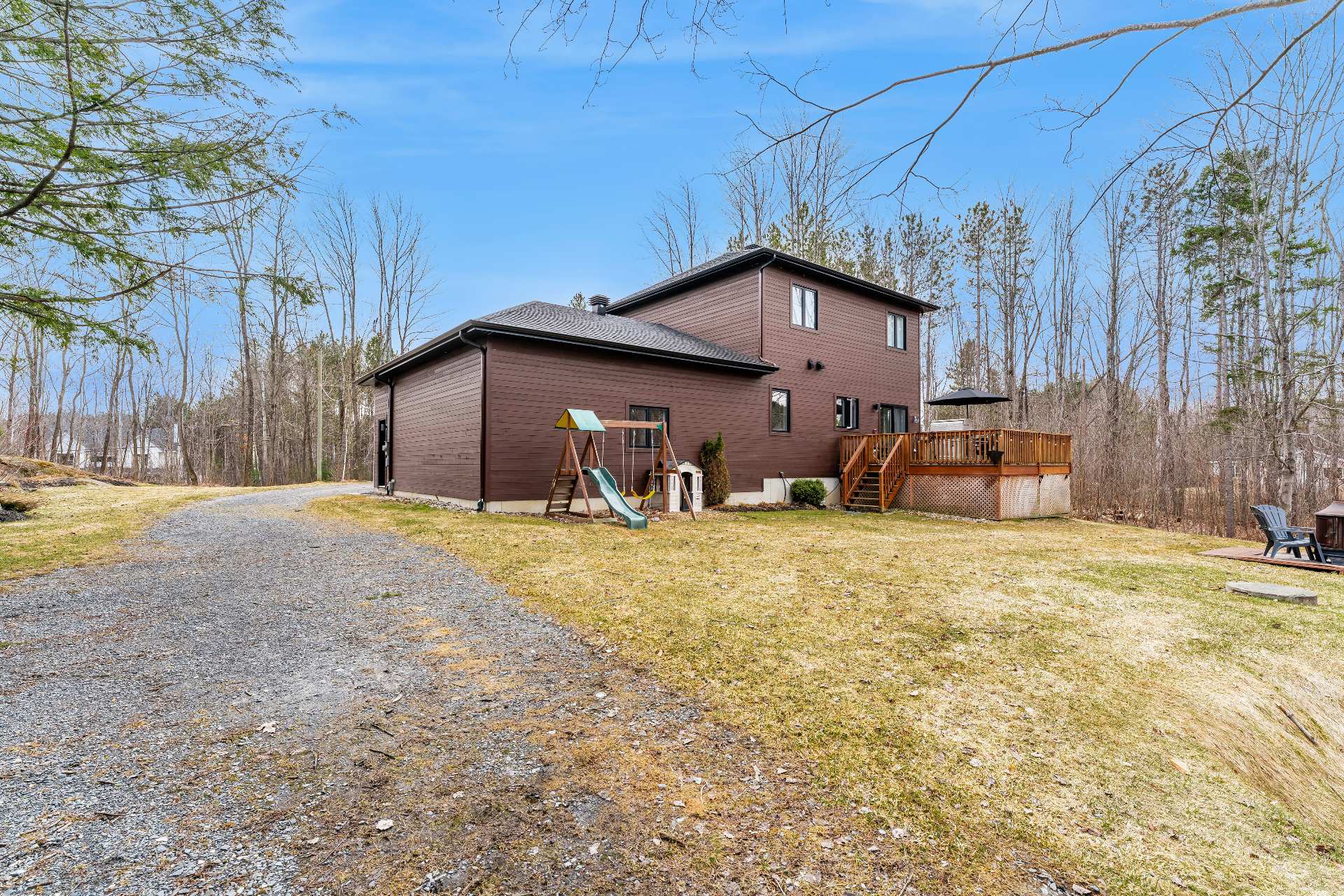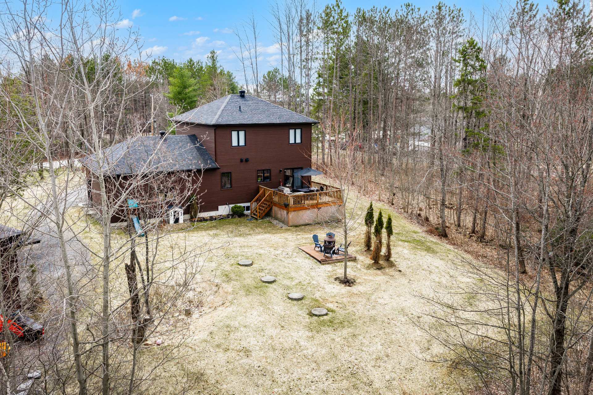 Implantée sur un vaste terrain boisé d'environ 38 900 pi², elle assure intimité et tranquillité dans un décor naturel attrayant. L'emplacement est particulièrement avantageux, à proximité des principaux axes routiers, facilitant les déplacements tout en conservant un cadre de vie paisible.