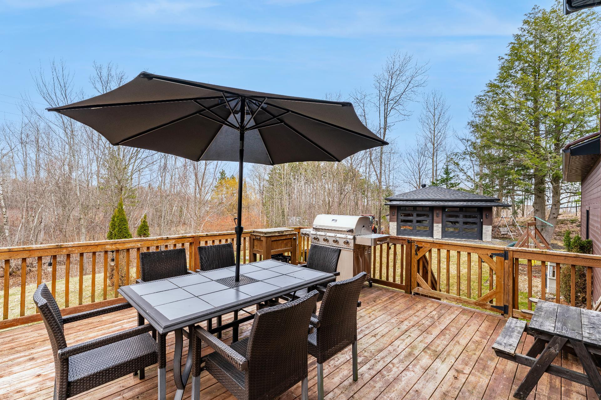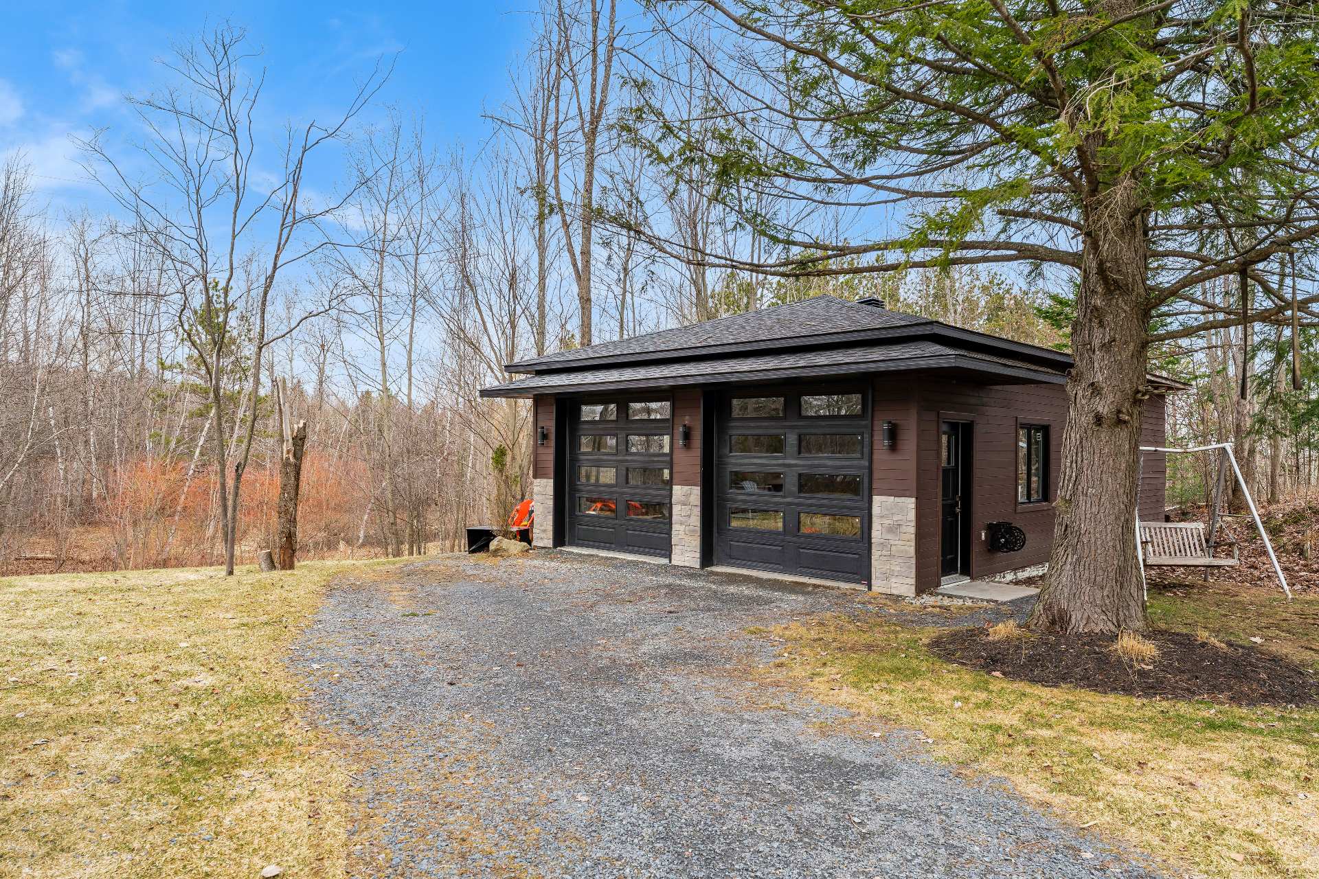 La propriété se distingue également par ses installations pratiques, incluant un garage double attaché, en plus d'un second garage double détaché, offrant de nombreuses possibilités pour le rangement, les véhicules ou les projets personnels.