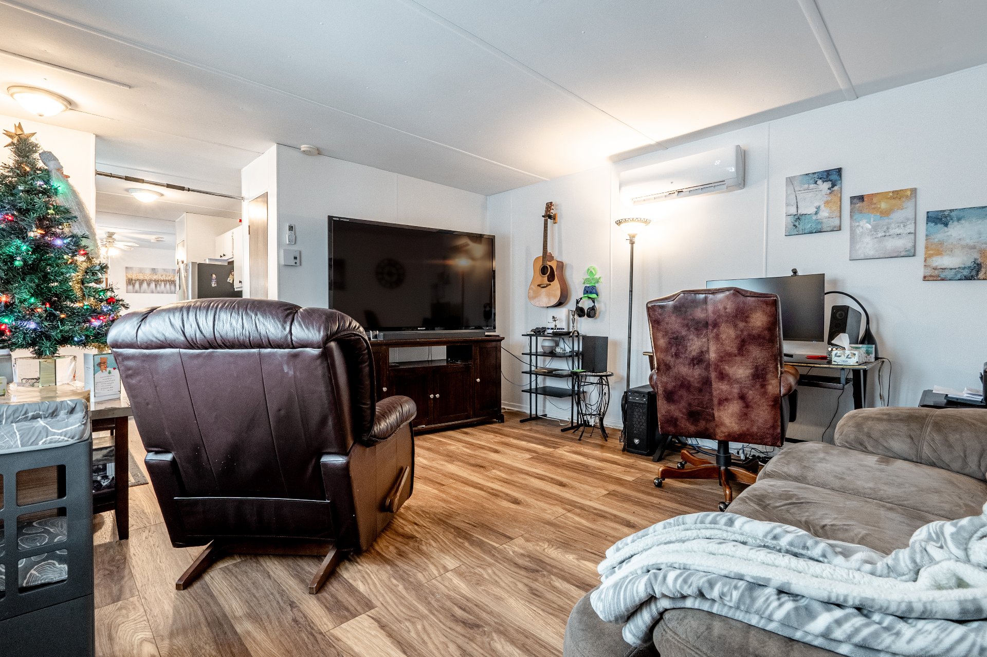 L'équipe se réjouit de vous présenter cette propriété idéale pour une famille ou un couple en quête d'un lieu de vie calme et privé. Cette maison mobile vous offre tout le confort dont vous avez besoin. Elle est située dans une rue en cul-de-sac, offrant ainsi tranquillité et sécurité, tout en étant à proximité de toutes les commodités.