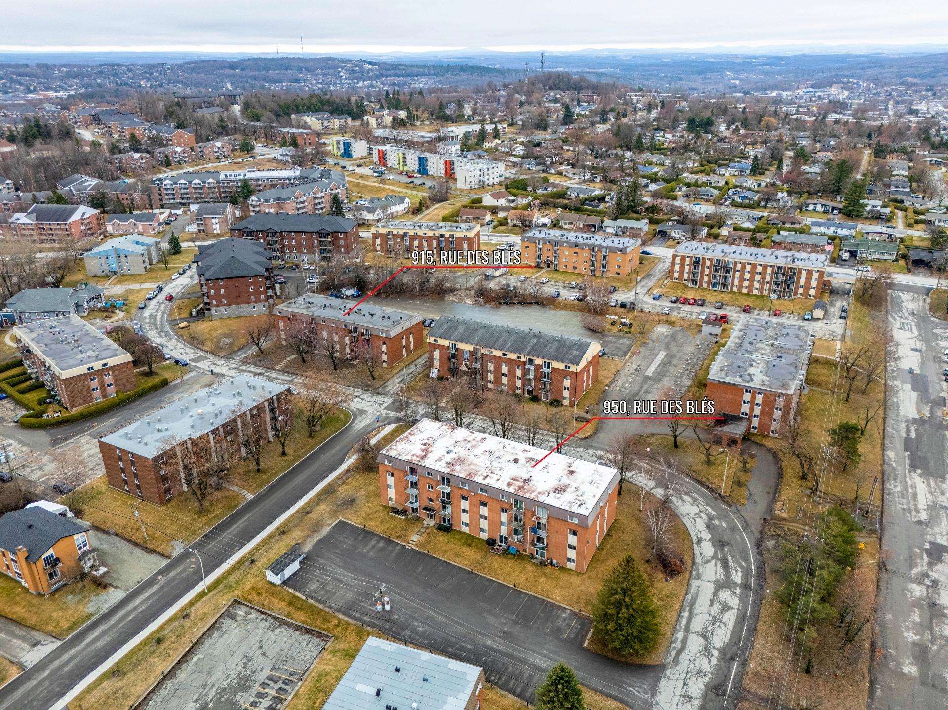 Rare opportunité d'acquérir un portefeuille de 64 logements regroupant les immeubles des 915 et 950 rue des Blés à Sherbrooke, arrondissement Fleurimont. Deux bâtiments de 32 unités chacun comprenant majoritairement des logements de type 4½, ainsi que plusieurs 3½, répondant à une demande locative soutenue. Idéalement situés dans un secteur en fort développement commercial et résidentiel à proximité du Centre hospitalier universitaire de Sherbrooke (CHUS), des services, transports et axes routiers. Une occasion stratégique à excellent potentiel de valorisation pour l'investisseur à la recherche d'un actif d'envergure dans un marché dynamique.