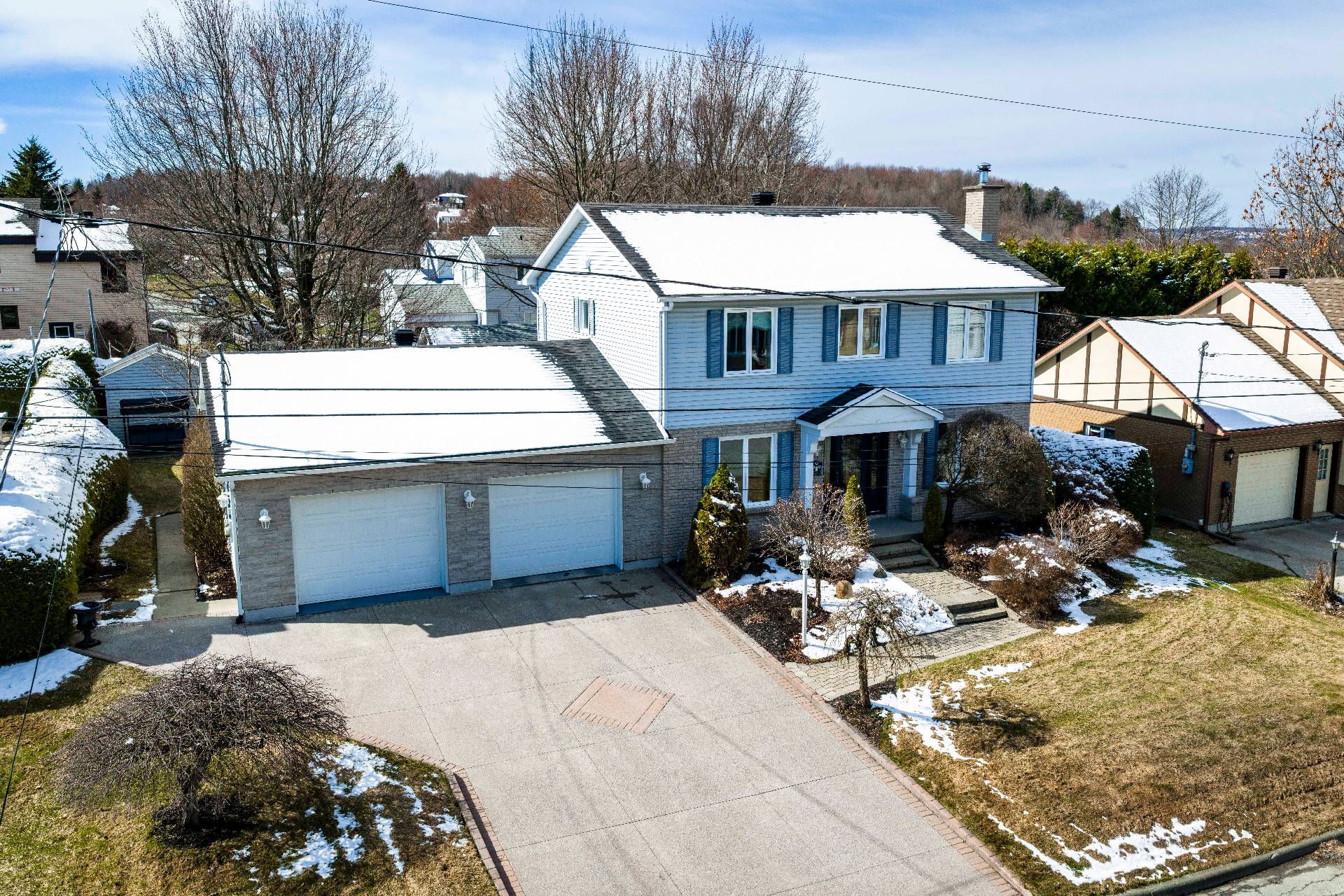 Grande propriété unifamiliale de 4 chambres, un bureau, une salle d'eau et 3 salles de bain située dans le secteur tranquille de Fleurimont. On y retrouve un design néo-traditionnel avec un grand garage double, un merveilleux aménagement paysagé et une cour extérieure exceptionnelle et intime. Un concept intérieur avec des accents de boiseries offre un effet chaleureux et libre. Cette propriété combine confort, intimité et convivialité à proximité de tous les services.