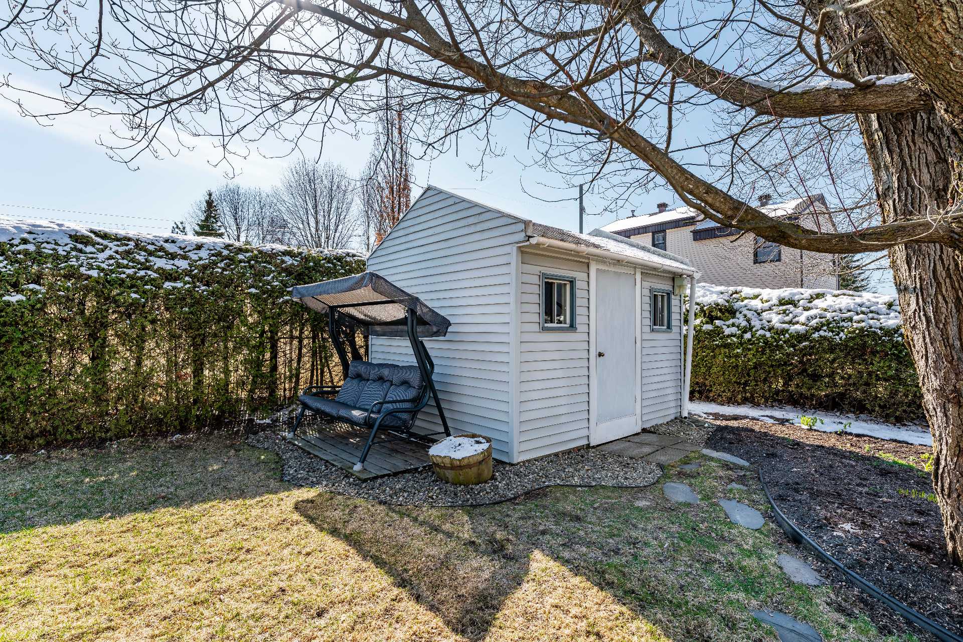 Terrain/cour bordé de haies, Paysager