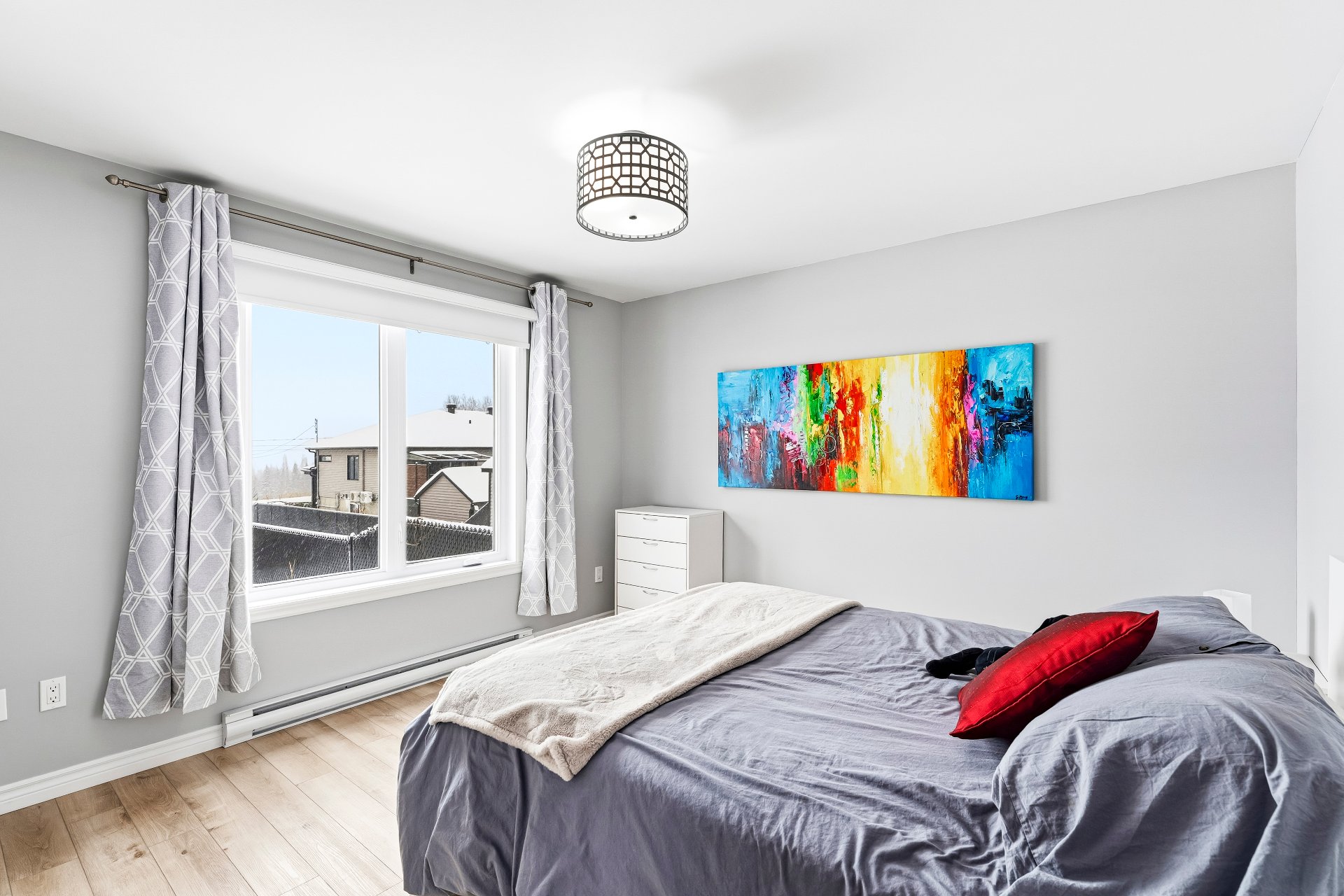 Magnifique maison jumelée construite en 2020, offrant 4 chambres à coucher et 2 salles de bains complètes, idéale pour un premier acheteur ou une jeune famille à la recherche d'un milieu de vie confortable et moderne. Aménagement intérieur*Rez-de-chaussée : deux chambres à coucher, une salle de bains complète ainsi qu'un espace de vie à aire ouverte regroupant cuisine, salle à manger et salon. L'ensemble est lumineux, fonctionnel et bien pensé pour la vie quotidienne.*Sous-sol : deux chambres supplémentaires, une salle de bains complète incluant les installations laveuse-sécheuse, ainsi qu'une vaste salle familiale offrant un espace polyvalent pour la détente ou les rassemblements. Aménagement extérieur*Galerie extérieure couverte, parfaite pour profiter de l'extérieur en toute saison et recevoir famille et amis.*Cour arrière intime, facile d'entretien. Autres atouts*Située dans un développement récent, sécuritaire et recherché;*Construction de qualité réalisée par Construction Lachance (2020);*Proximité des services, écoles, commerces et transports en commun. Cette propriété combine harmonieusement confort, espace et modernité, offrant un cadre de vie pratique et agréable pour toute la famille.