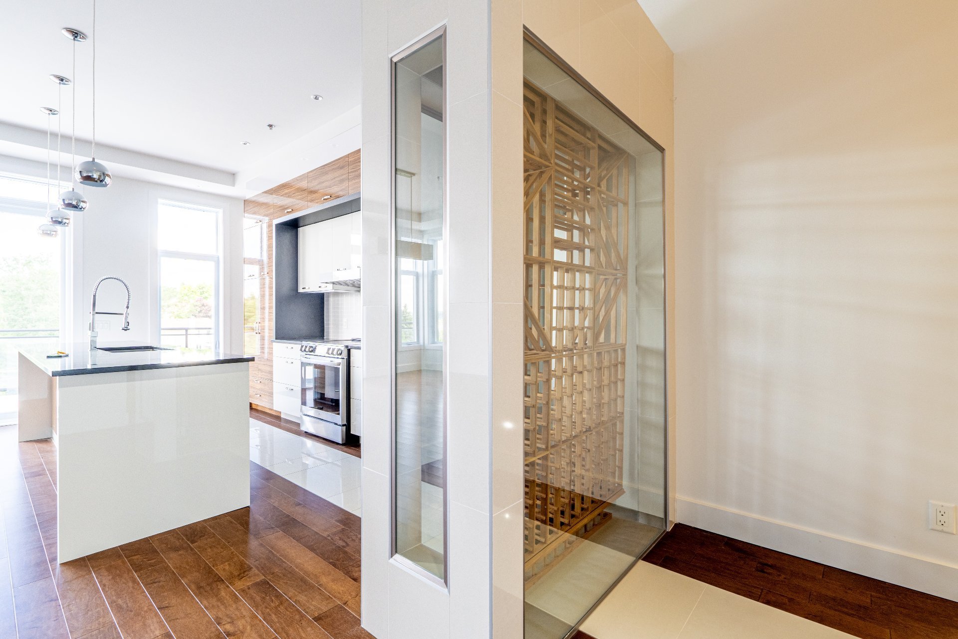 Dès votre arrivée, vous serez accueillis par un impressionnant cellier en verre, ajoutant une touche de luxe à l'entrée. Le vaste hall d'entrée est parfait pour accueillir famille et amis. Le salon, en aire ouverte avec la salle à manger et sa cheminée, ainsi que la cuisine avec comptoir de quartz avec une arrière-cuisine communicante et un accès à la galerie, offrent un espace généreux. La cuisine contemporaine se distingue par son immense îlot, son arrière-cuisine complète et sa fenestration abondante. L'unité est également entièrement munit de plancher chauffant afin d'assurer un confort absolu.