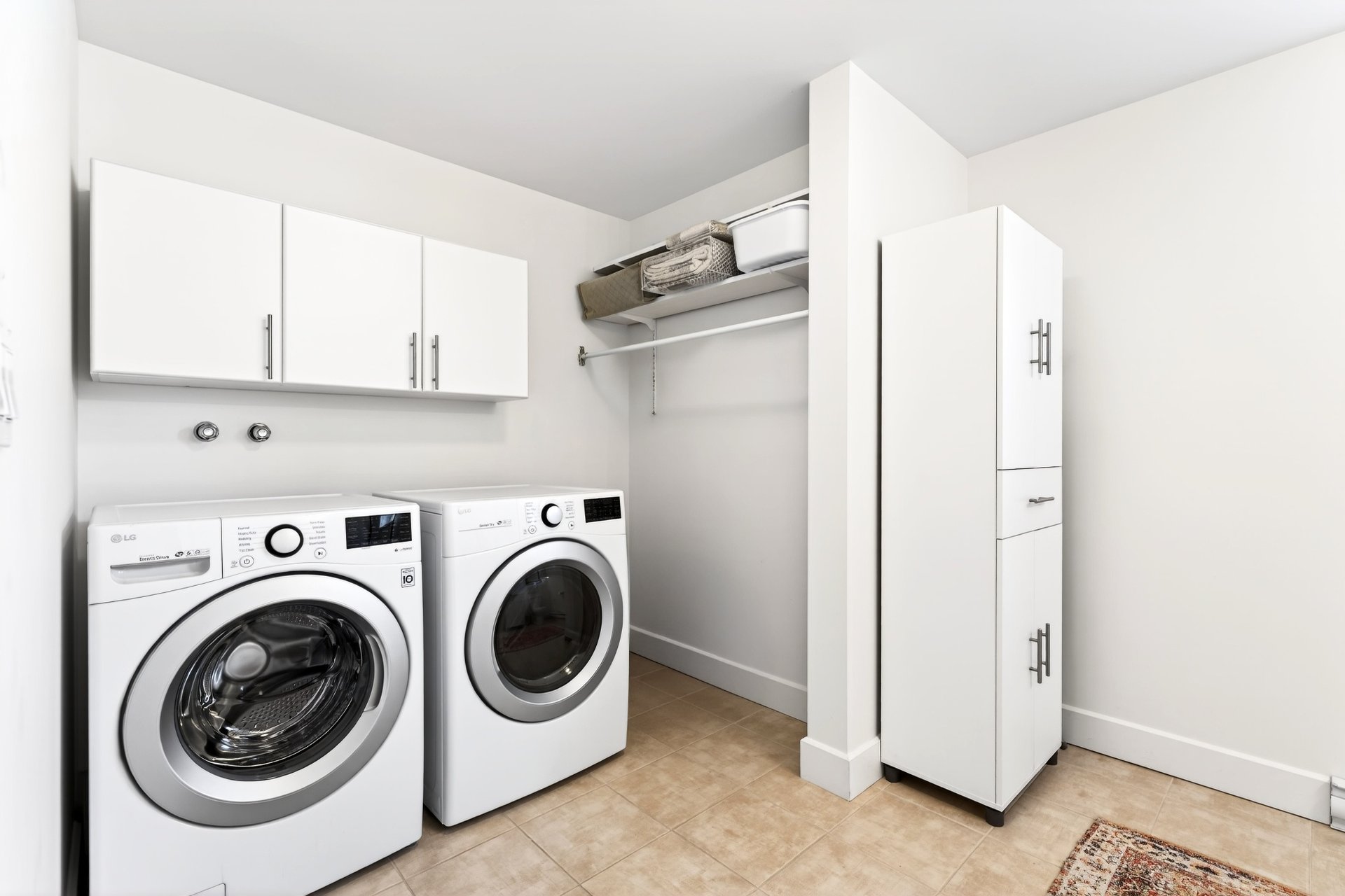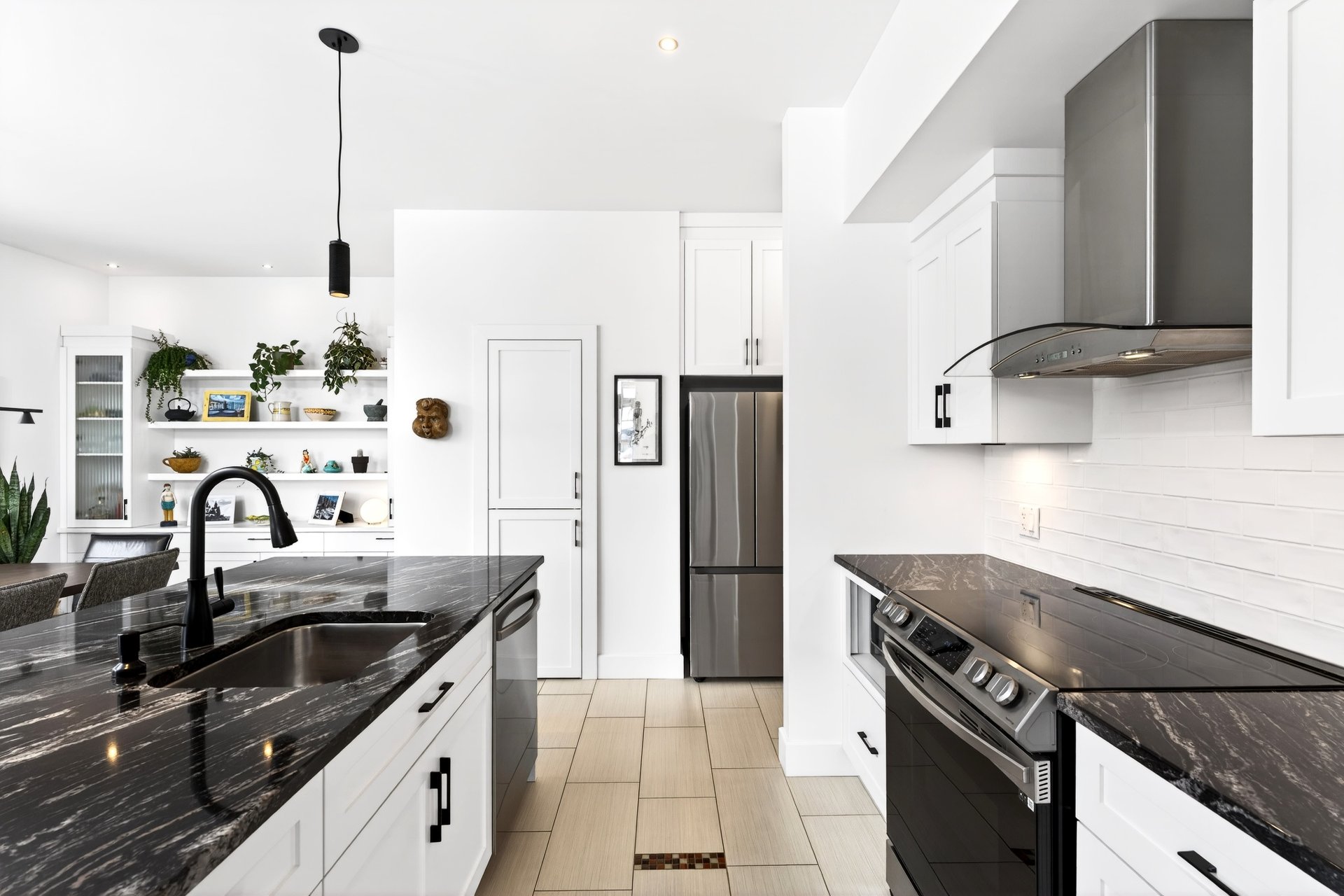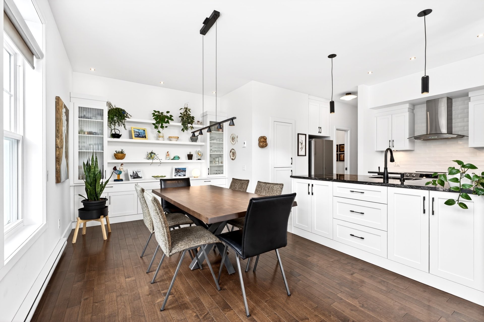 Luminaires, hotte de poêle, lave-vaisselle, échangeur d'air, stores, bacs municipaux, aspirateur central et accessoires, meuble sur mesure dans la salle à manger, rangement dans la salle de lavage, meuble de rangement dans le walk-in de la chambre principale, support à télévision du salon et support de télévision de la chambre principale.