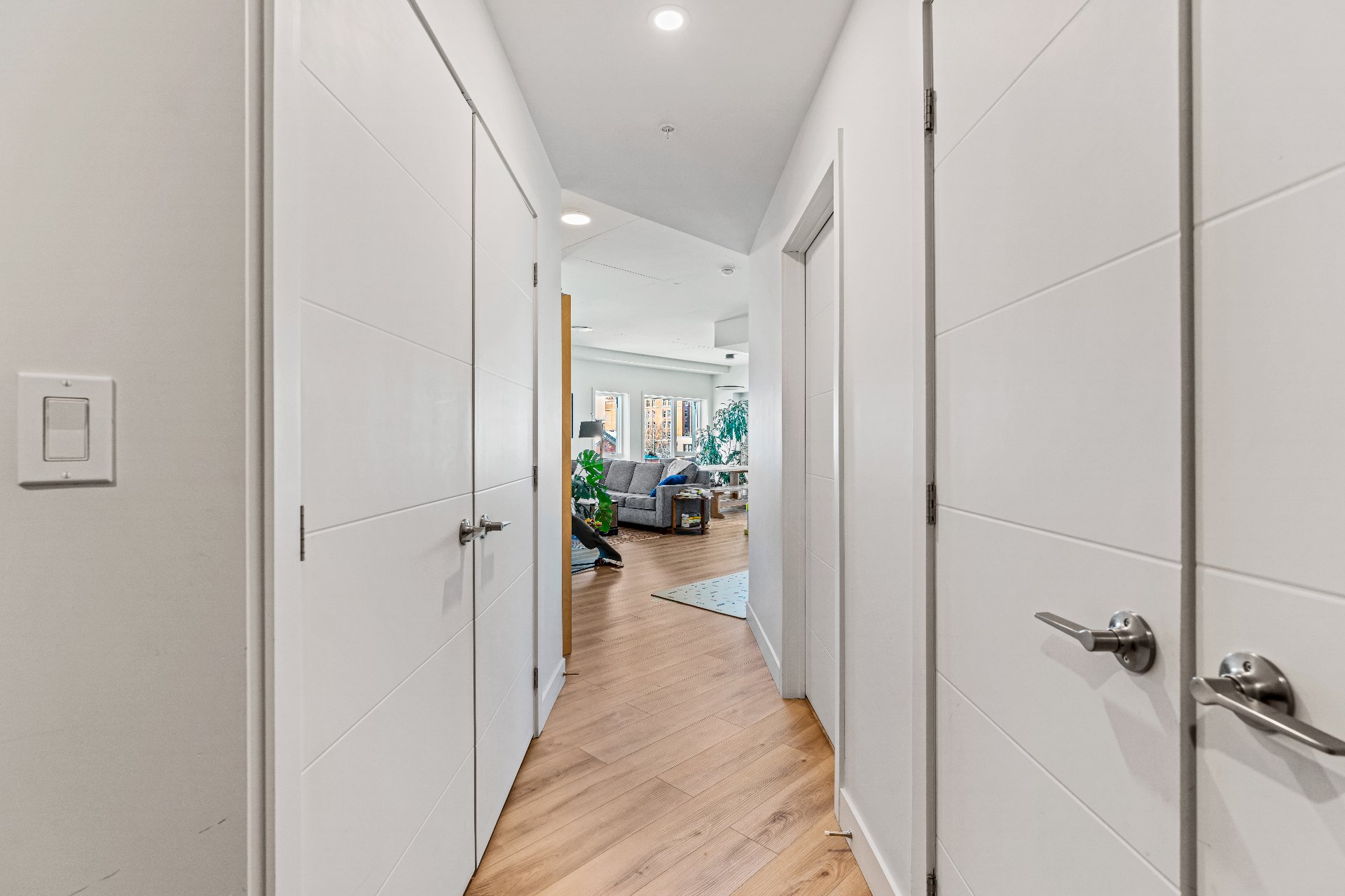 L'immeuble est sécurisé par des caméras, et les locataires ont accès à un stationnement intérieur (avec stationnement à vélos et bornes de recharge électriques), à un espace de rangement individuel (4x6 pieds), à une salle d'entraînement, une salle multifonctionnelle, une chute à déchets, ainsi qu'à deux ascenseurs dédiés exclusivement à leur usage.