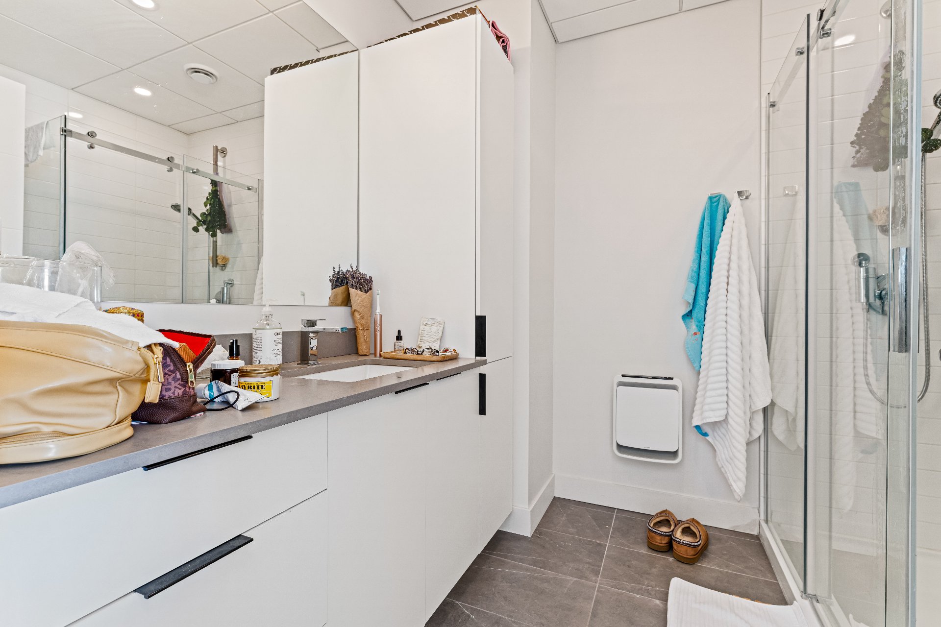 L'immeuble est sécurisé par des caméras, et les locataires ont accès à un stationnement intérieur (avec stationnement à vélos et bornes de recharge électriques), à un espace de rangement individuel (4x6 pieds), à une salle d'entraînement, une salle multifonctionnelle, une chute à déchets, ainsi qu'à deux ascenseurs dédiés exclusivement à leur usage.