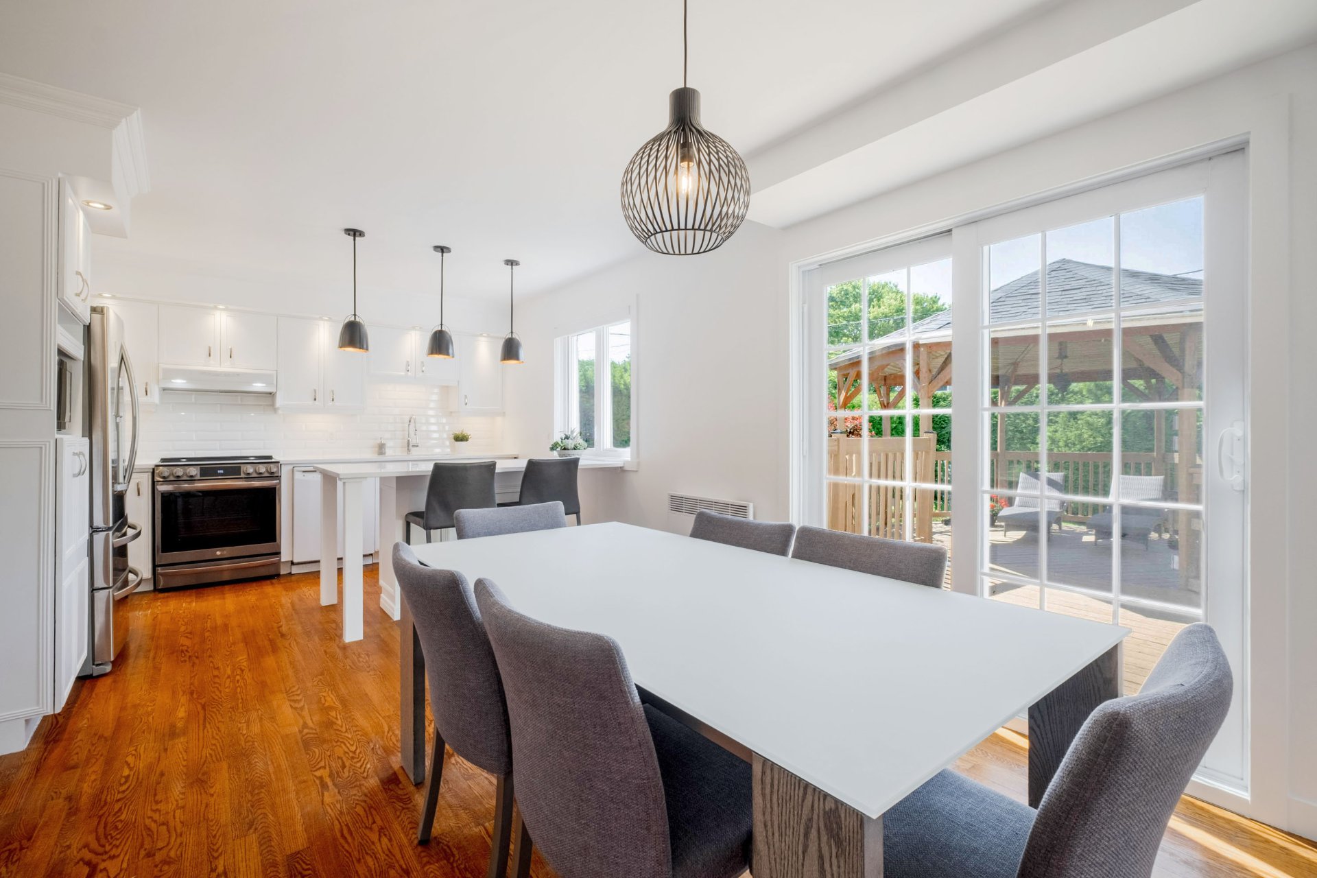 Située face au Golf de Sherbrooke, cette propriété de 3 chambres et 2 salles de bain combine élégance, confort et intimité. La cuisine moderne, baignée de lumière, séduit par son îlot central et ses nombreux espaces de rangement, idéale pour les passionnés de cuisine. À l'étage, la chambre des maîtres spacieuse offre un mur d'accent en bois, deux garde-robes et un accès à une salle de bain complète, créant un espace chaleureux et fonctionnel.