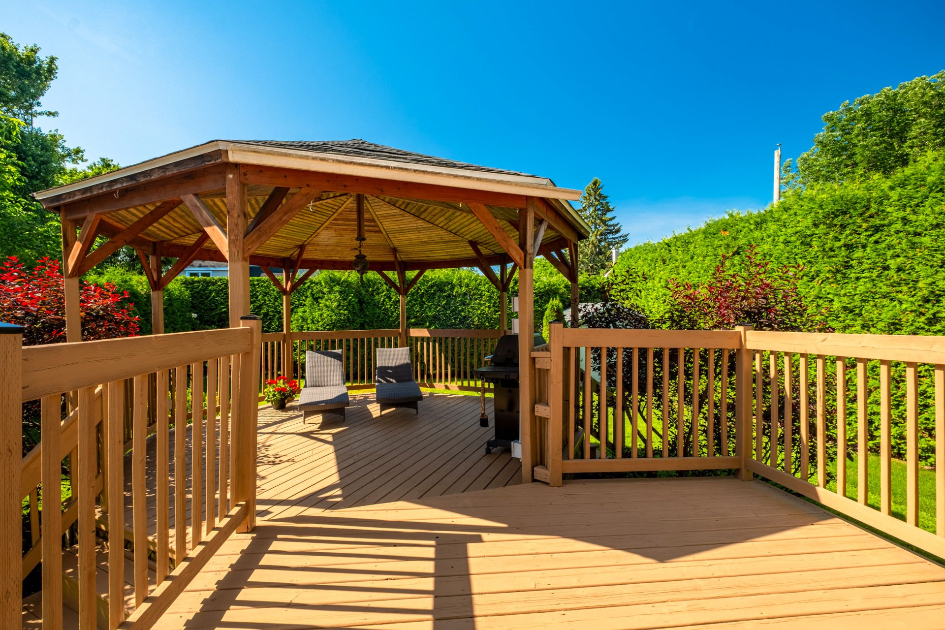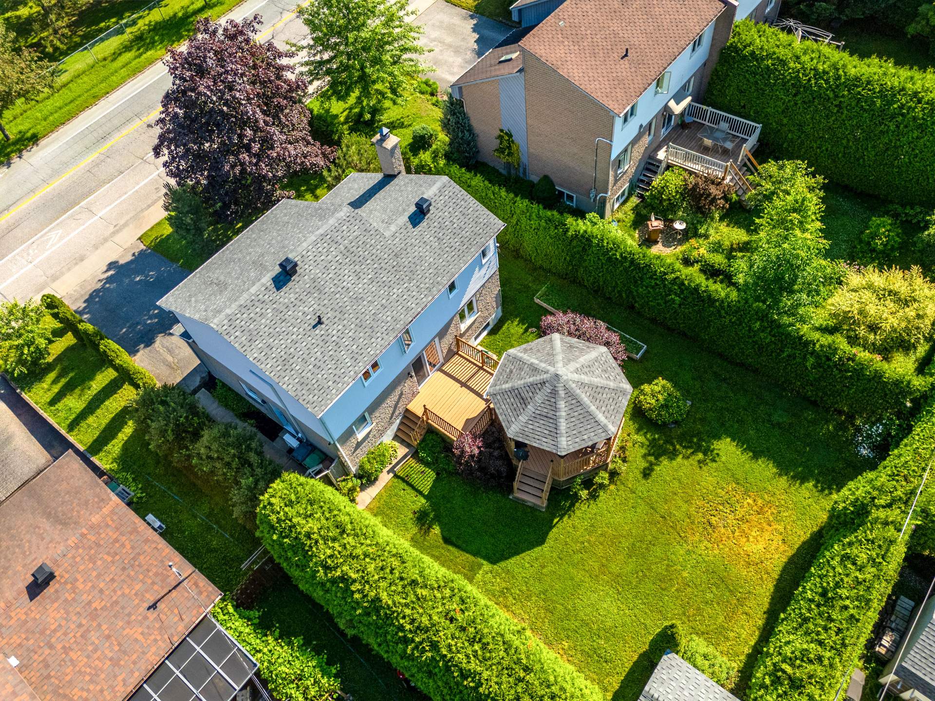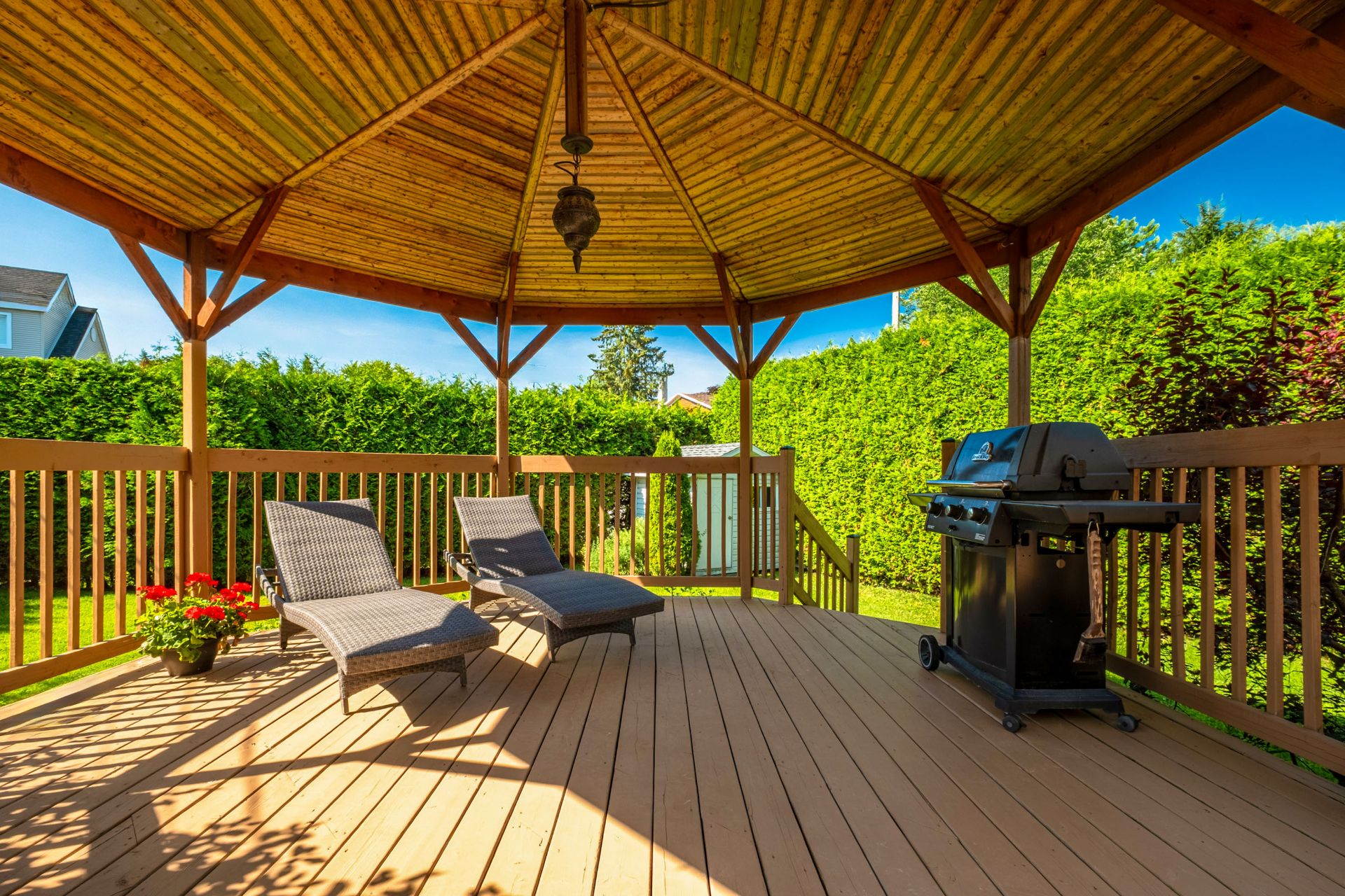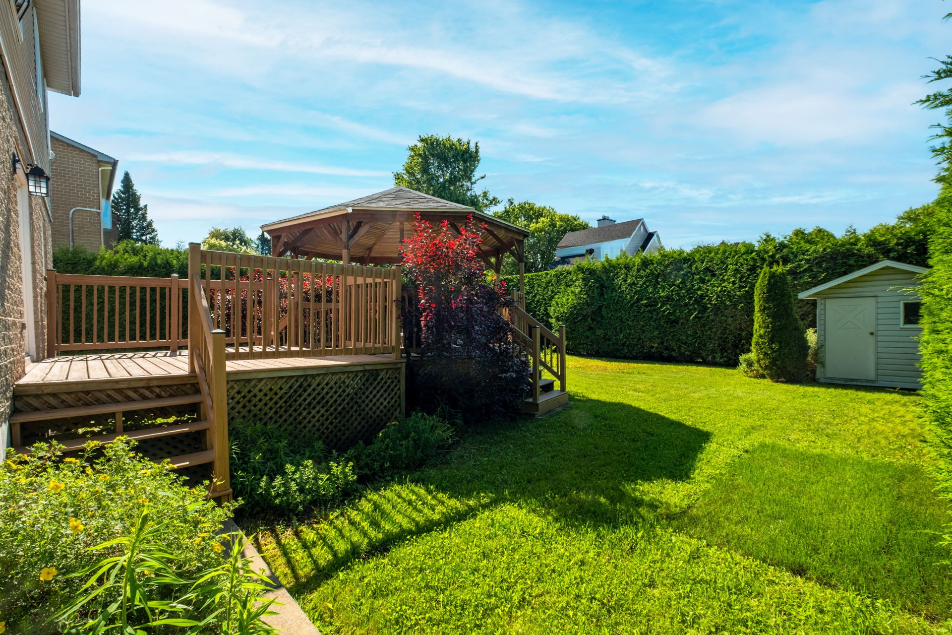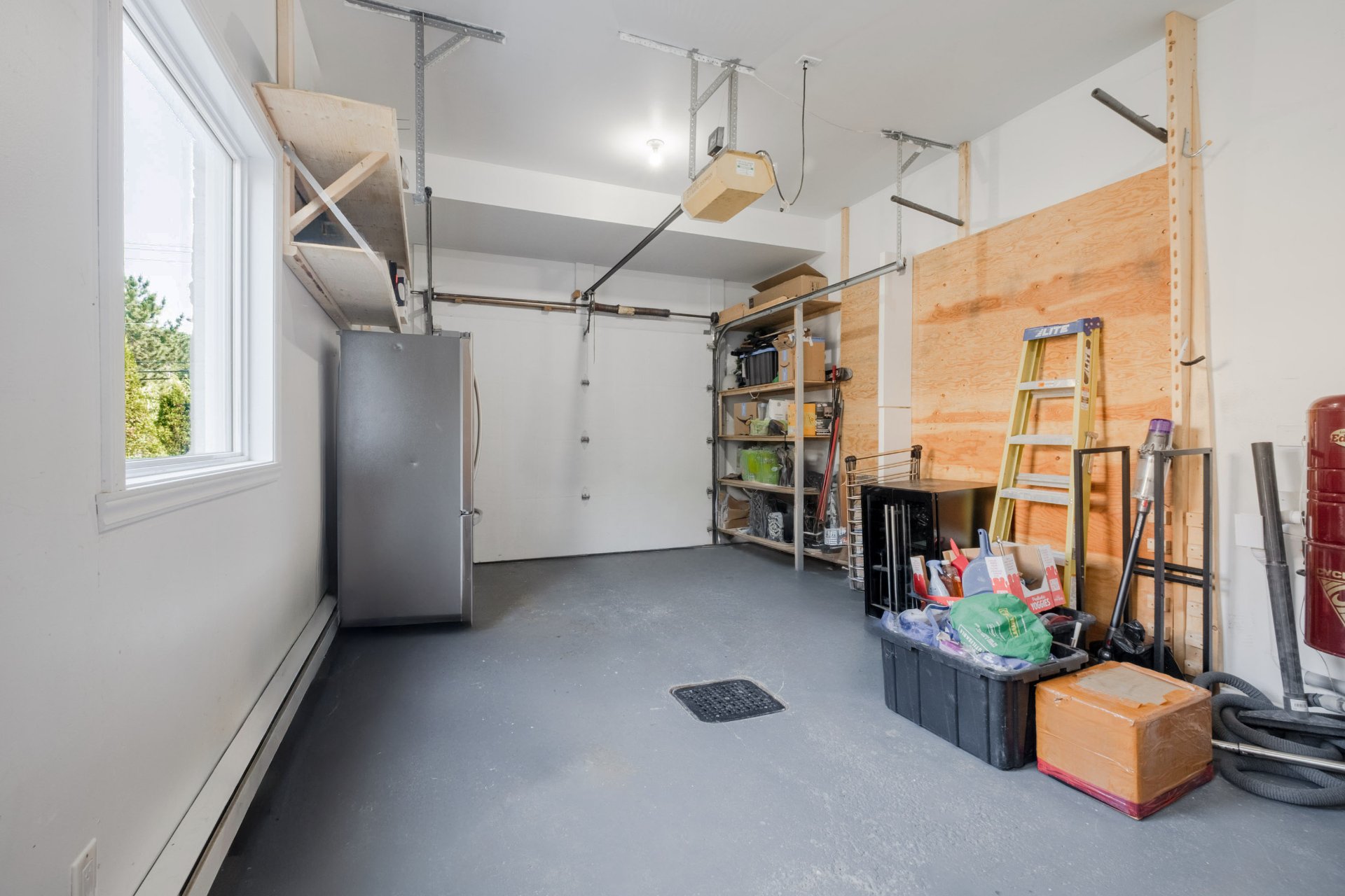 Luminaires, lave-vaisselle, aspirateur central et ses accessoires, stores, thermopompe murale, gazébo, remise.