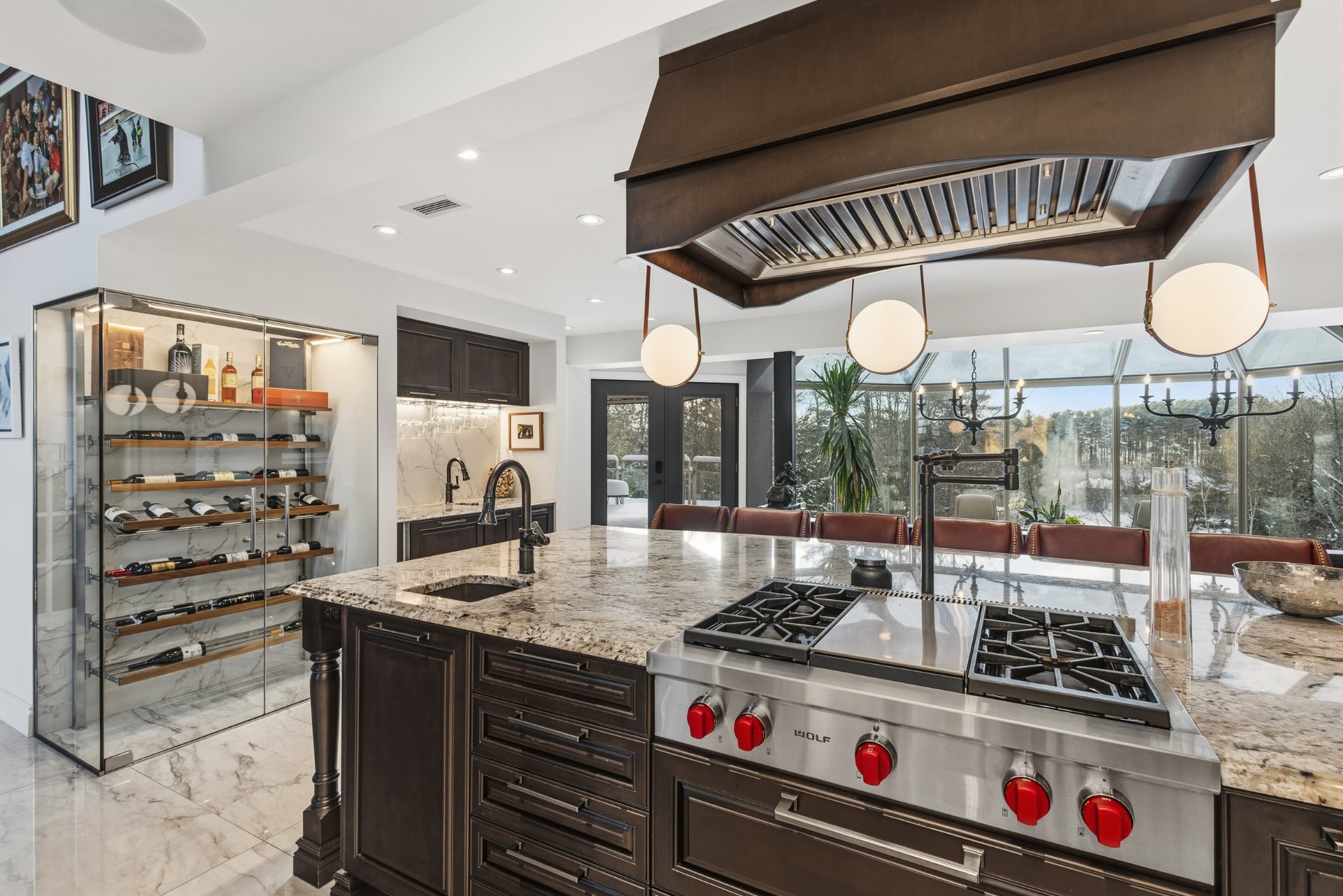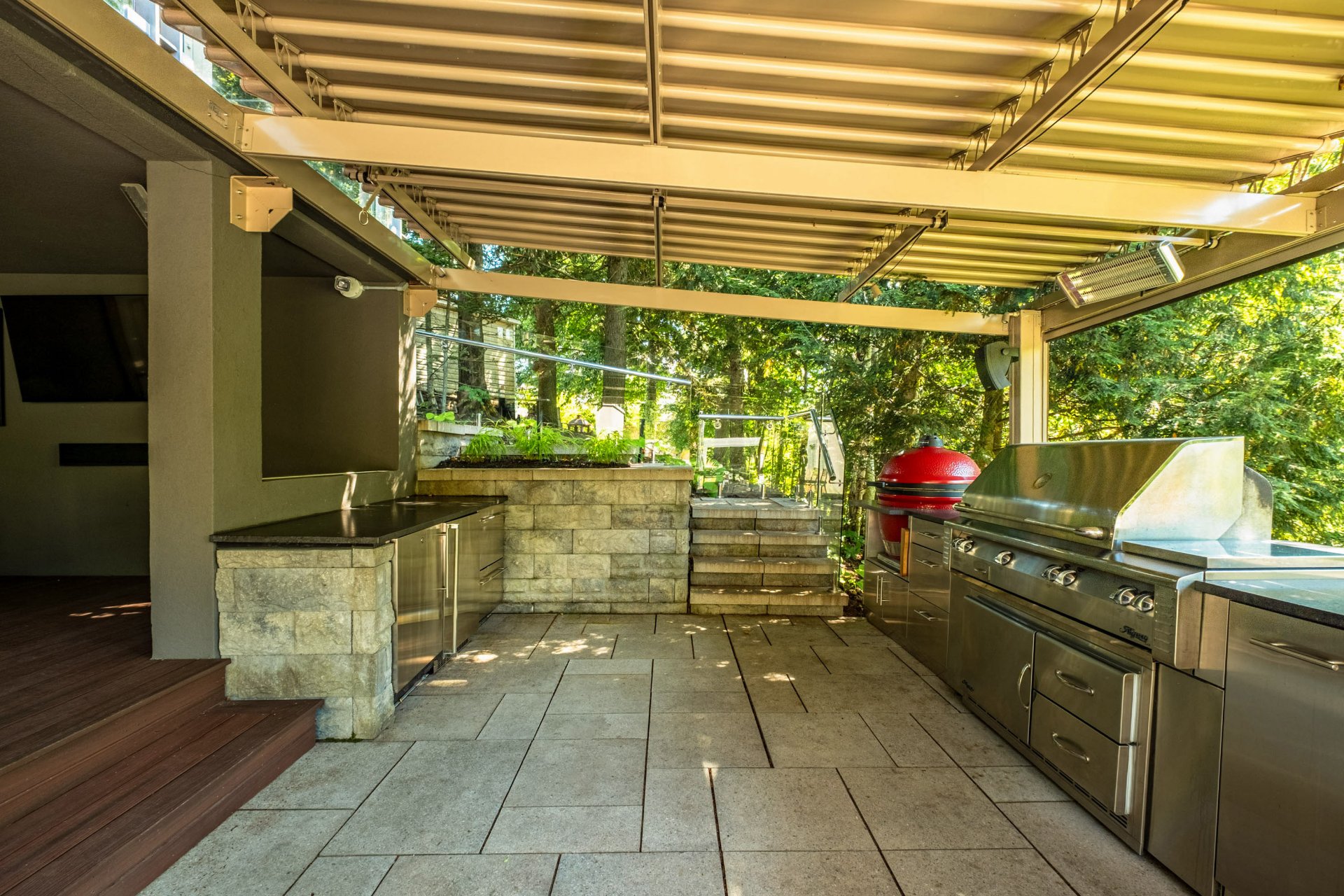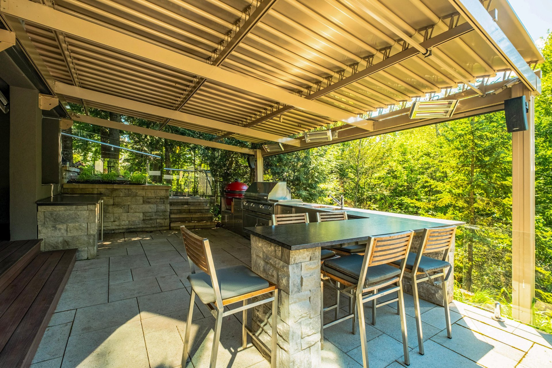 Luminaires, stores, plaque cuisson, hotte, 2lave-vaisselle, réfrigérateur, tirroirs réfrigérer/congélateur, four, micro-ondes, cellier de cuisine, table/chaises(s/manger), bancs de l'îlot, aspirateur central et acc., lav.-sécheuse, haut parleur, système domotique maison, support pour bouteilles de vins du cellier au s.-sol. EXTÉRIEUR; gazébos, chauffes terrasse, réfrigérateur, BBQ, fumoir, congélateur, tiroirs réfrigérés, lave-vaisselle, bancs de l'îlot, thermopompe et acc. piscine.