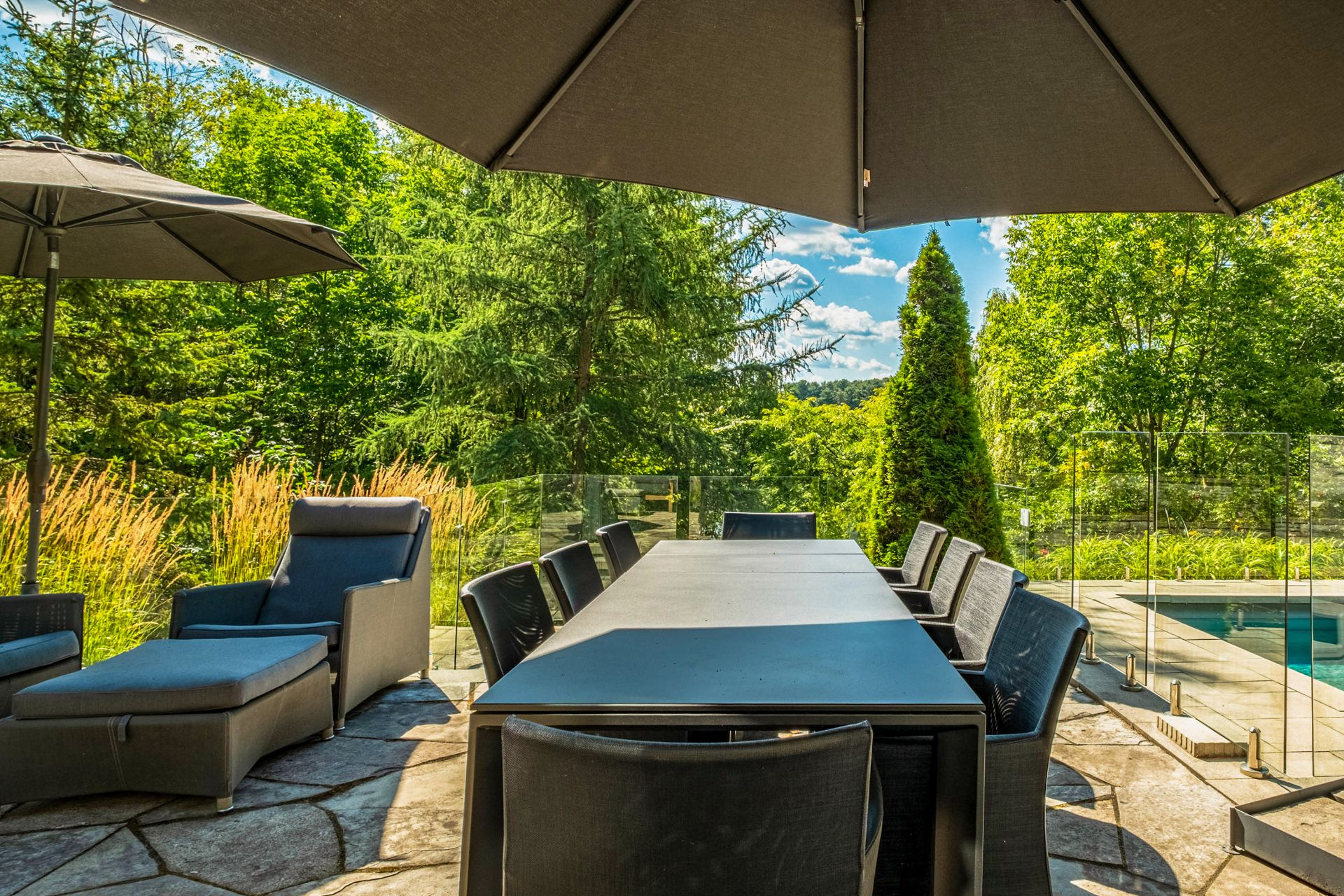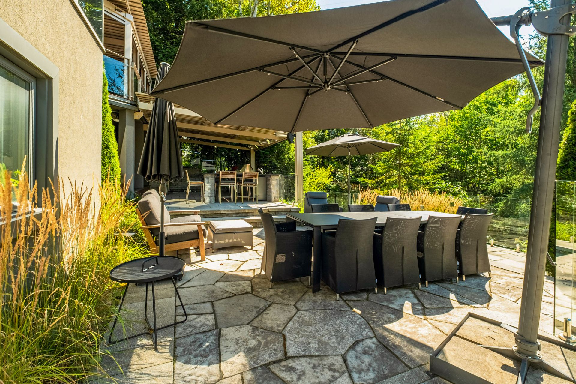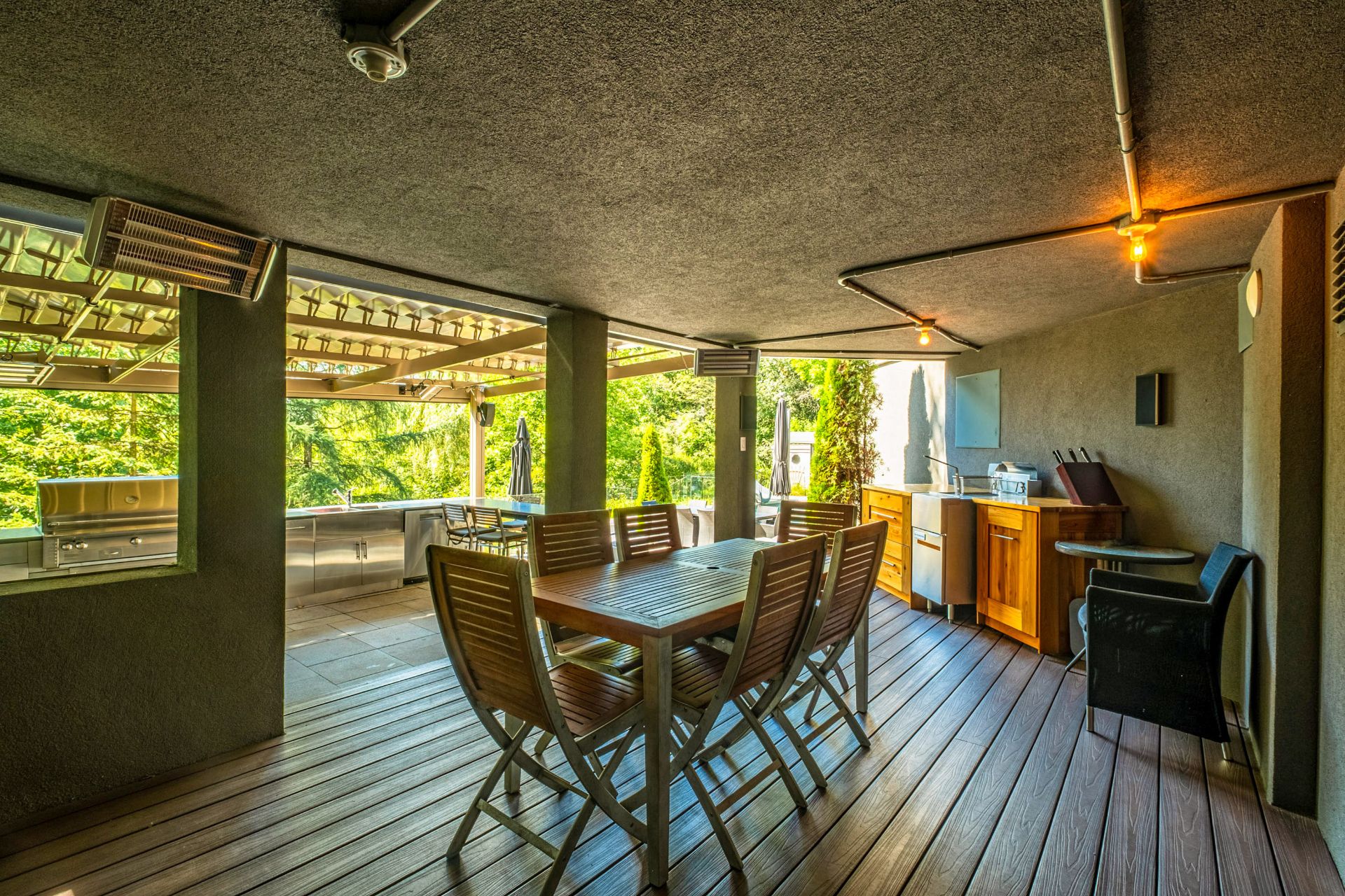 Luminaires, stores, plaque cuisson, hotte, 2lave-vaisselle, réfrigérateur, tirroirs réfrigérer/congélateur, four, micro-ondes, cellier de cuisine, table/chaises(s/manger), bancs de l'îlot, aspirateur central et acc., lav.-sécheuse, haut parleur, système domotique maison, support pour bouteilles de vins du cellier au s.-sol. EXTÉRIEUR; gazébos, chauffes terrasse, réfrigérateur, BBQ, fumoir, congélateur, tiroirs réfrigérés, lave-vaisselle, bancs de l'îlot, thermopompe et acc. piscine.