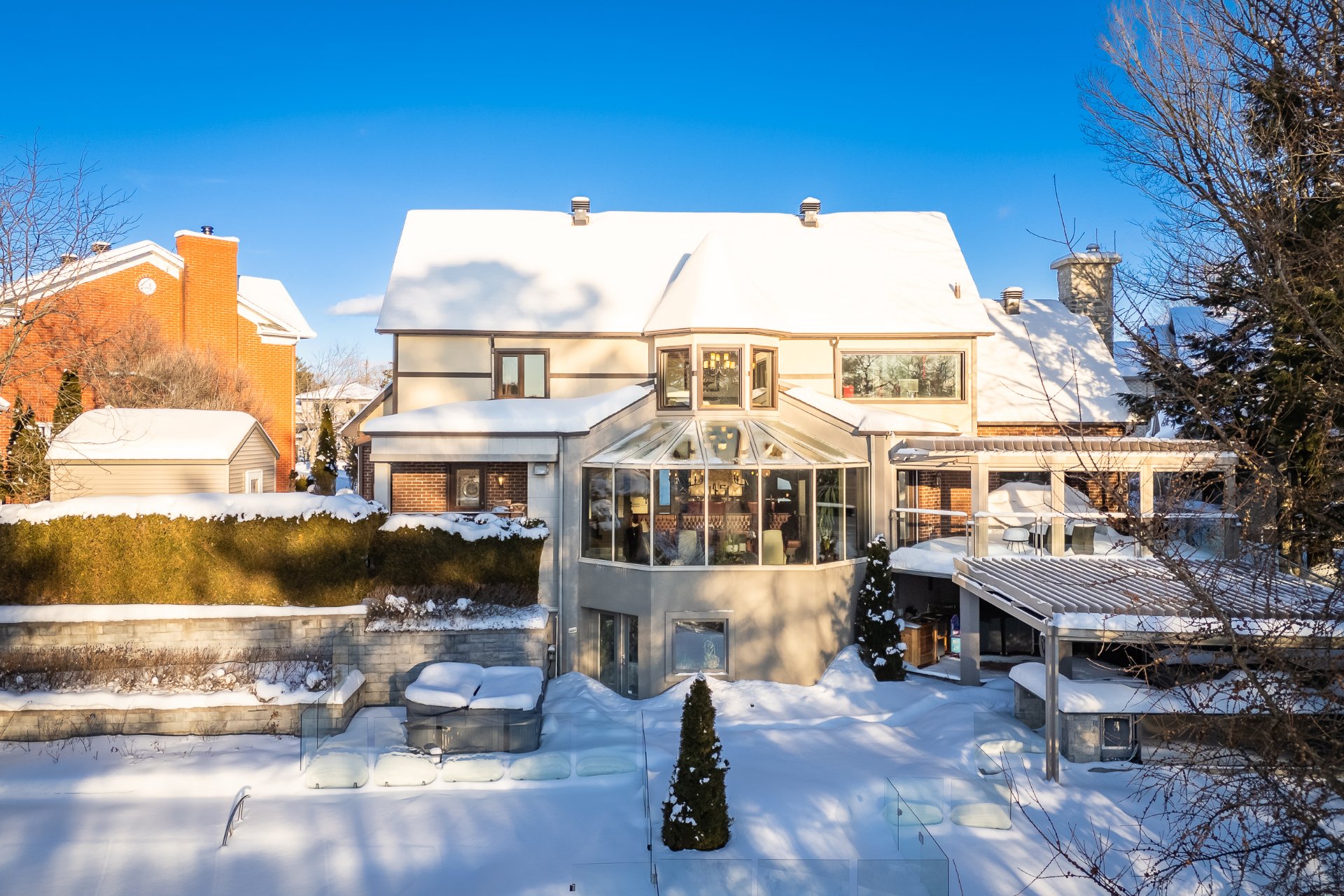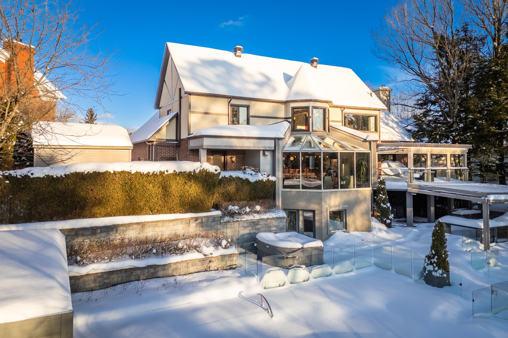Vivez le luxe au bord de la rivière Magog dans cette demeure Tudor d'exception entièrement restaurée avec des matériaux nobles. Située dans l'un des quartiers les plus prisés, elle offre 4 chambres, parmi lesquelles de distingue une somptueuse suite des maîtres avec walk-in ainsi que 3 salles de bains complètes dont une attenante à la suite des maîtres. La cuisine pensée pour les réceptions, avec son arrière-cuisine, les vastes espaces de vie, le garage double digne d'une salle de montre, la piscine creusée et les terrasses à paliers multiples avec cuisine d'été font de cette propriété un joyau unique alliant prestige et raffinement.