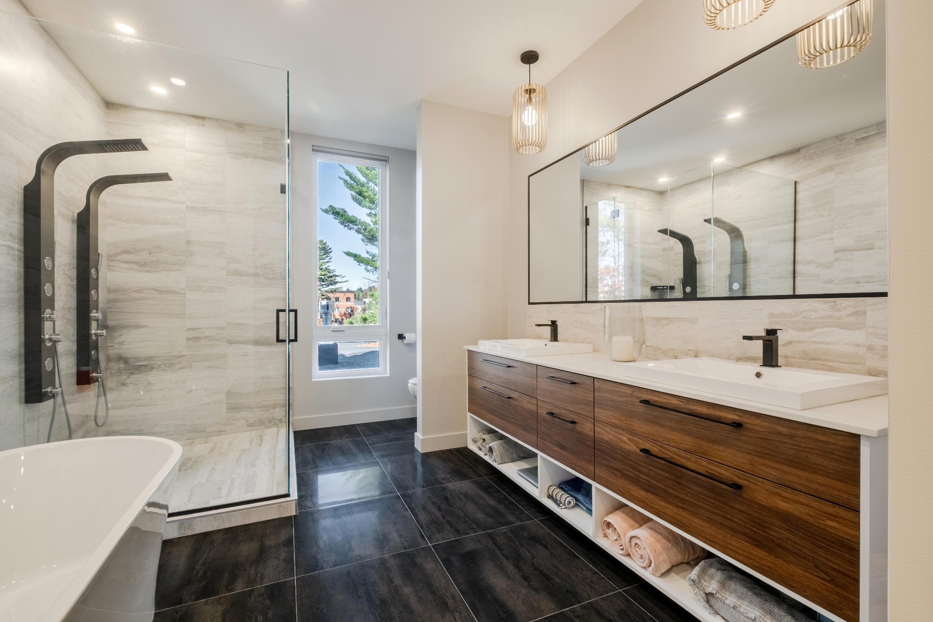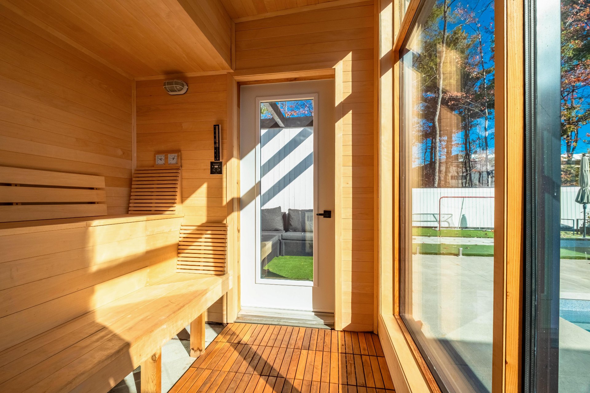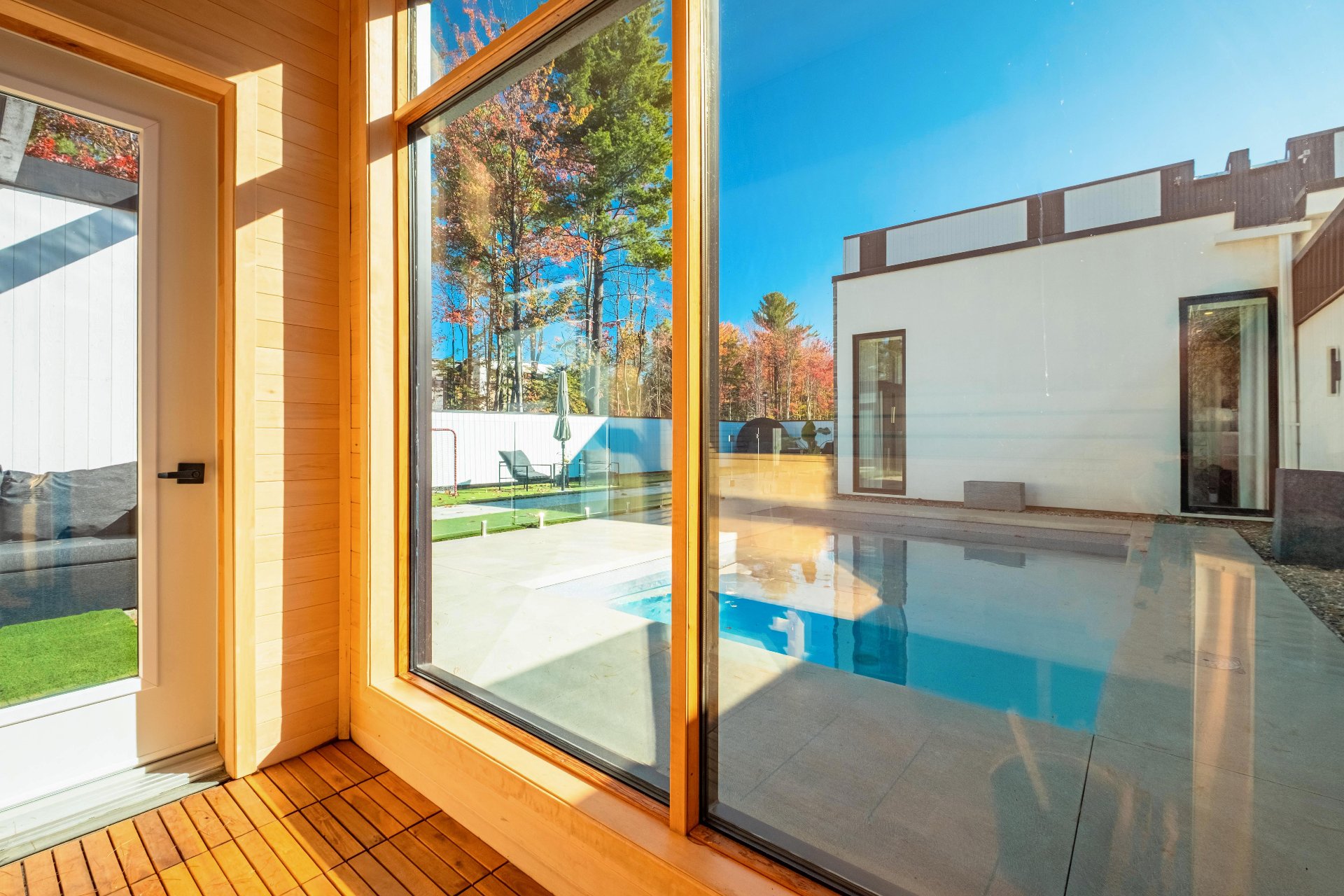 Situé dans le secteur nord de Sherbrooke, ce jumelé haut de gamme propose 3 chambres et 2 salles de bains complètes, dont une somptueuse suite des maîtres avec immense walk-in et salle de bains moderne dotée d'une douche double, d'une baignoire autoportante et d'un meuble double vasque. Le rez-de-chaussée se distingue par son vaste cellier-bar, sa cuisine avec îlot, électroménagers encastrés et arrière-cuisine, ainsi que son salon chaleureux avec foyer et coin lecture. À l'extérieur, une cour intime et impressionnante accueille une piscine creusée, un sauna et des espaces verts, le tout sans voisin à l'arrière pour une tranquillité absolue.