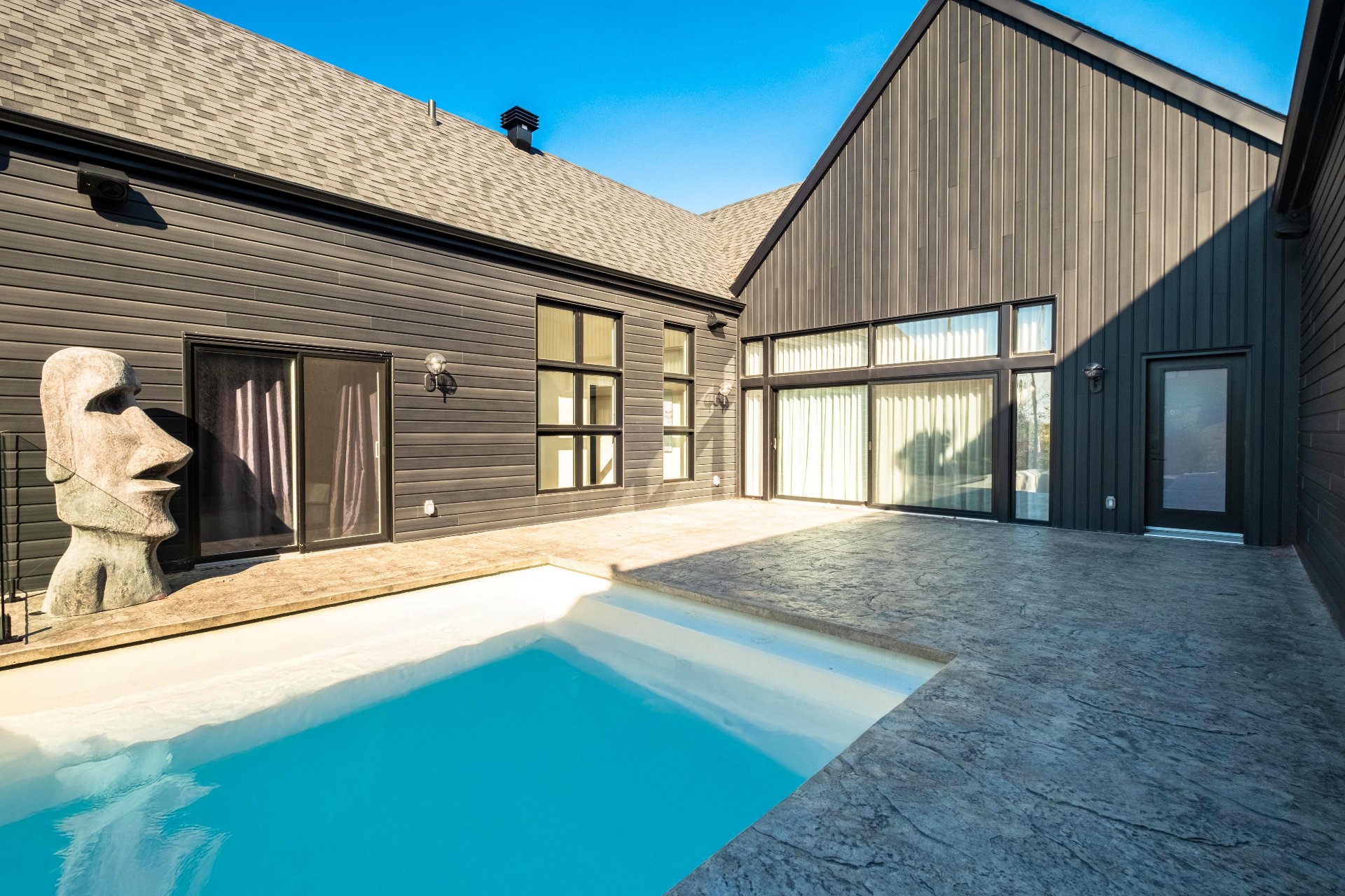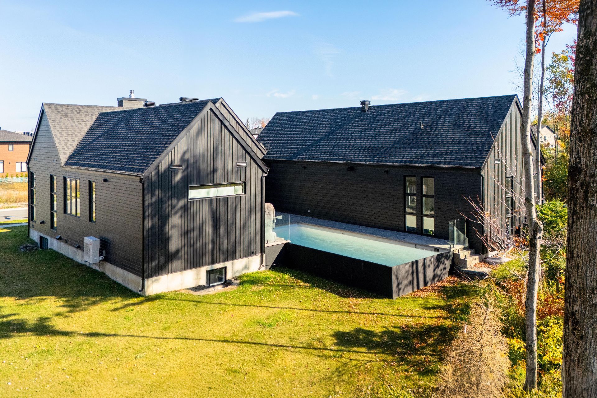 À l'extérieur, le terrain propose une vaste aire de stationnement ainsi qu'une piscine semi-creusée, élégamment aménagée entre les deux pavillons de la propriété, créant une intimité rare et recherchée.