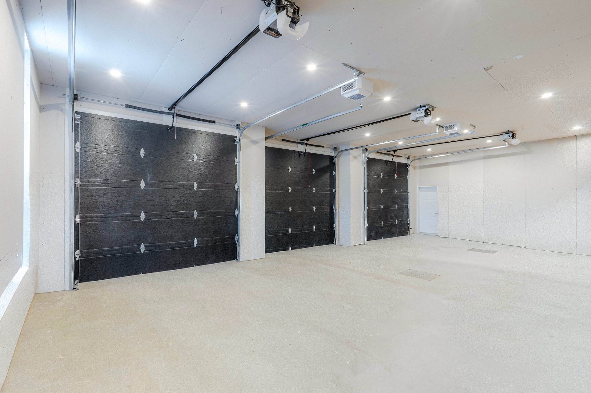 La salle de bains principale se distingue par sa douche italienne double, sa baignoire indépendante et ses éviers doubles. Une chambre avec petit walk-in, une chambre transformée en penderie de type boutique, une salle d'eau, un espace de lavage et un accès direct au garage complètent l'étage. Une section du rez-de-chaussée avec entrée indépendante propose également un espace bureau entièrement indépendant, parfait pour un professionnel.