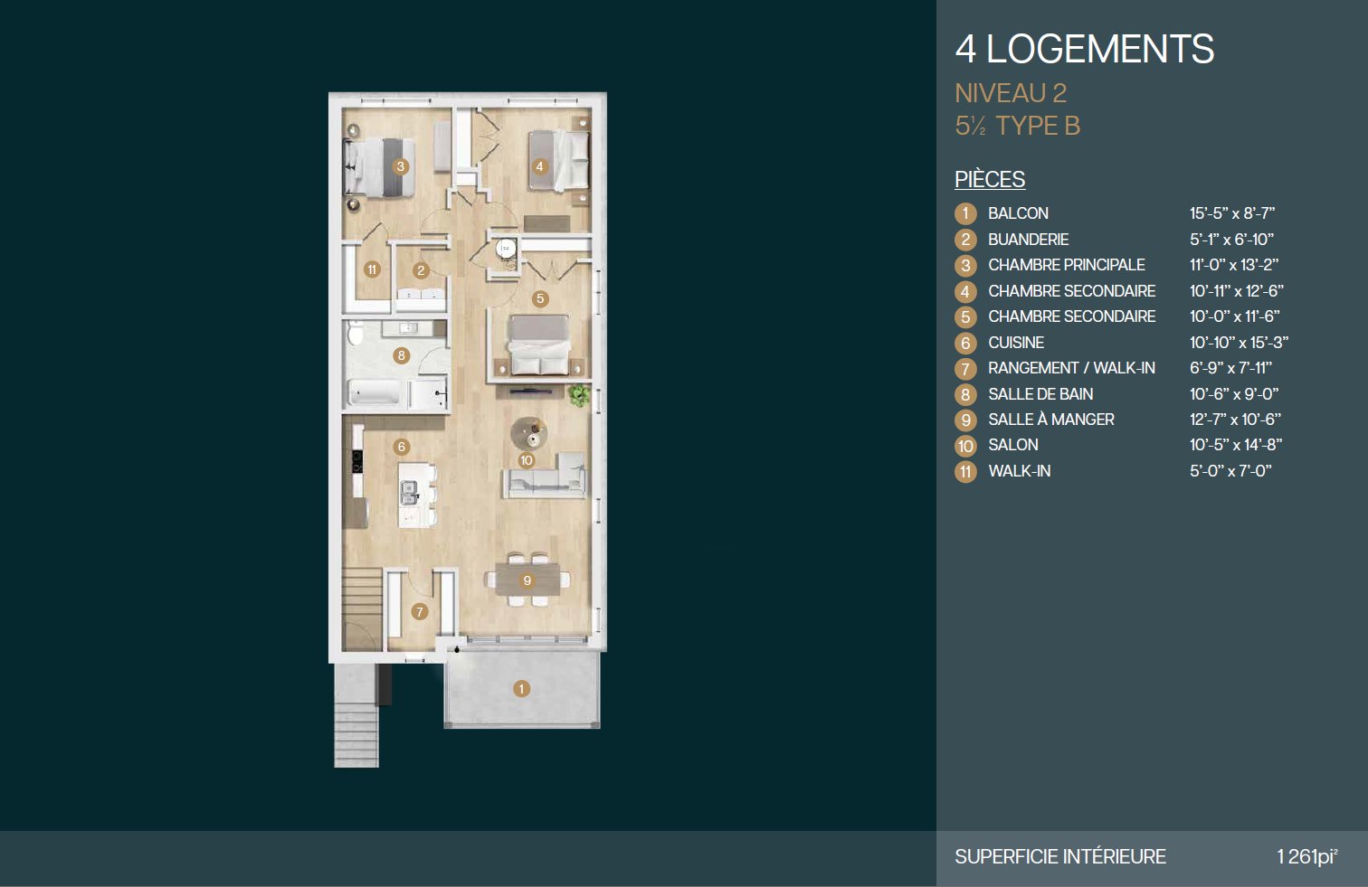 Chaque unité propose 3 chambres, une salle de bains complète, une thermopompe murale pour un confort optimal en toute saison, ainsi qu'une grande terrasse, ajoutant une valeur appréciable pour les locataires. Le style contemporain des logements et la qualité de construction en font un produit attrayant sur le marché locatif.