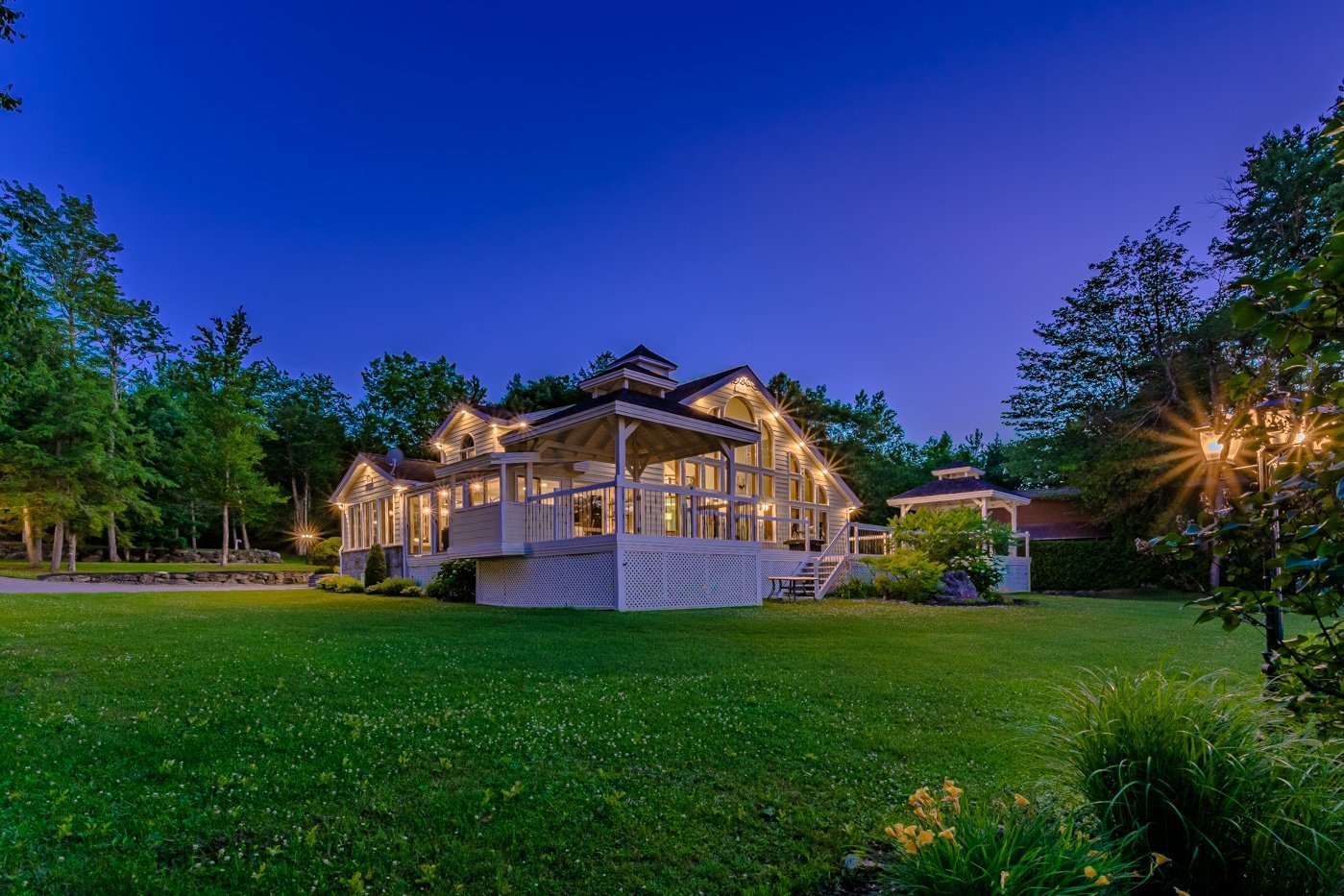L'Équipe est enchantée de vous présenter cette somptueuse demeure de prestige située au bord du lac Elgin en Estrie. Dès votre arrivée devant cette résidence majestueuse, vous serez immédiatement séduit par son architecture raffinée et sa situation privilégiée. Les grandes fenêtres encadrent à merveille la vue panoramique sur l'eau sereine et tranquille du lac, créant ainsi une atmosphère apaisante et un lien étroit avec la nature environnante. À l'intérieur, vous découvrirez des espaces spacieux conçus avec élégance. Les pièces sont baignées de lumière naturelle grâce aux nombreuses fenêtres. Le hall d'entrée invitant présente au fond le grand salon avec plafond cathédrale de 19'. La cuisine de luxe est un chef-d'oeuvre en soi, équipée d'appareils haut de gamme, de comptoirs en granit et d'un îlot central qui deviendra le coeur de vos réunions familiales et amicales. Une vaste salle à manger adjacente à la cuisine mène à une grande verrière. Au même niveau, la suite privée des maîtres est un véritable havre de paix. Son boudoir attenant et ses finitions haut de gamme créent une atmosphère luxueuse et sereine, où vous pourrez vous détendre et vous ressourcer en toute tranquillité. La salle de bains attenante est un véritable sanctuaire, avec des installations modernes, une baignoire profonde, 2 douches et un cabinet de toilette privé avec bidet. Vous trouverez également au rez-de-chaussée un second hall d'entrée, une 2e salle de bains complète et une salle de lavage indépendante. Lorsque vous montez les escaliers, vous êtes accueilli par une mezzanine spacieuse surplombant le salon créant ainsi une impression d'espace ouvert. Aménagez l'endroit selon vos envies : coin lecture, bureau ou même en salle de jeux pour les enfants. La salle familiale adjacente propose un foyer au gaz et s'avère être l'endroit idéal pour se détendre en famille ou pour recevoir des invités. 2 chambres confortables et une salle de bain luxueuse complètent l'étage, offrant des espaces de repos privés pour les membres de votre famille ou vos invités. L'extérieur de cette maison ne fait pas exception à son allure impressionnante. La verrière vous permet de profiter de la vue sur le lac en toutes saisons, tandis que le grand patio offre un espace idéal pour les repas en plein air et les soirées entre amis. L'allée en pavé uni mène à un garage triple, offrant amplement d'espace pour vos véhicules et vos équipements. De plus, un garage détaché vous permet de créer un espace de rangement supplémentaire. Au bord de l'eau vous attendent 177' linéaire, un magnifique aménagement paysager, une descente à bateau, un quai et une petite plage. Détails techniques: - 2 unités de fournaise (5 tonnes) - 3 thermolec - entrée électrique 600 amp. Cette magnifique propriété fut construite au coût de 2.4 millions. Vente sans garantie légale de qualité, aux risques et périls de l'acheteur. Consommation d'électricité estimée pour un an (taxes incluses) par Hydro-Québec.