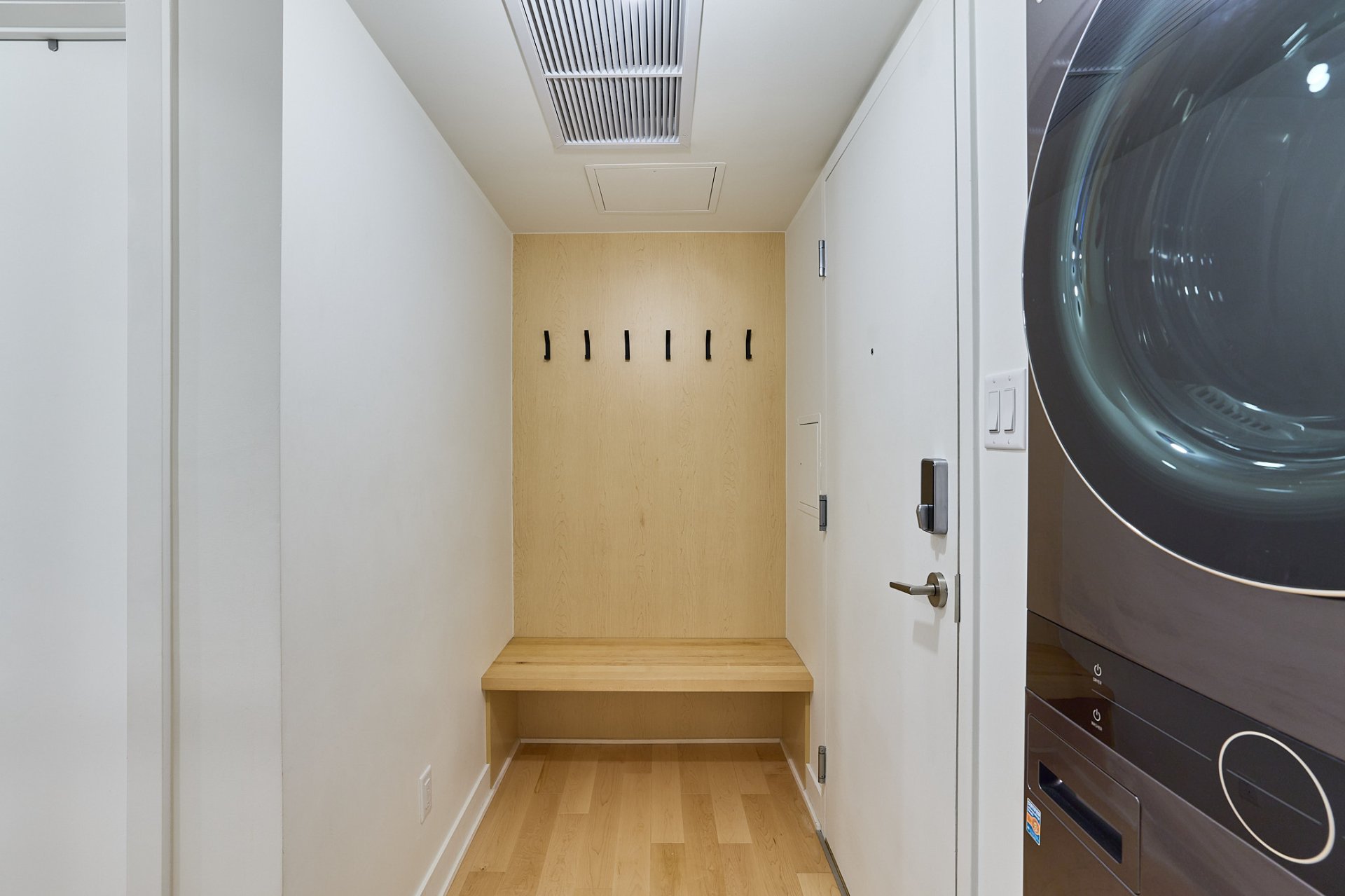 L'unité comprend deux chambres spacieuses, une cuisine contemporaine avec électroménagers haut de gamme, un espace de vie à aire ouverte ainsi que deux salles de bains élégantes. Le tout décoré avec goût et minutie, prêt à accueillir un occupant immédiatement, il ne vous reste qu'à apporter vos effets personnels.