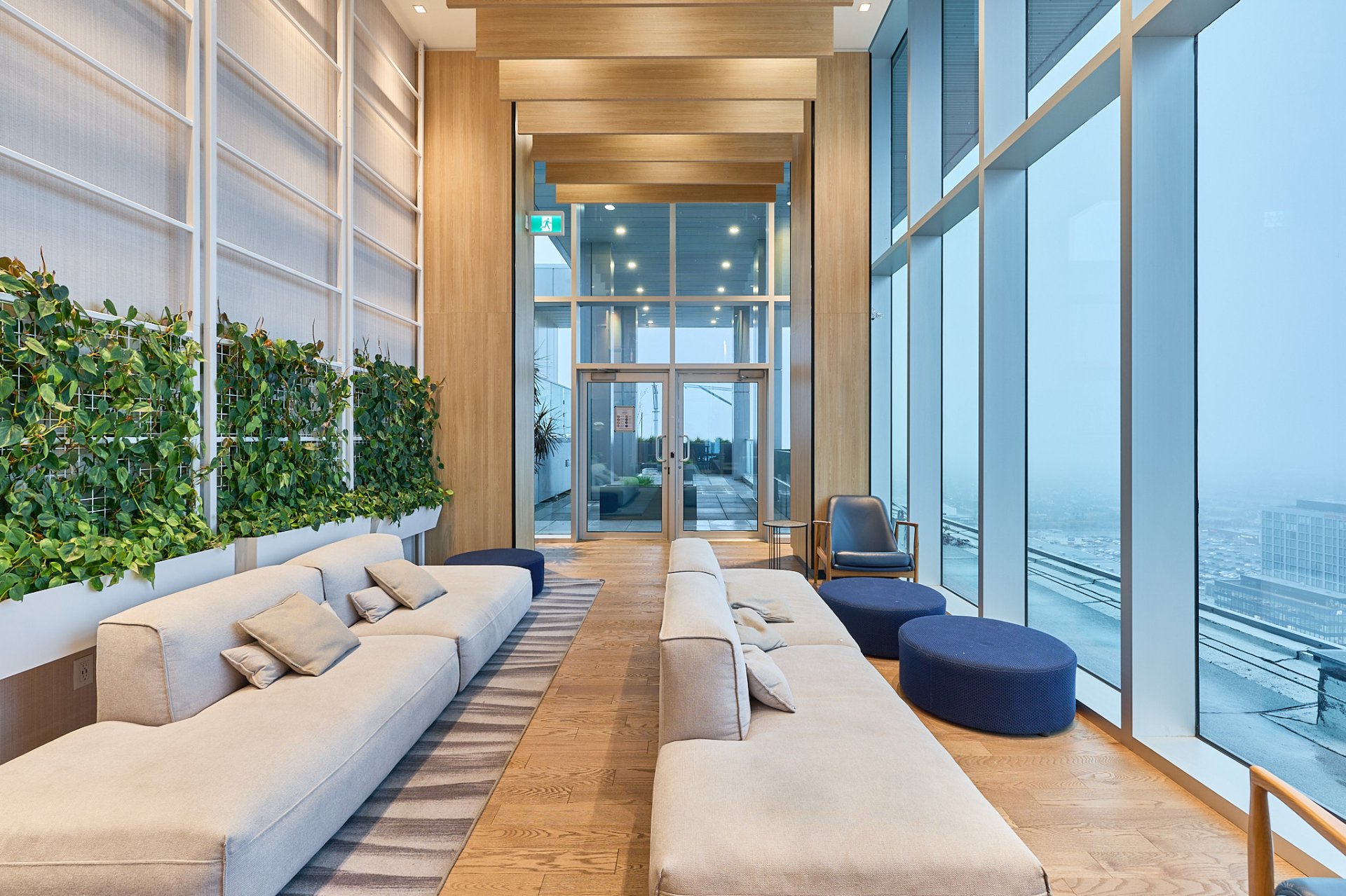 Profitez d'un style de vie incomparable grâce aux espaces communs exceptionnels du Nobel : piscine extérieure, gym, terrasse avec vue panoramique, lounge, aires de détente et espaces de coworking.