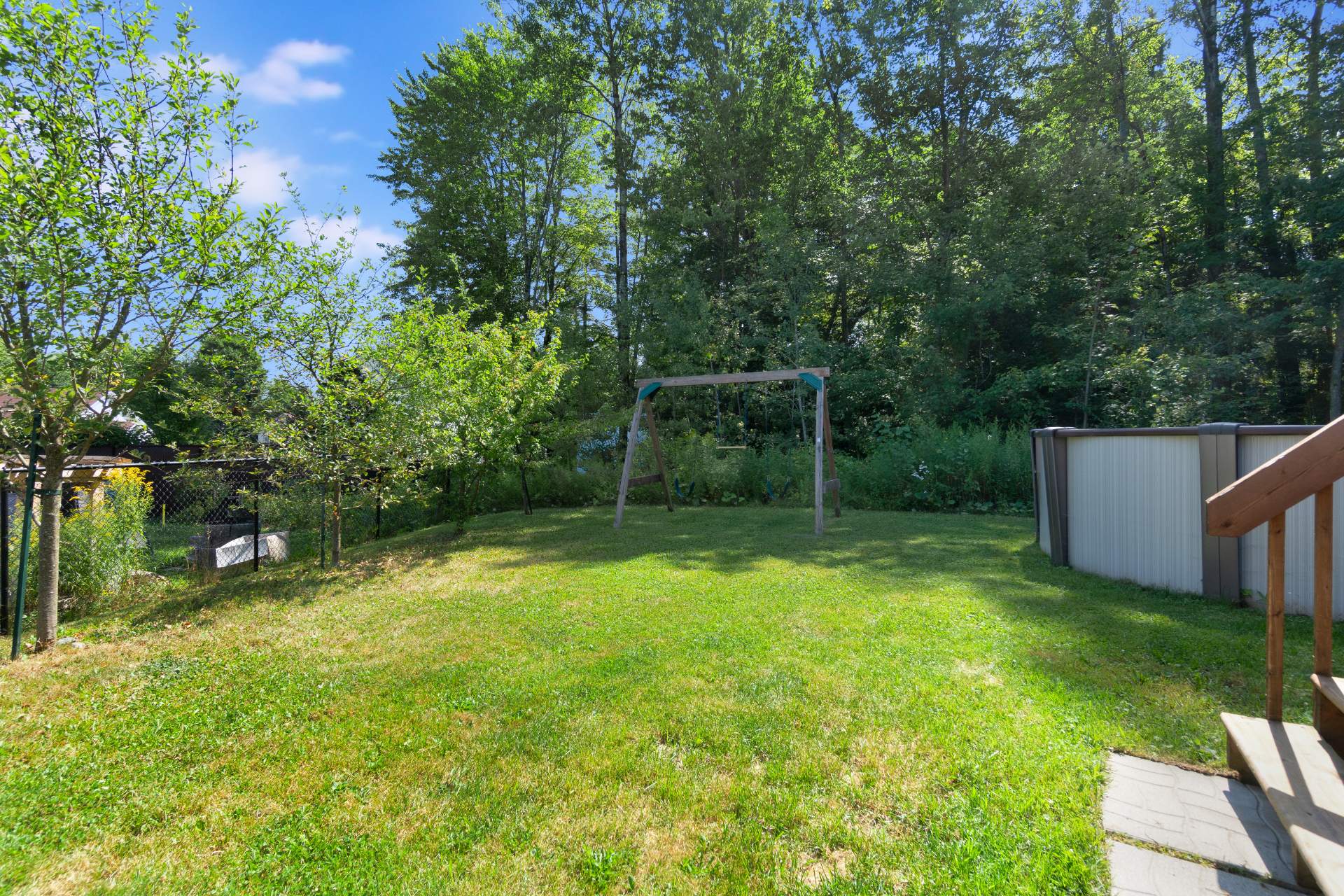 À l'extérieur, une piscine hors-terre chauffée et un patio convivial vous garantissent de belles journées en plein air! Une bande de protection riveraine doit être respectée considérant la présence d'un cours d'eau.