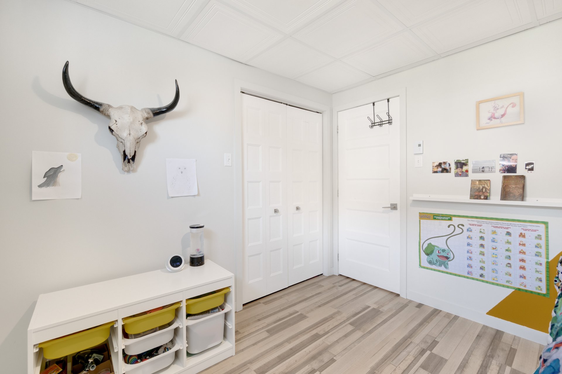 Au sous-sol entièrement aménagé, vous découvrirez une vaste salle familiale idéale pour les soirées cinéma ou les jeux en famille, deux chambres supplémentaires, une salle de bain avec douche, ainsi qu'un grand espace de rangement équipé avec laveuse et sécheuse.