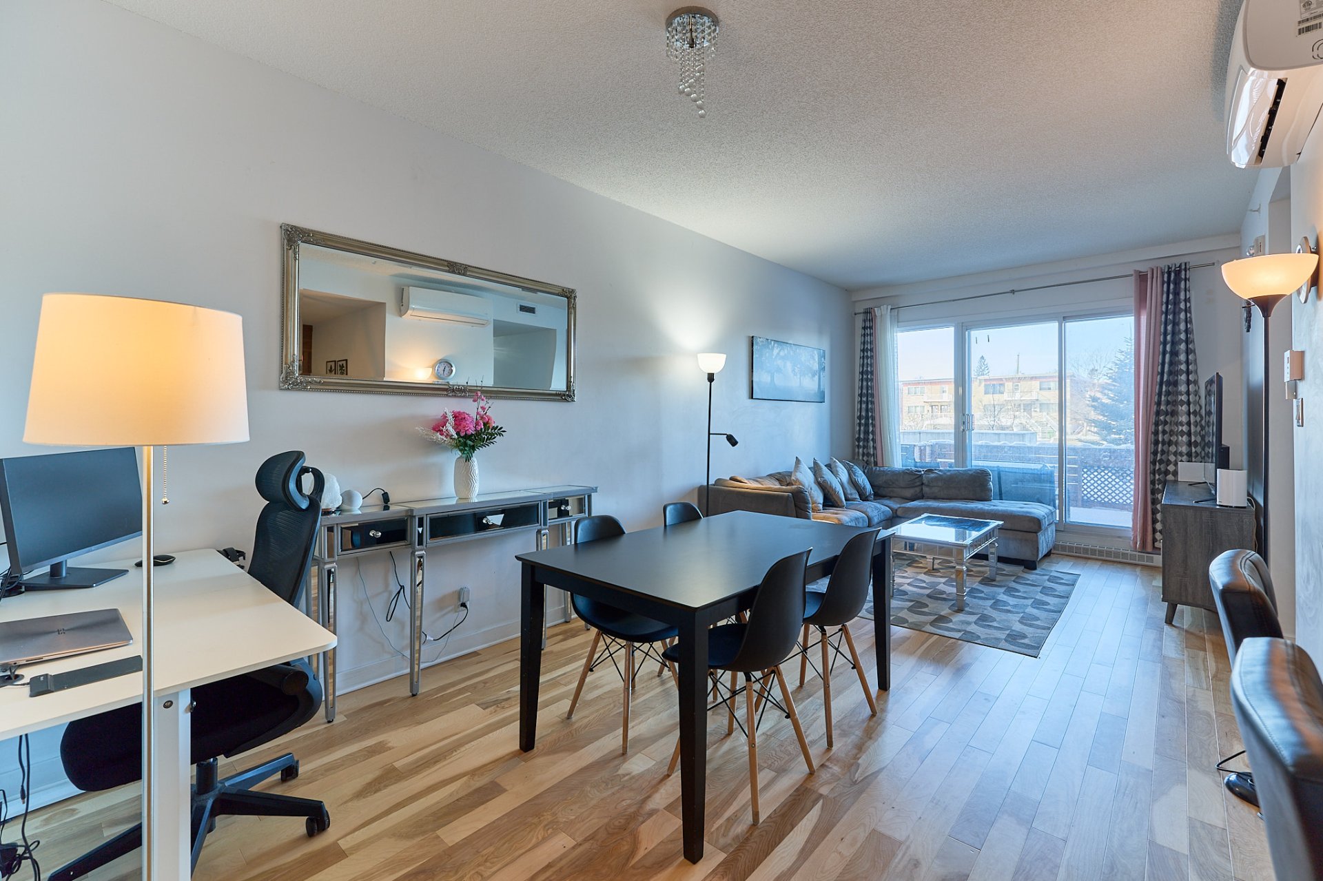 Thermopompe, luminaires, étagère sur-mesure dans les garde robe, rideau et tringles.