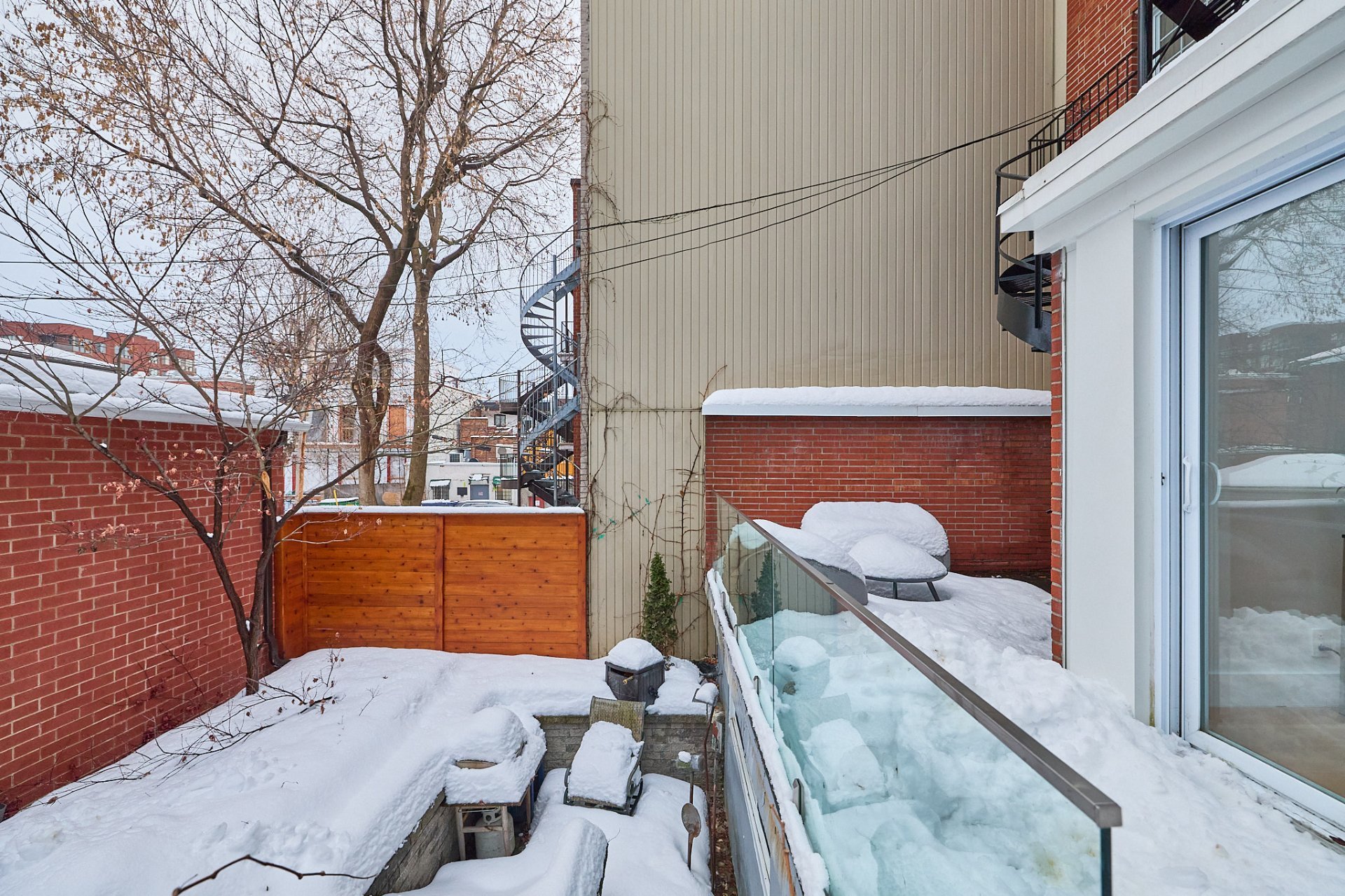 À l'extérieur, une cour intime avec rue privée à l'arrière offre un cadre paisible et recherché, incluant un garage chauffé à l'arrière, ajoutant confort, fonctionnalité et intimité à cette résidence d'exception.